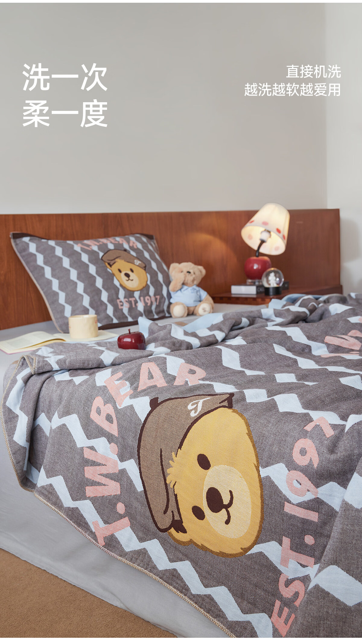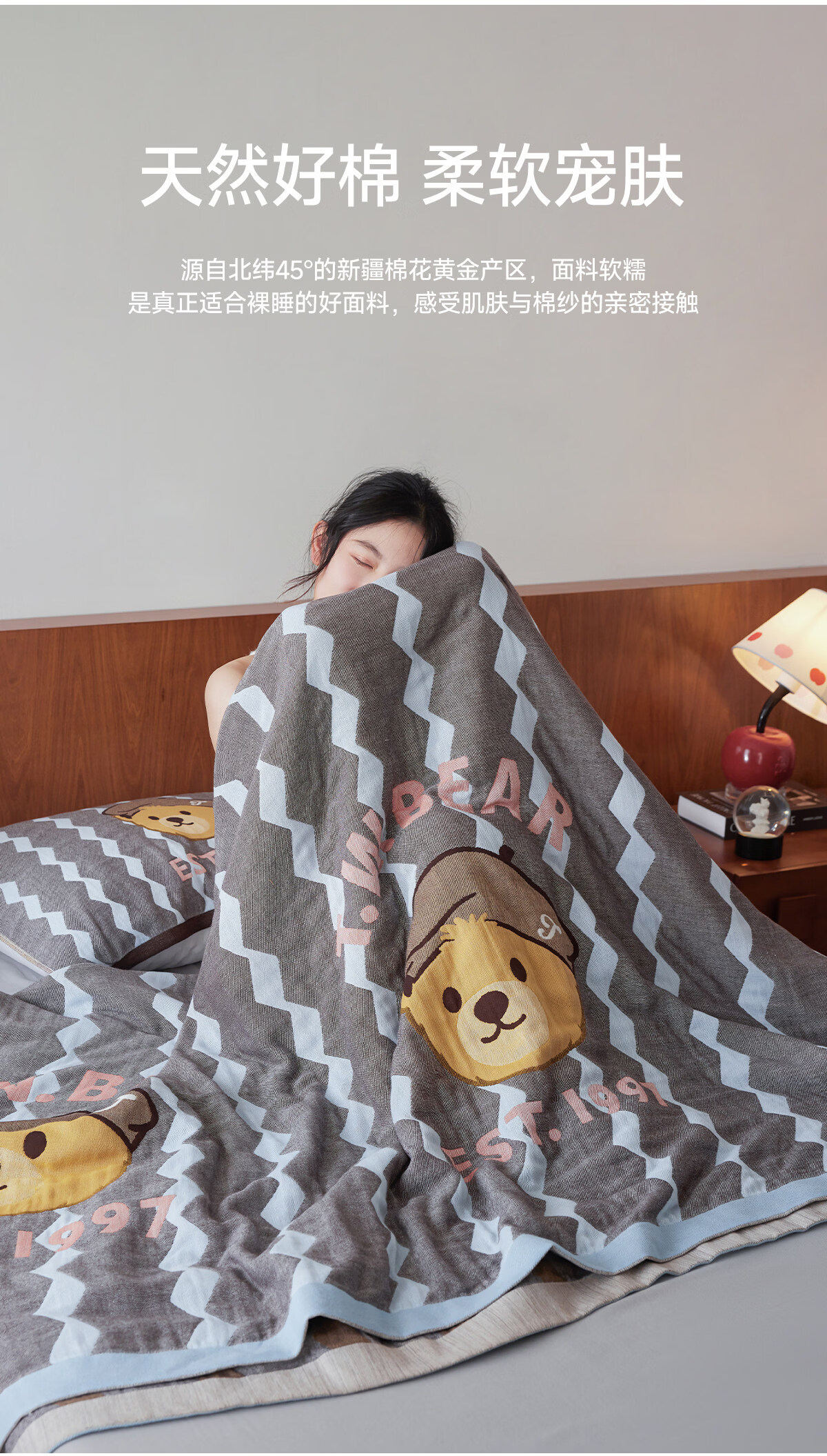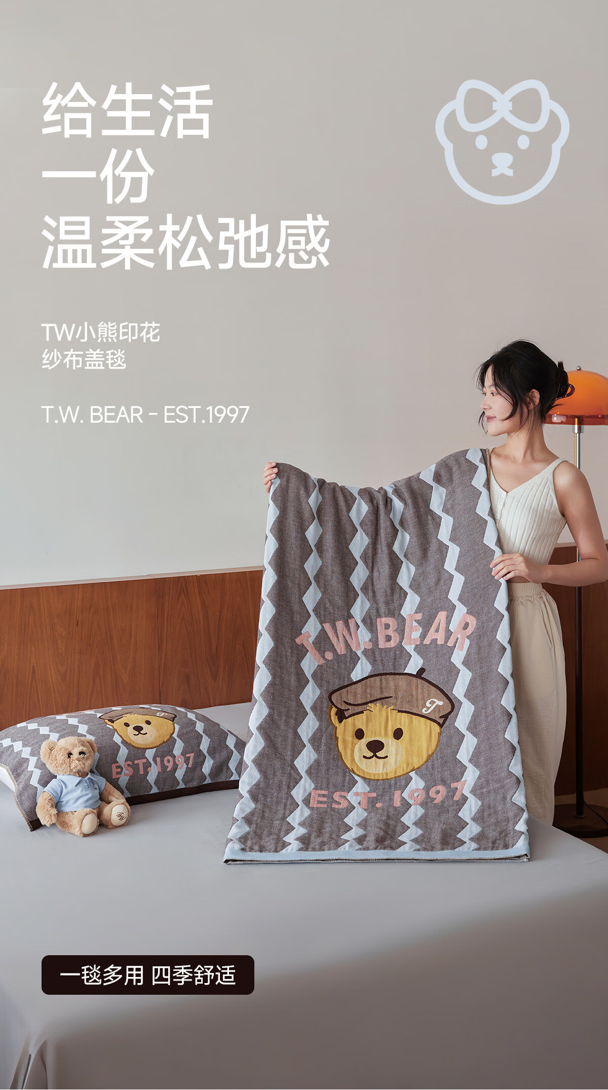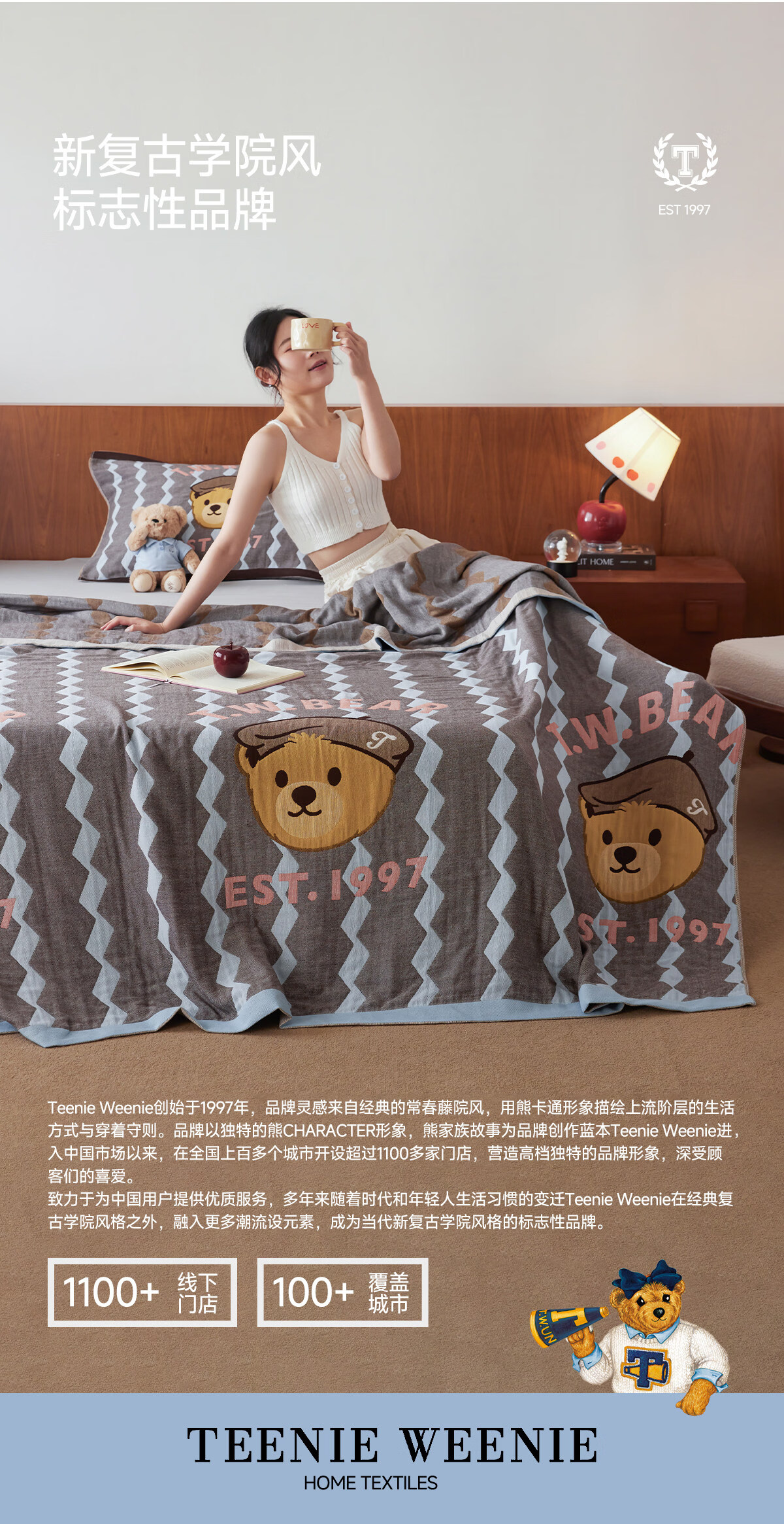 Teenie Weenie小熊新款A类母婴纱布盖毯纯棉毯子卧室毛毯午休毯多功能毯 菱形蓝【全棉纱布盖毯+A类+小熊图案】 200cm*150cm