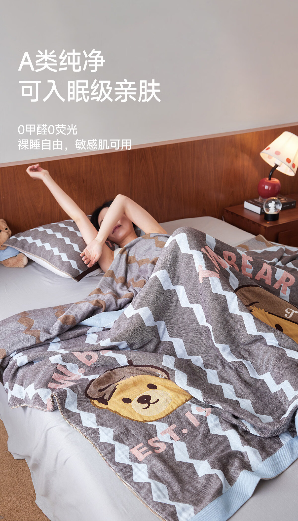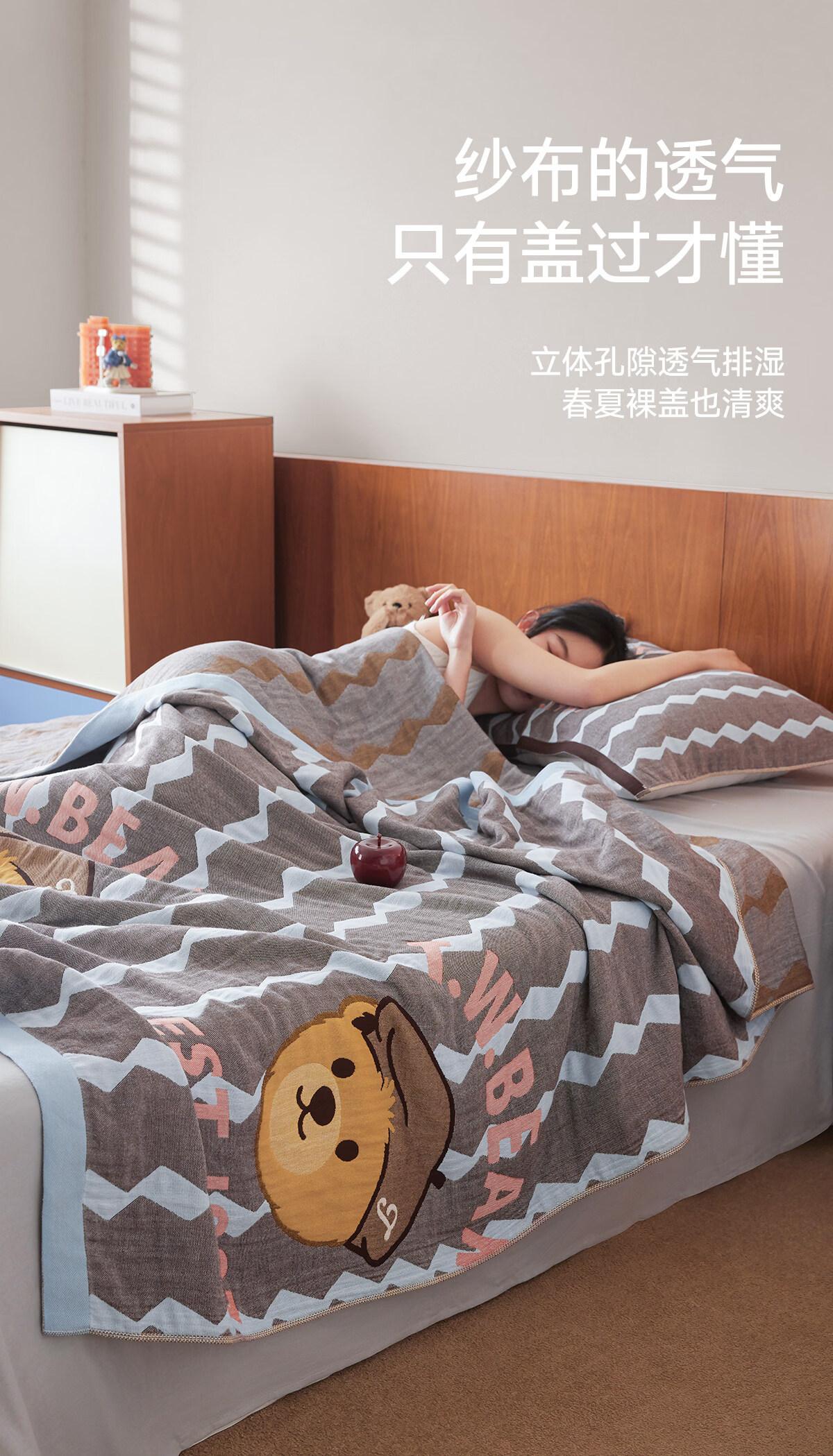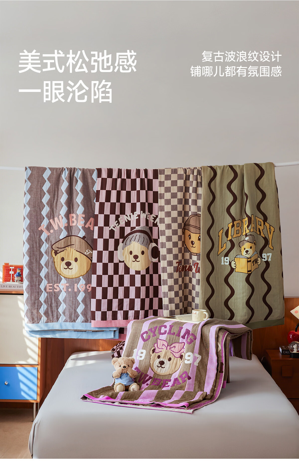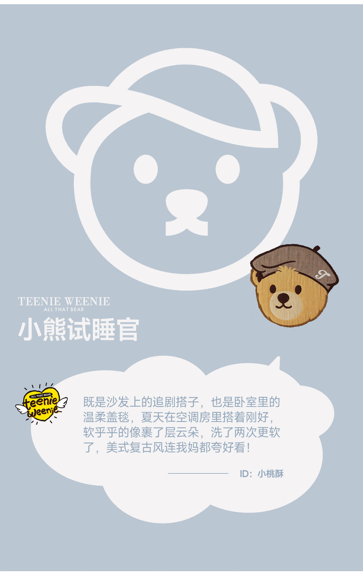 Teenie Weenie小熊新款A类母婴纱布盖毯纯棉毯子卧室毛毯午休毯多功能毯 菱形蓝【全棉纱布盖毯+A类+小熊图案】 200cm*150cm