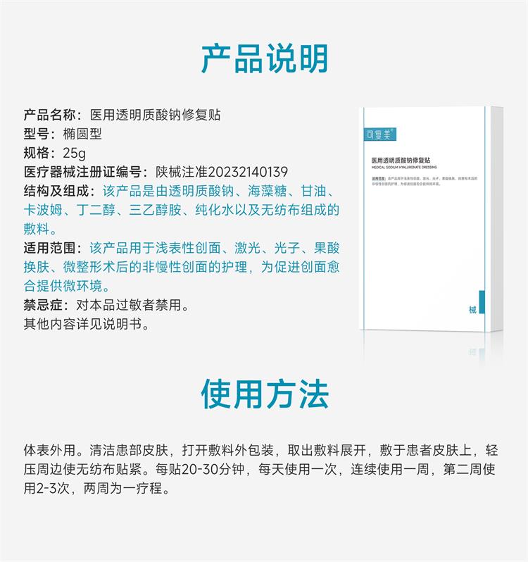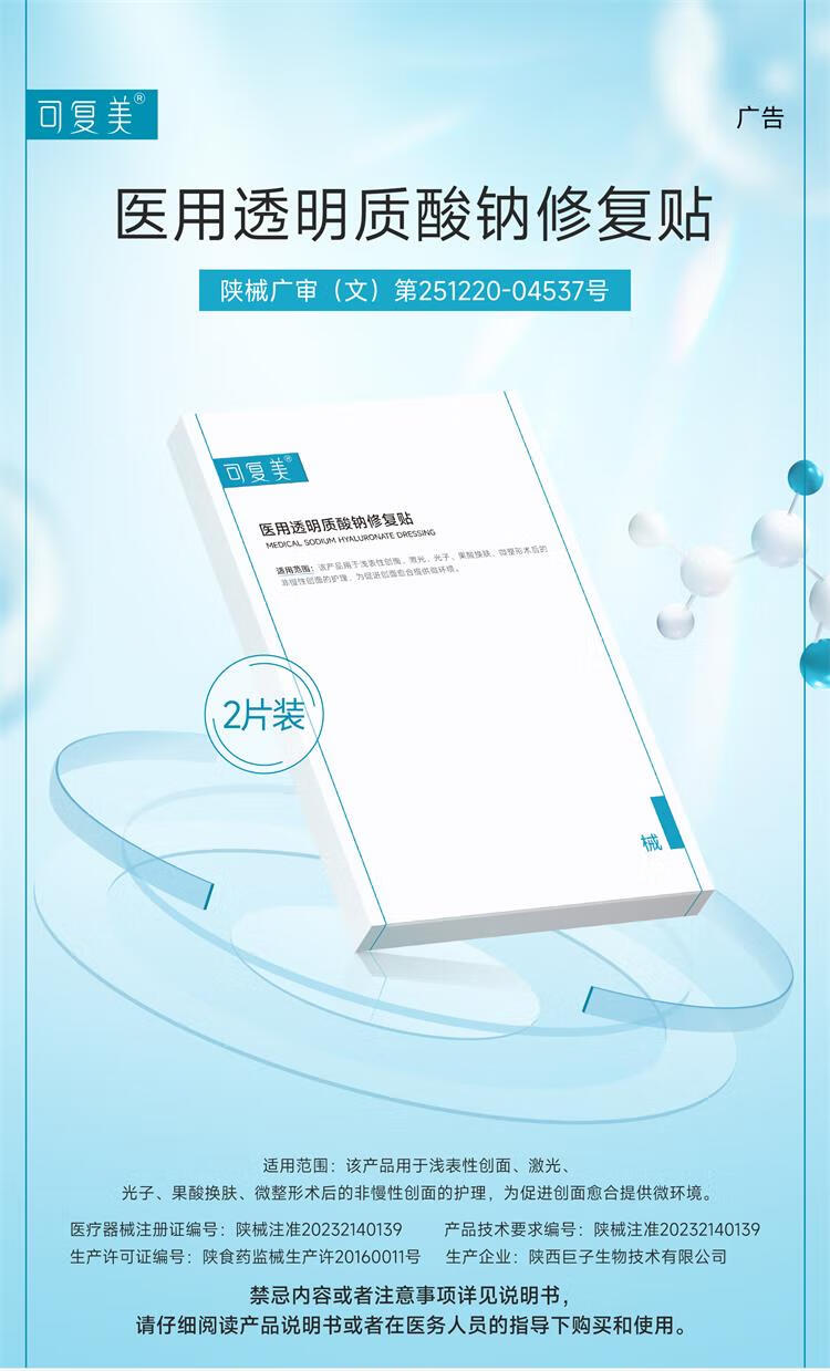 可复美【体验装】医用透明质酸钠修复贴25g*2片/袋 创面 激光 果酸换肤