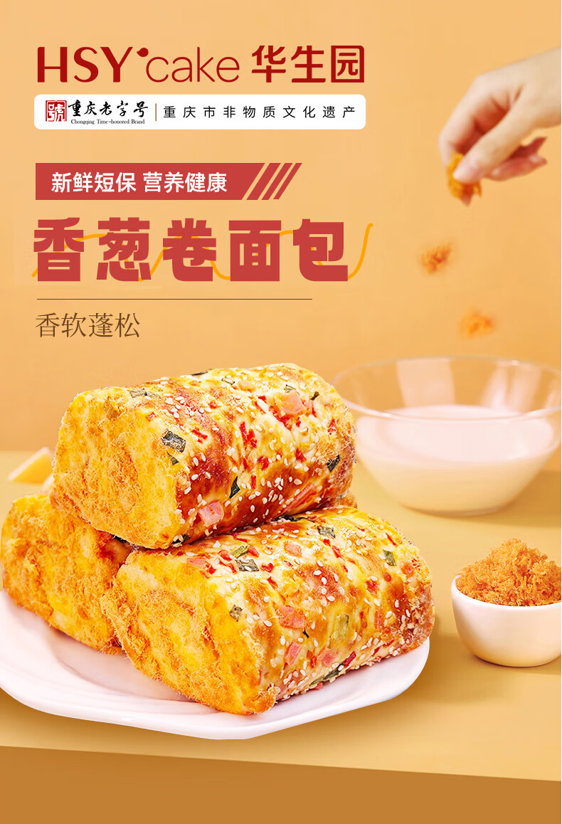 华生园肉松香葱卷面包新鲜现做沙拉面包早餐整箱葱香咸香速食代餐零食 老式香葱卷100g*6袋