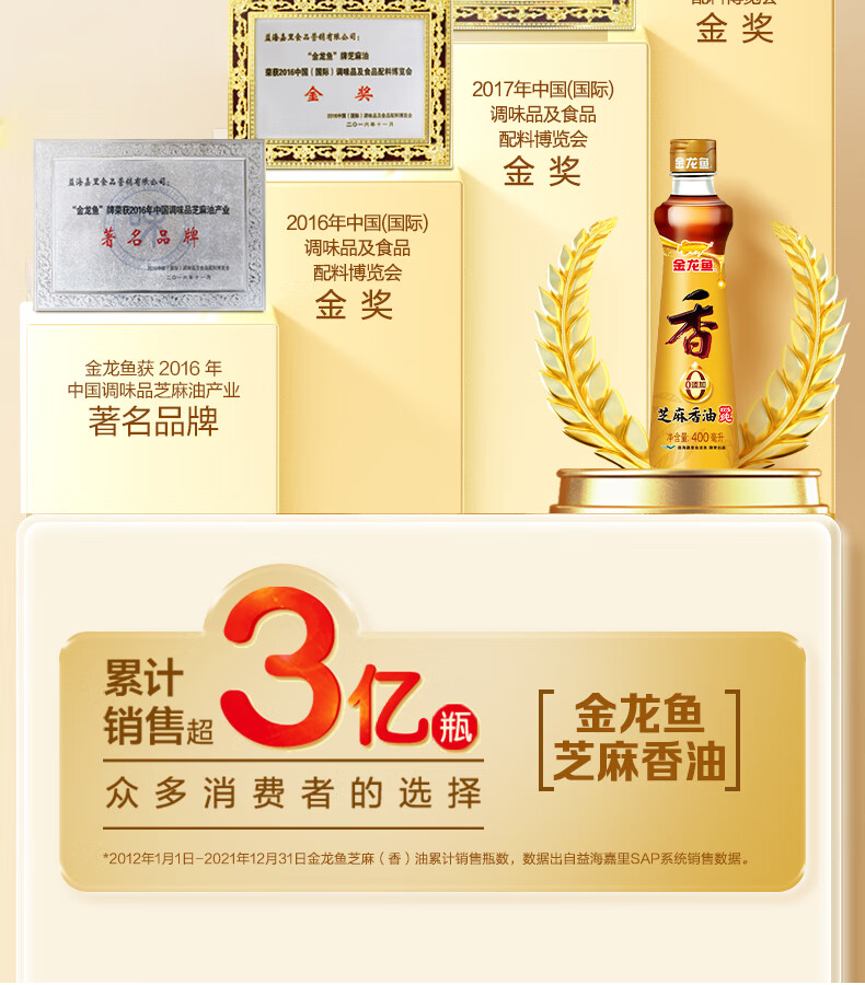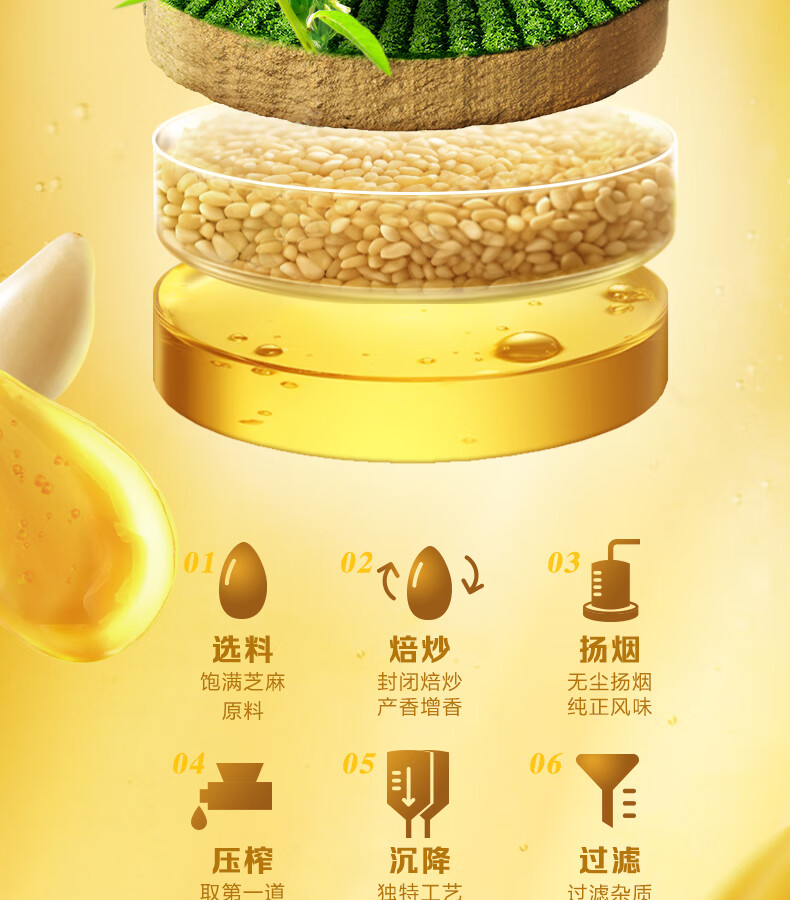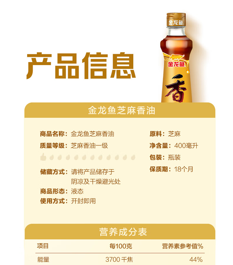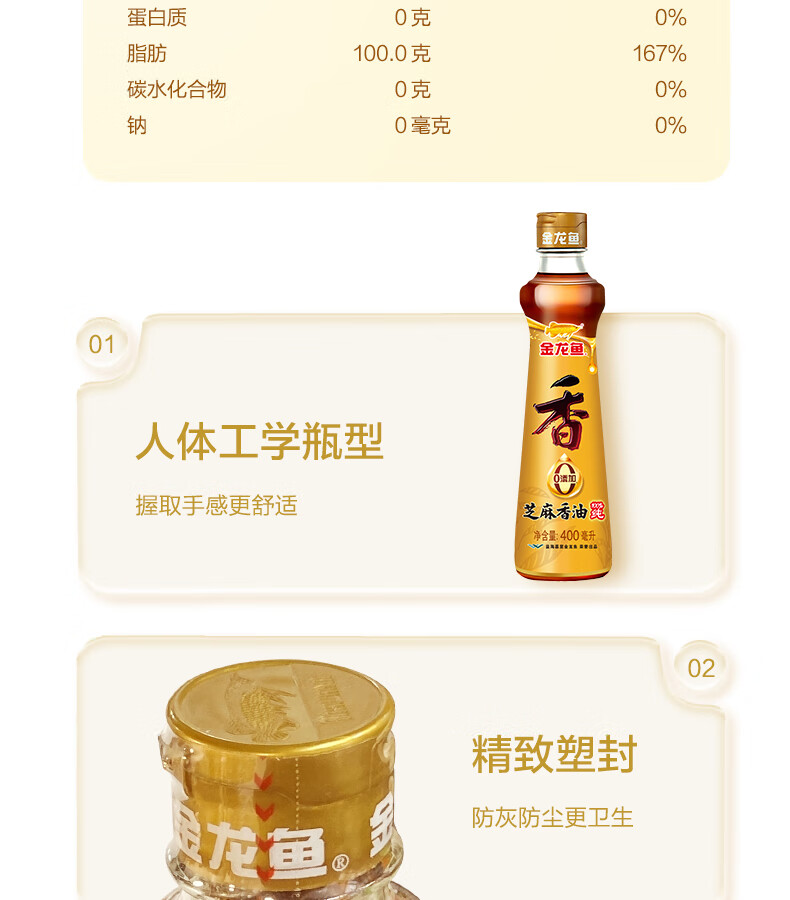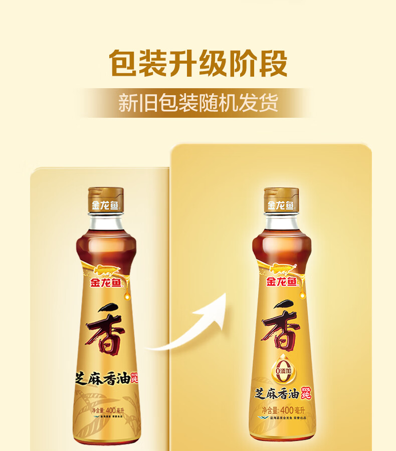 金龙鱼100%纯芝麻香油 零添加 凉拌调味油 220ml+100ml*2瓶