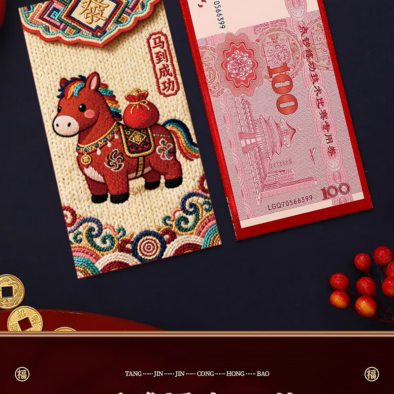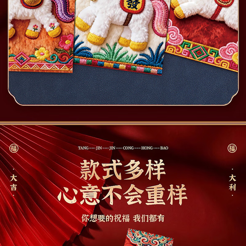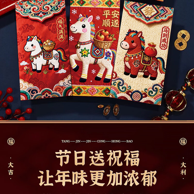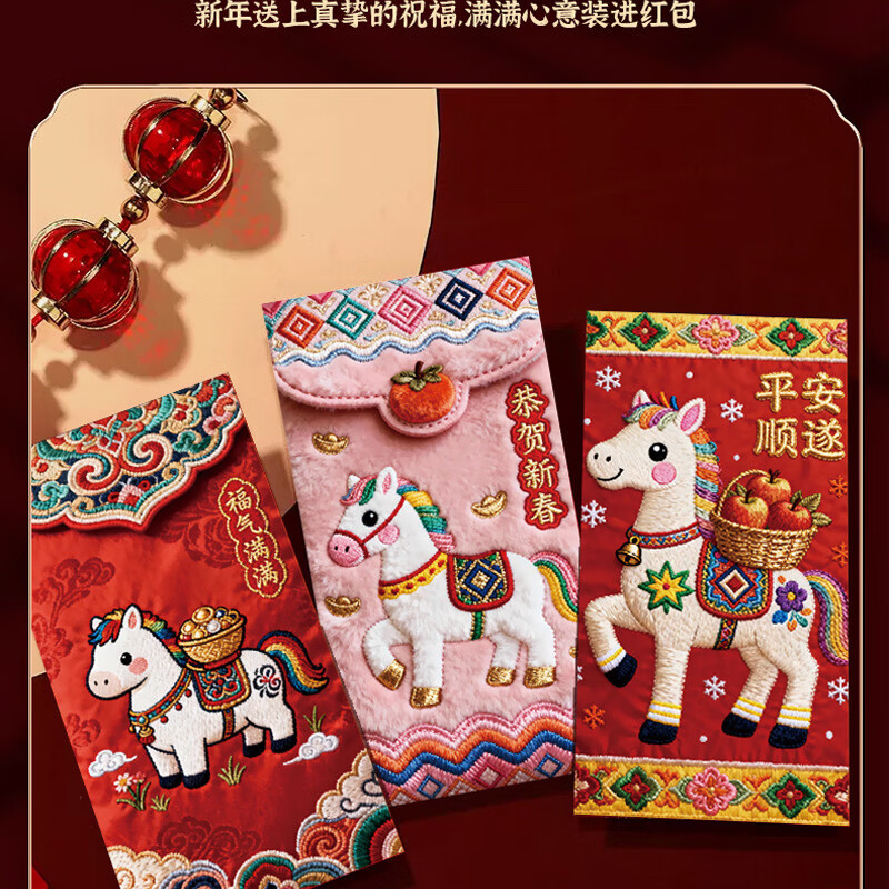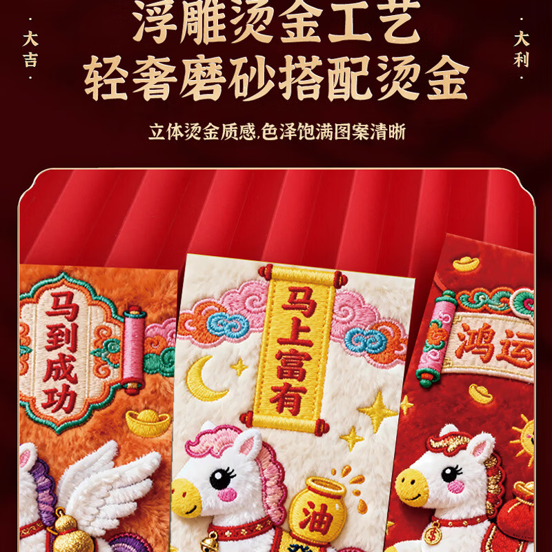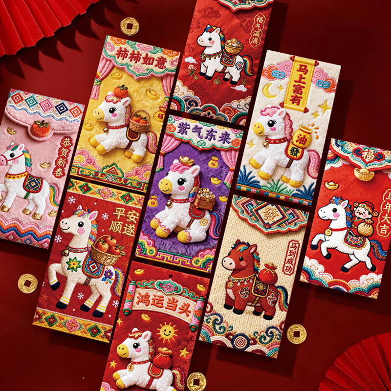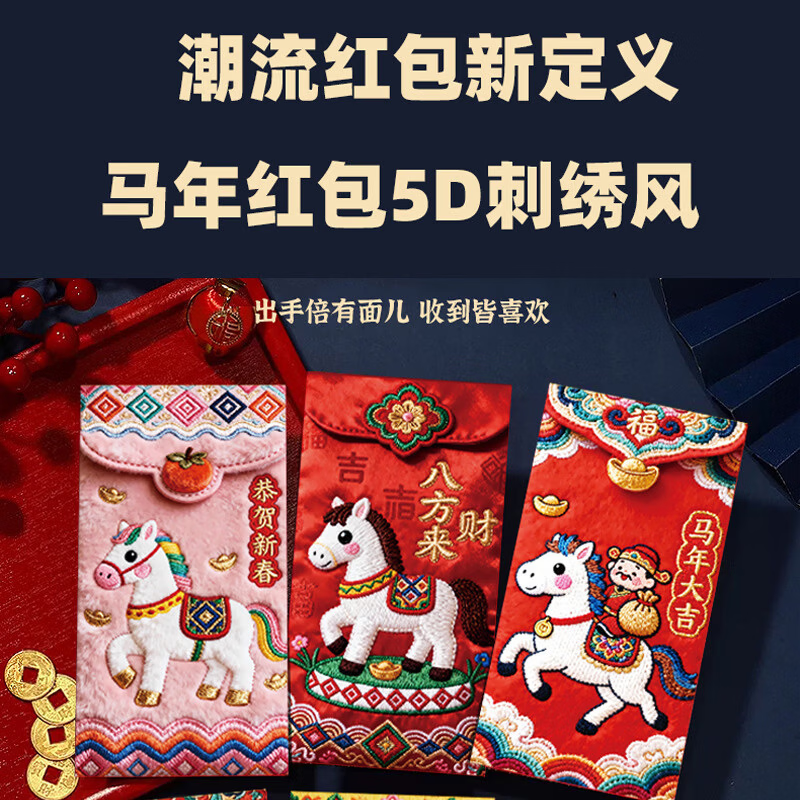 2026新款马年加厚立体仿刺绣风卡通用创意红包过年春节可爱压岁钱 【限时活动】6个