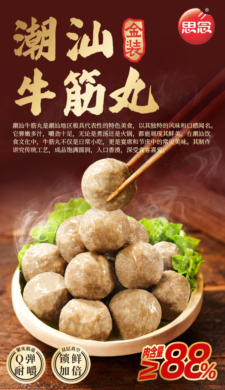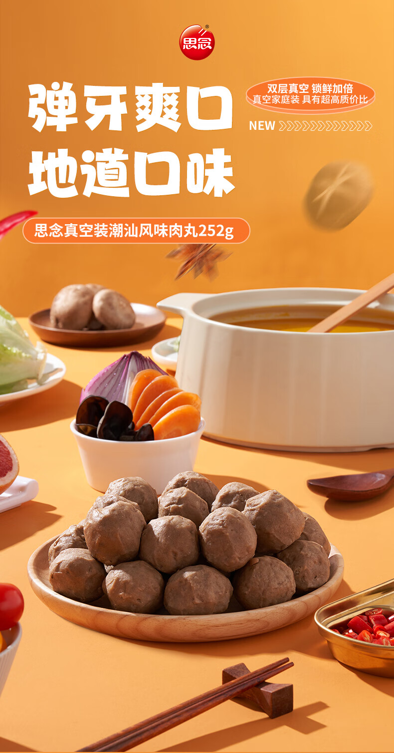 思念火锅食材丸子 撒尿肉丸牛筋丸牛肉丸鱼丸蛋饺蟹柳烧烤丸子关东煮 潮汕牛肉丸252g