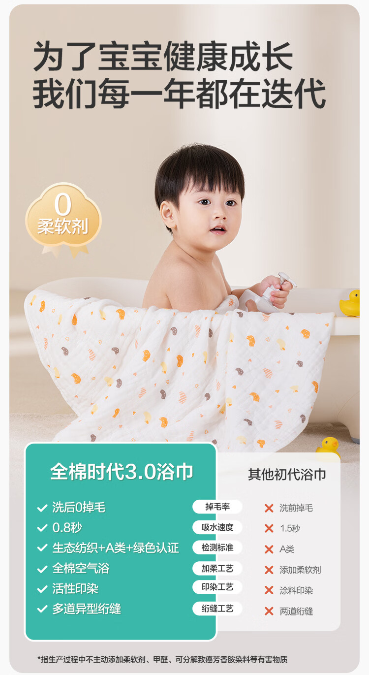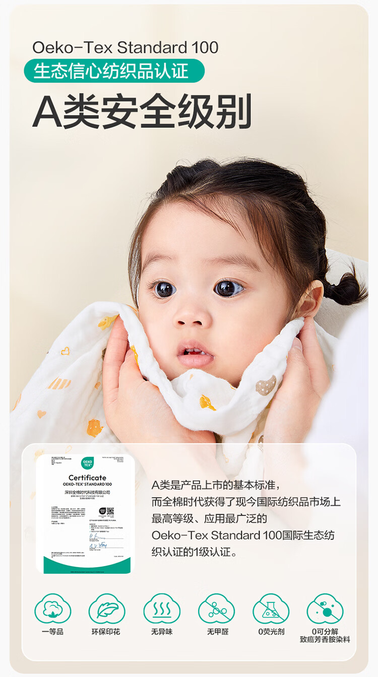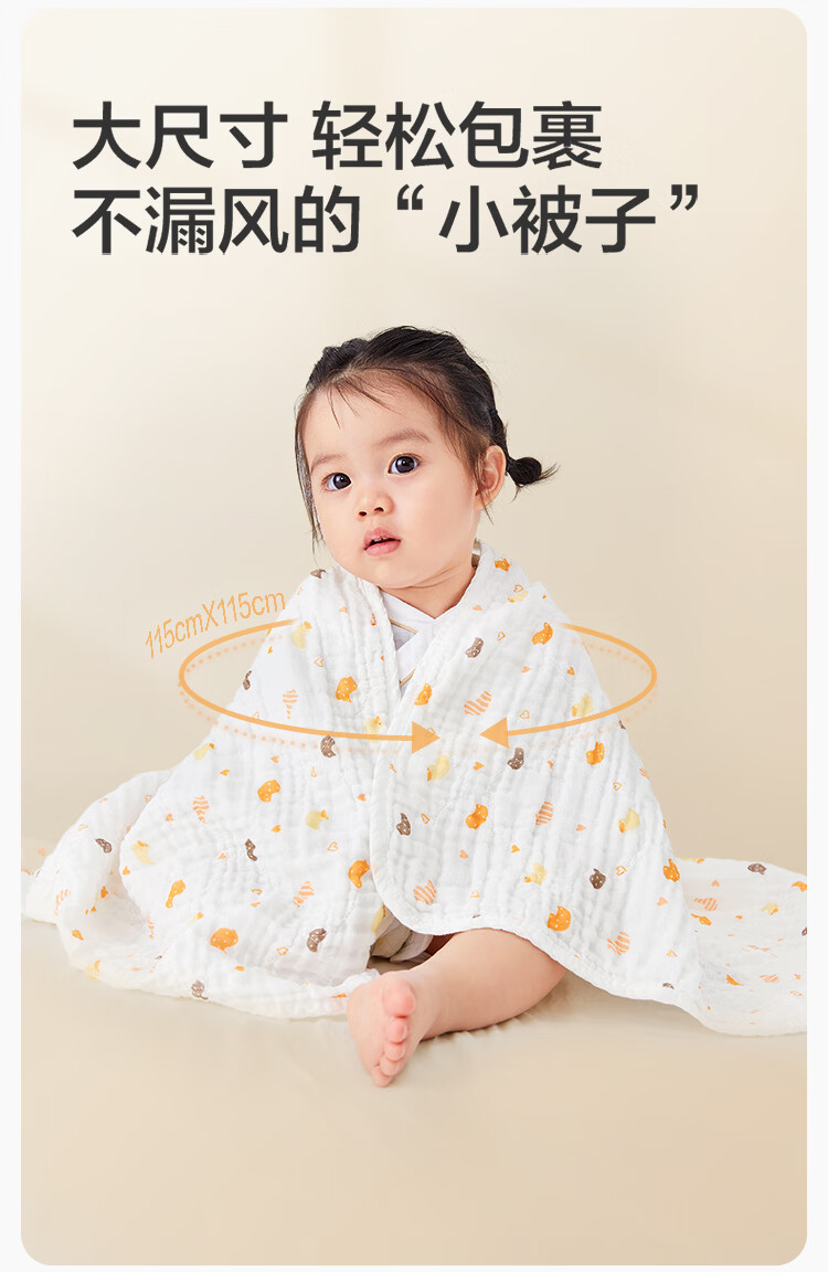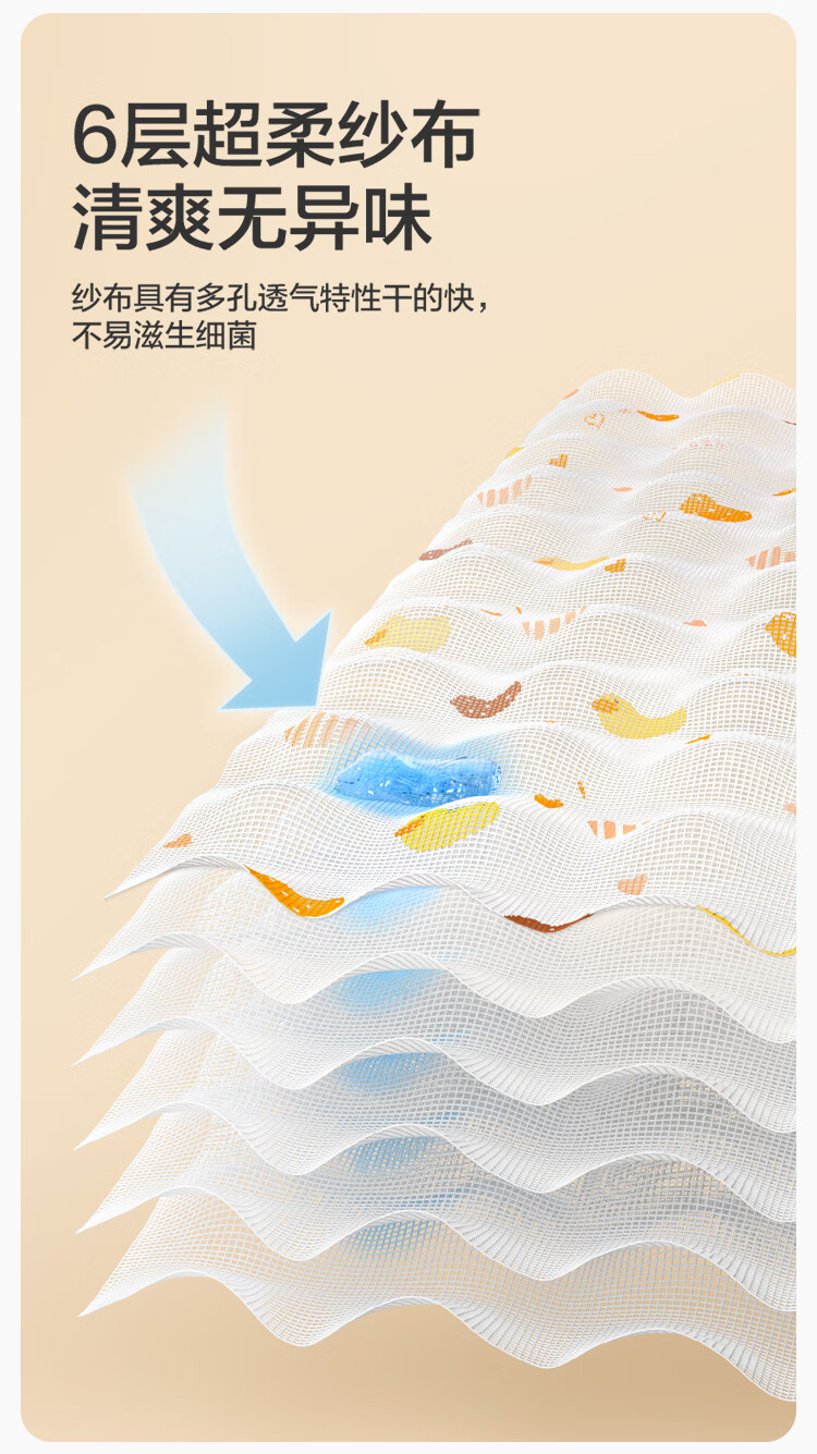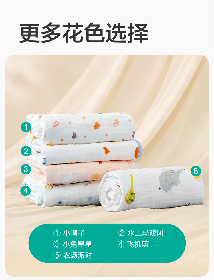 全棉时代 婴儿浴巾 新生儿童6层水洗纱布浴巾宝宝纯棉 狮子飞机蓝95*95cm