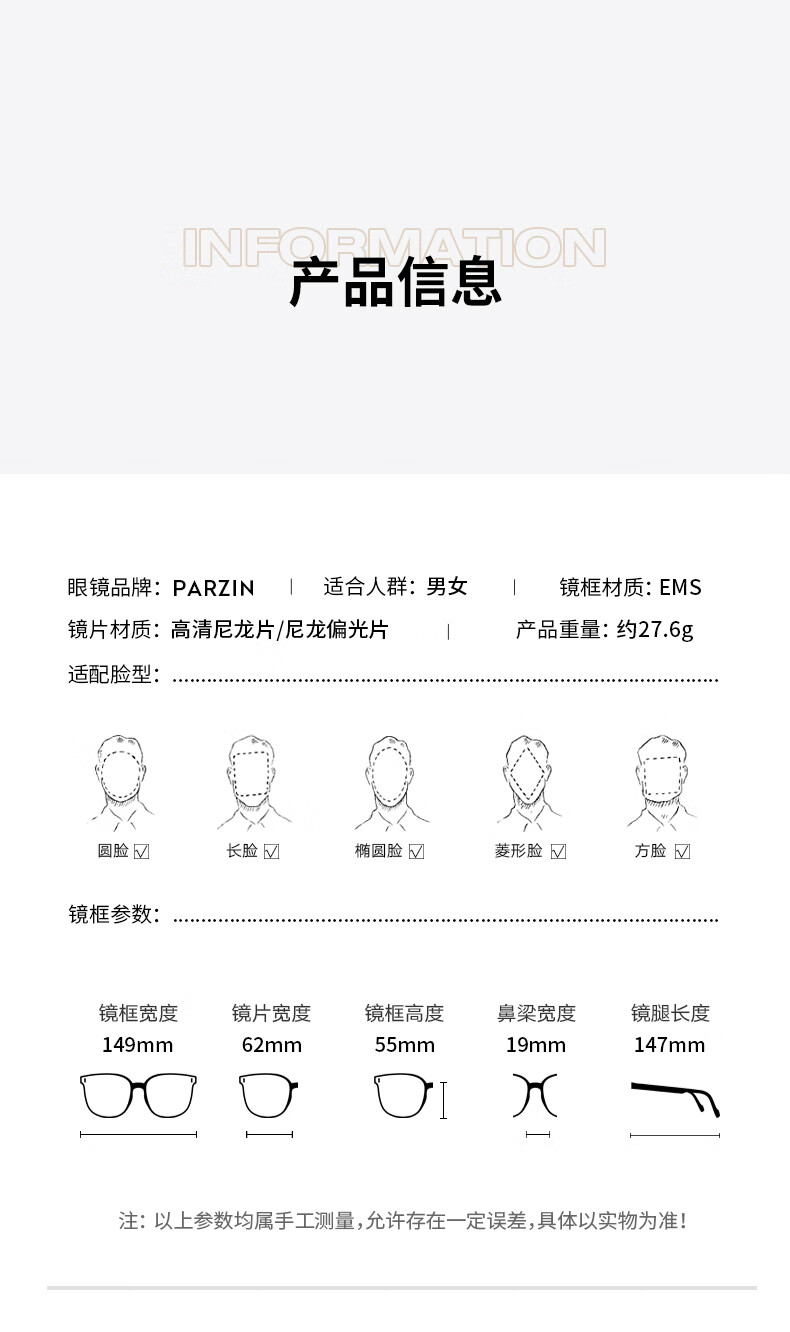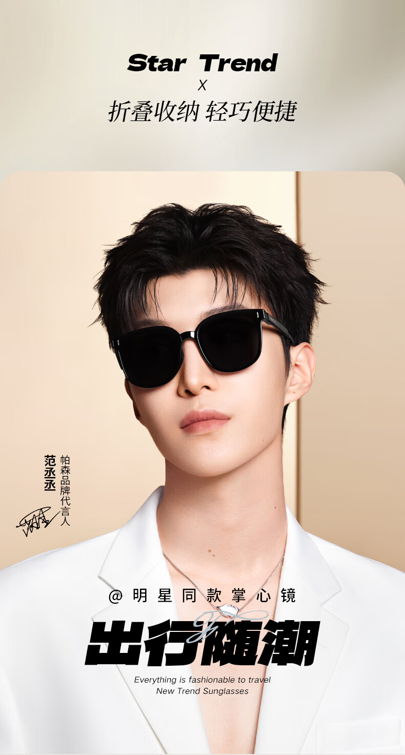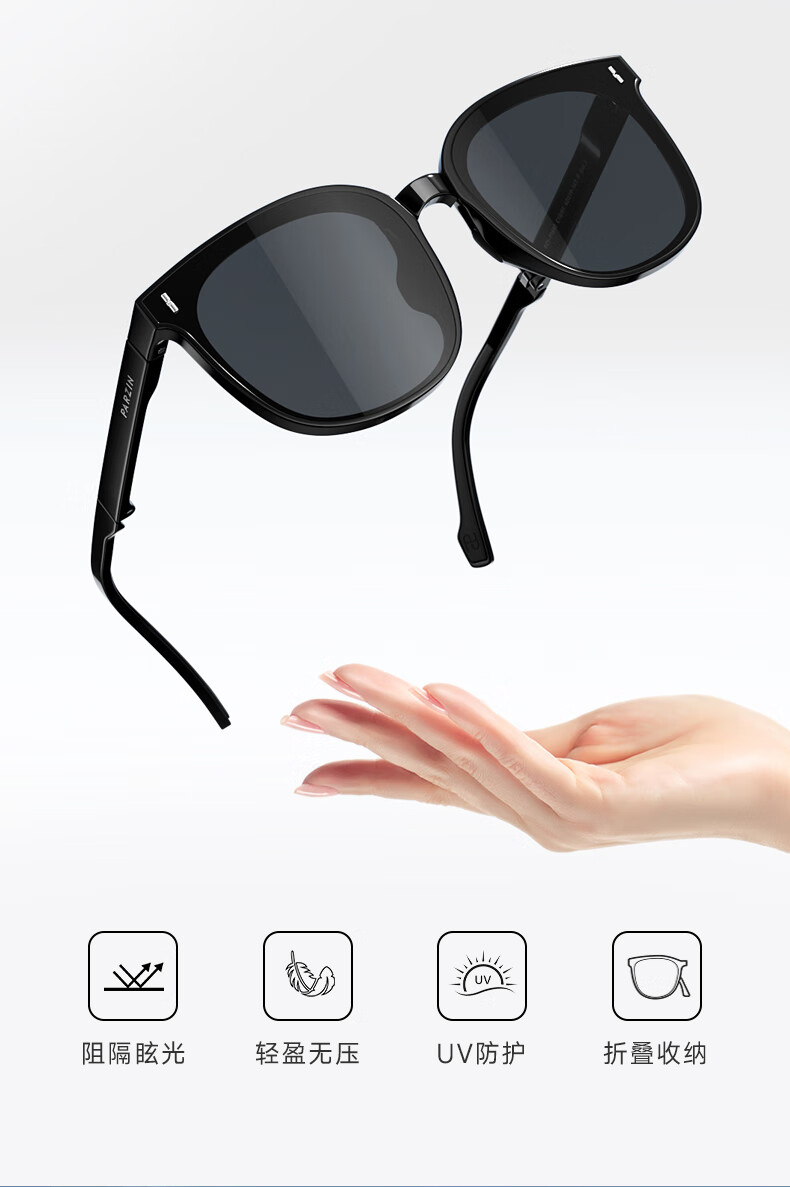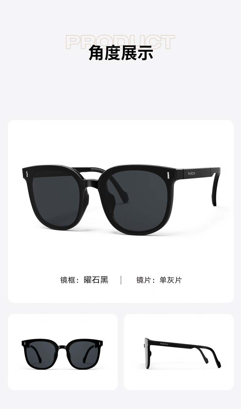 帕森(PARZIN)可折叠偏光太阳镜 范丞丞同款眼镜男女通用便携驾驶墨镜男PZ91690