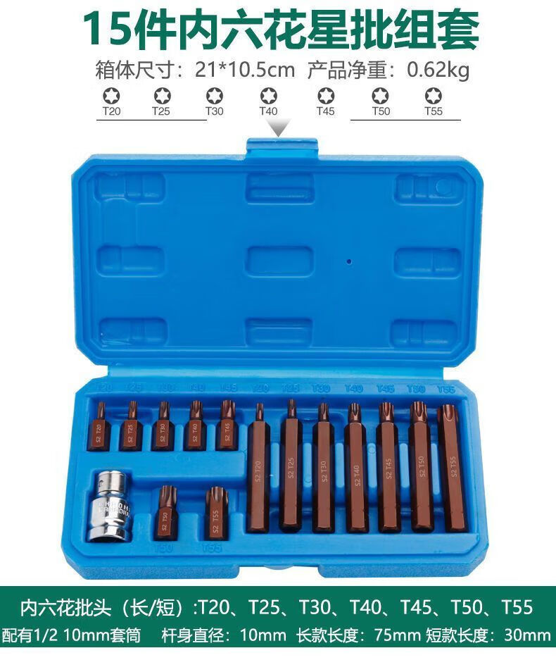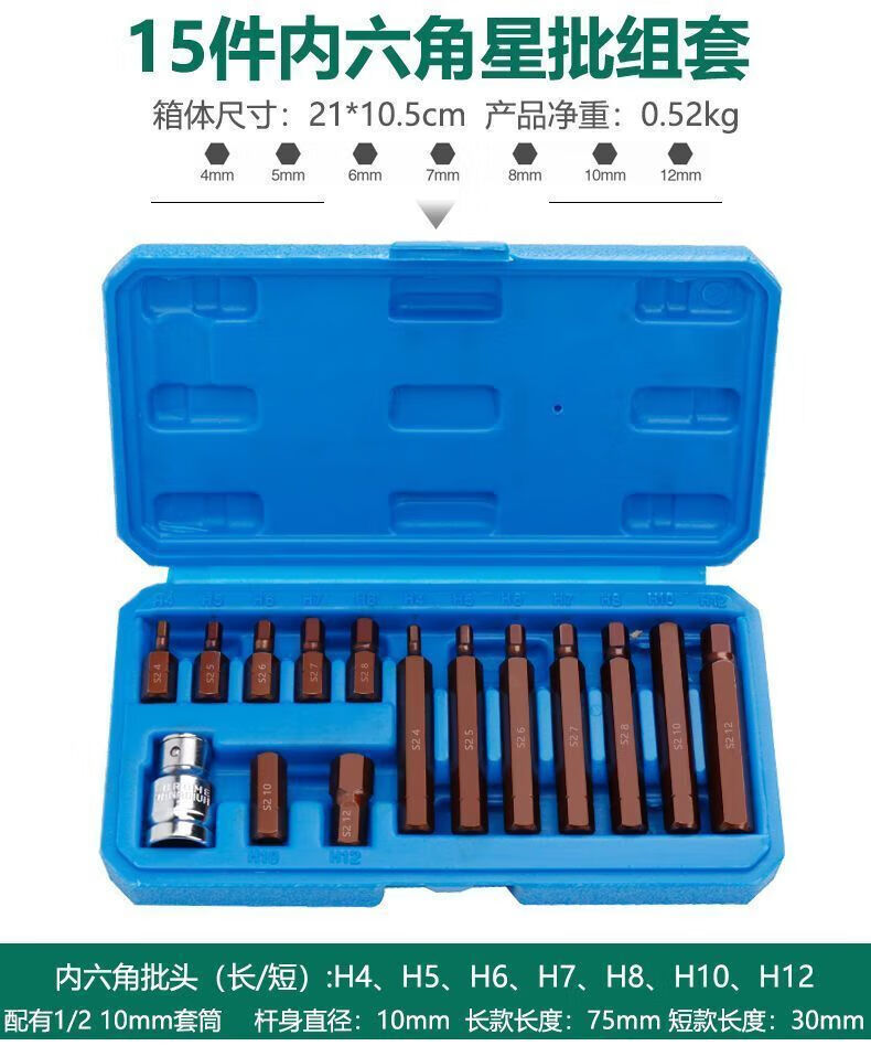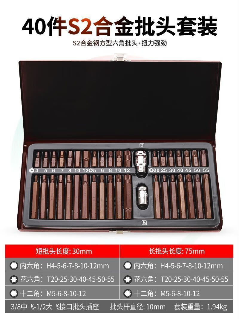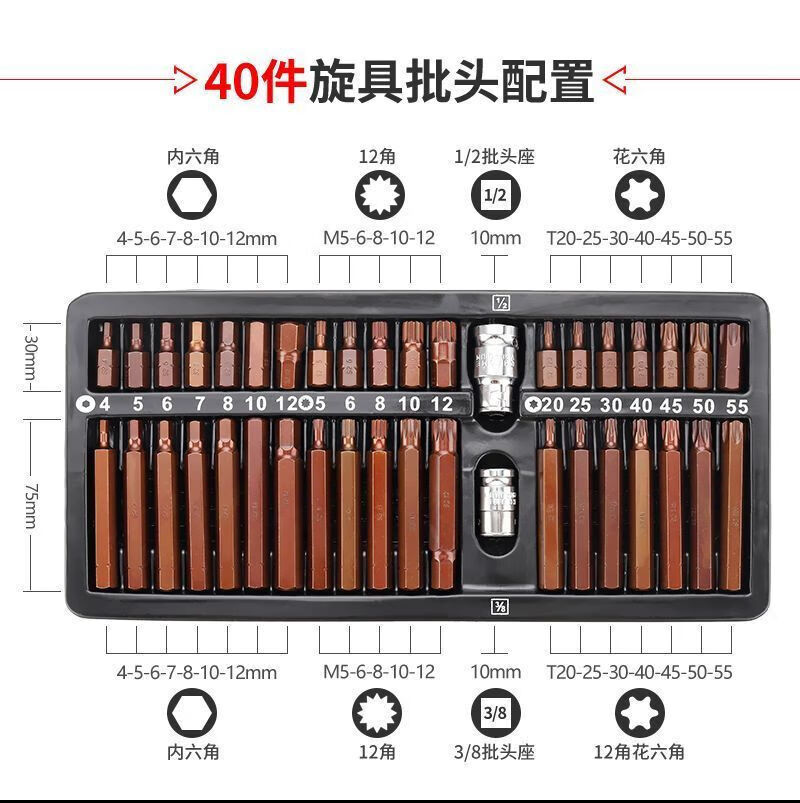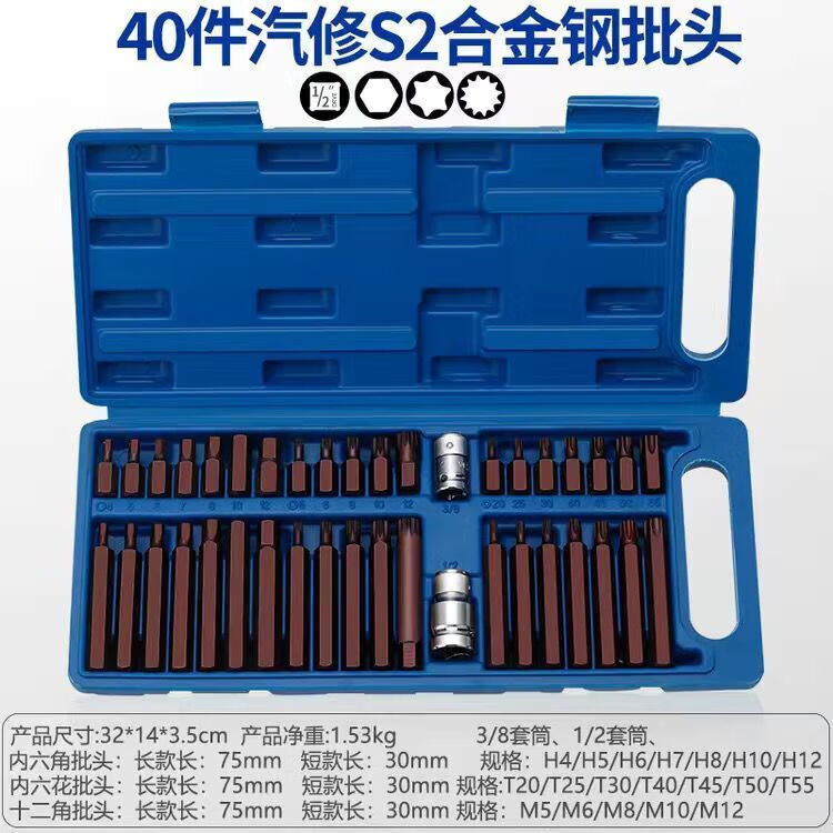 研然 梅花批头内六角套筒扳手批头套装工具组合 40件旋具批头(S2)+棘轮