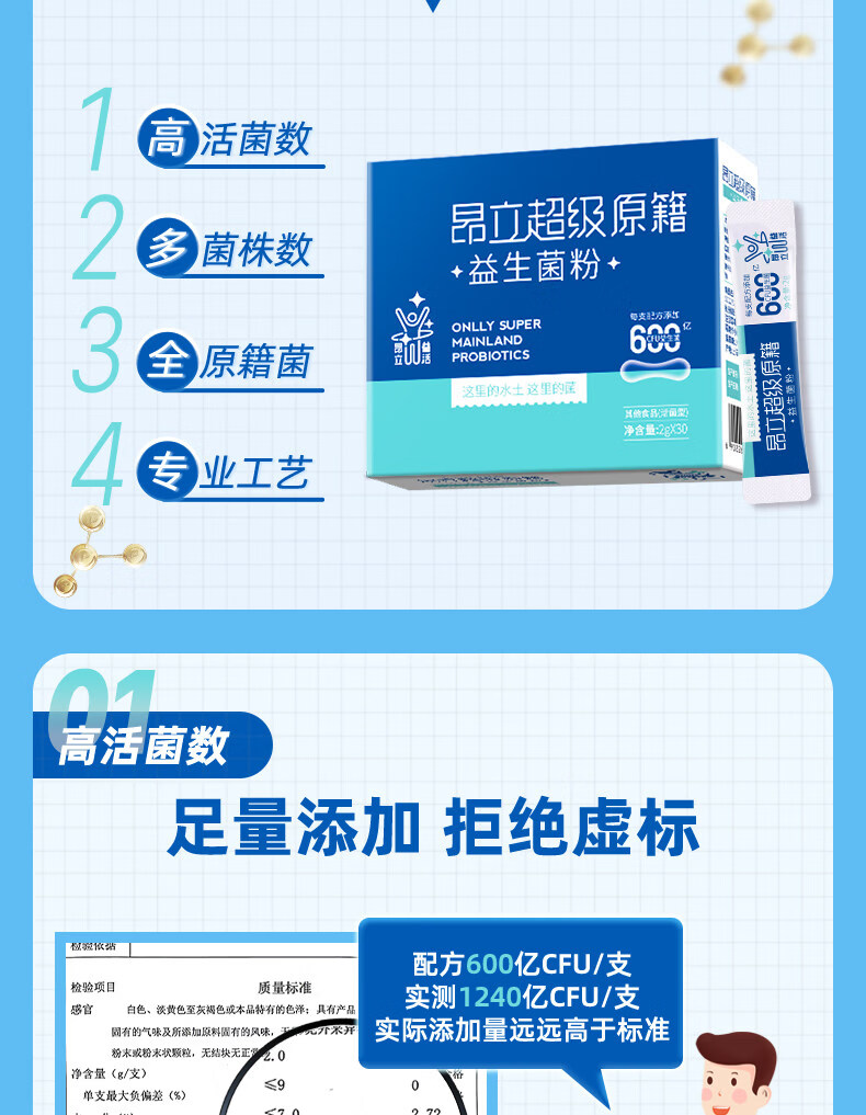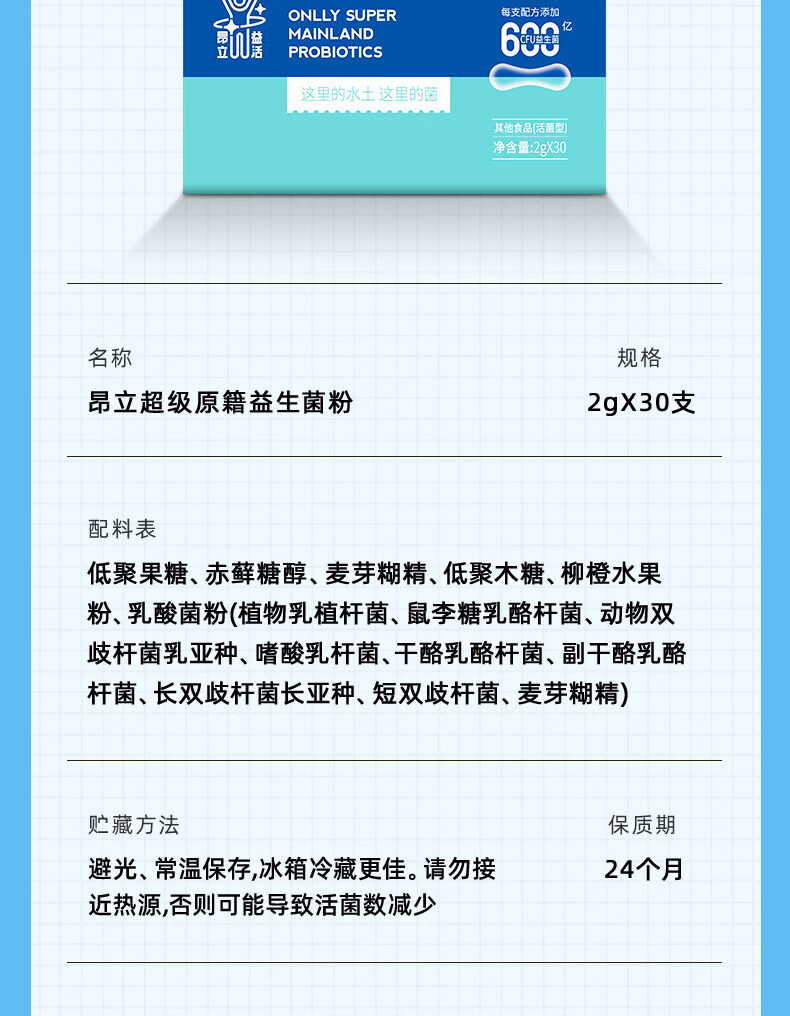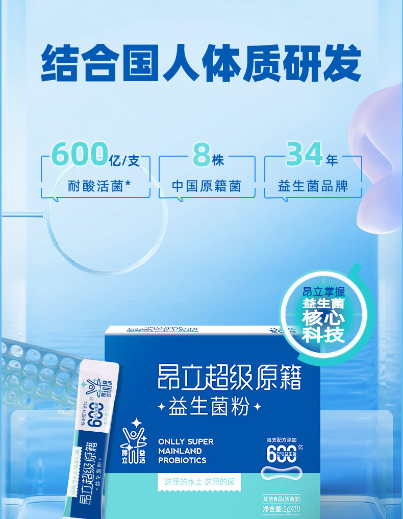 昂立原籍600亿高活性益生菌粉30支原籍8株国人原籍菌呵护肠道