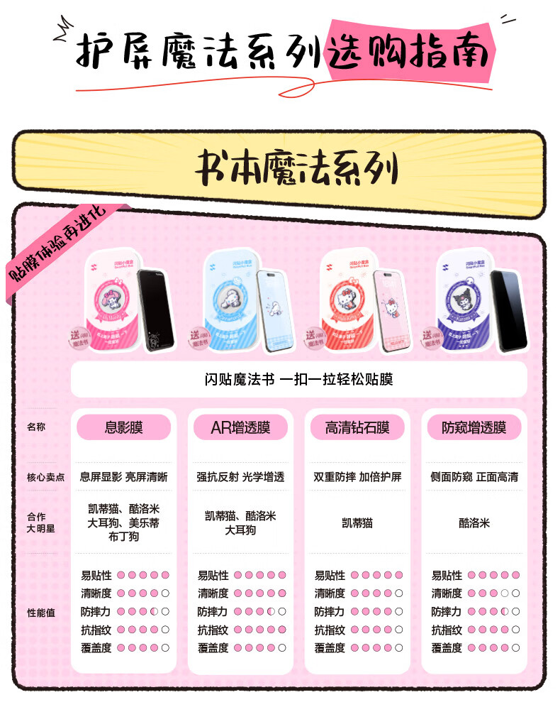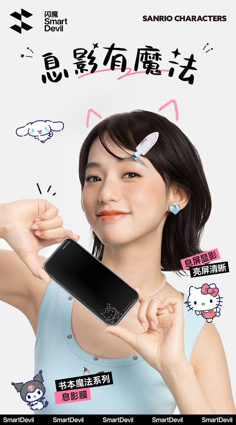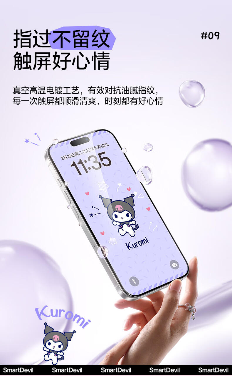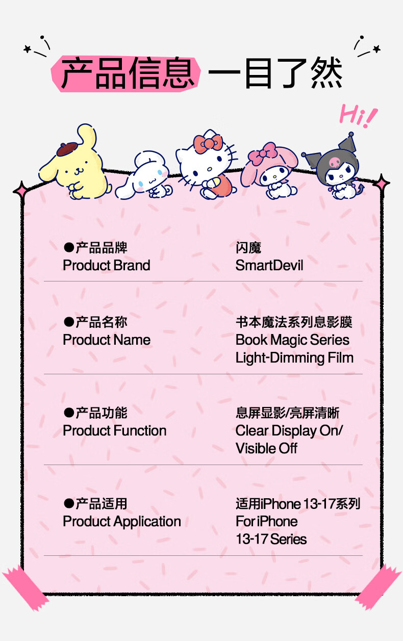 闪魔【三丽鸥正版授权】闪魔适用于苹果17钢化膜iPhone17promax手机膜16/15pro高清14/13新款防摔保护 单片装-息影膜【Kuromi】酷洛米/书本魔法系列 iPhone 15 Pro Max