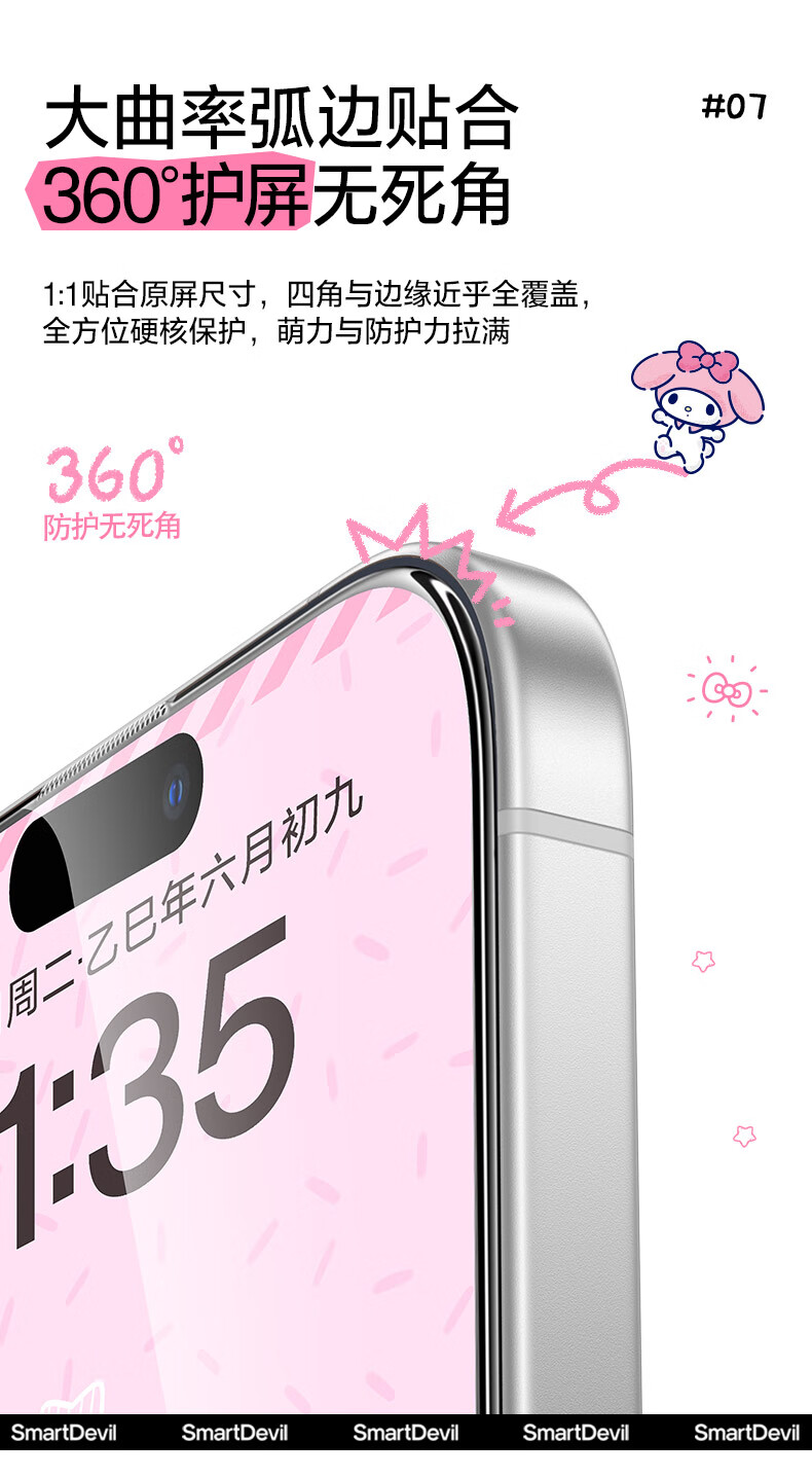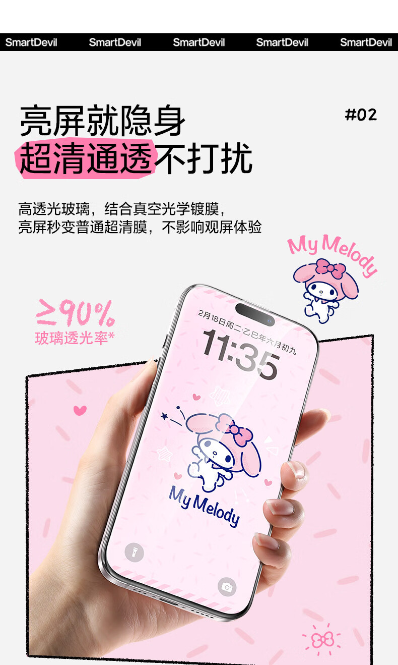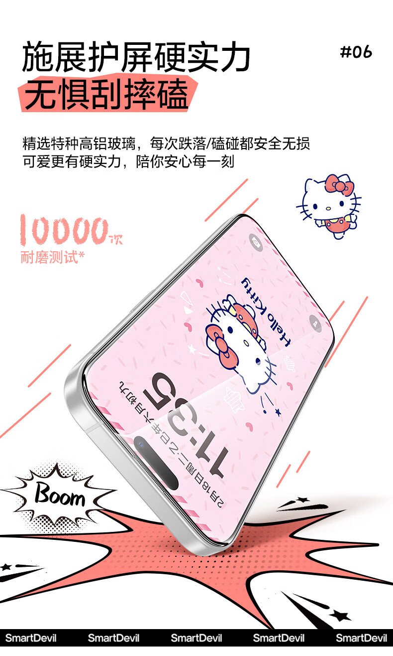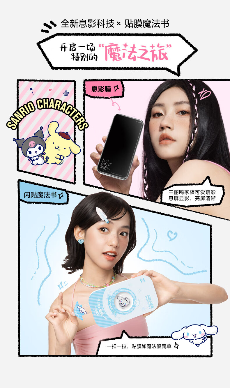 闪魔【三丽鸥正版授权】闪魔适用于苹果17钢化膜iPhone17promax手机膜16/15pro高清14/13新款防摔保护 单片装-息影膜【Kuromi】酷洛米/书本魔法系列 iPhone 15 Pro Max