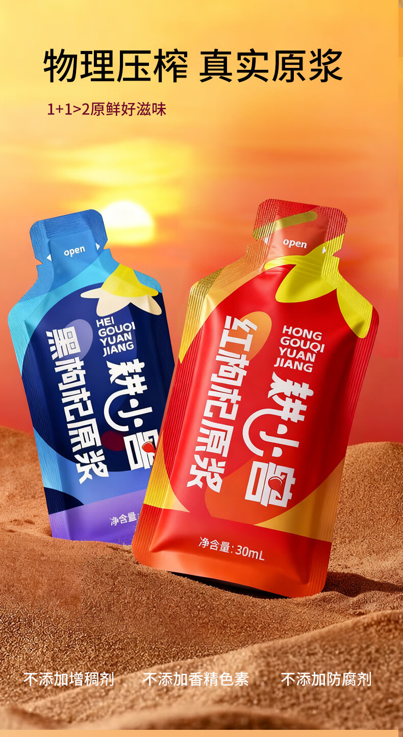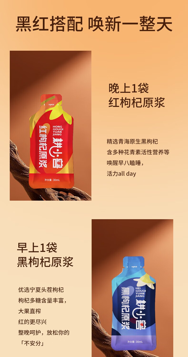 耕小兽枸杞原浆 鲜枸杞原浆 宁夏头茬枸杞鲜果原液 枸杞汁 30ml*90袋 红黑枸杞原浆 盒装