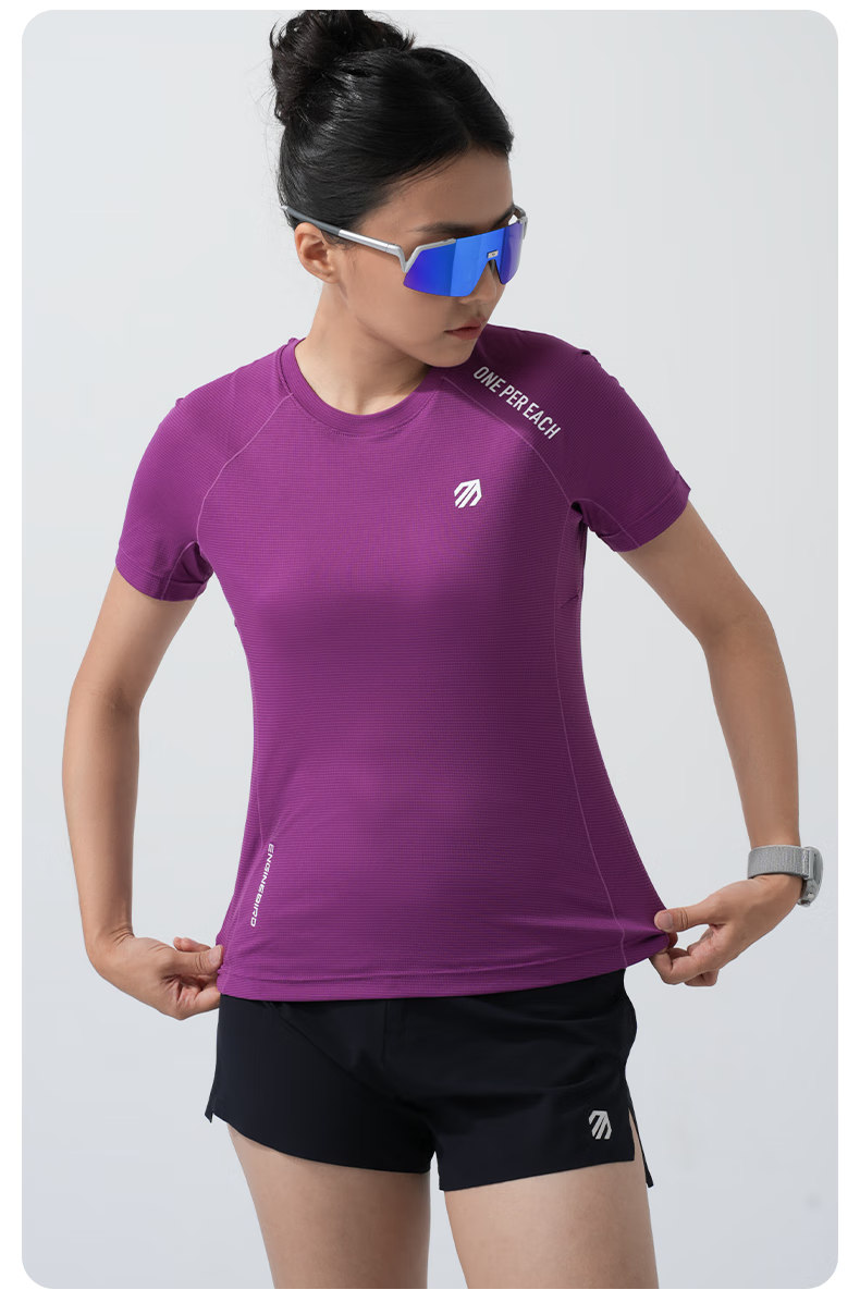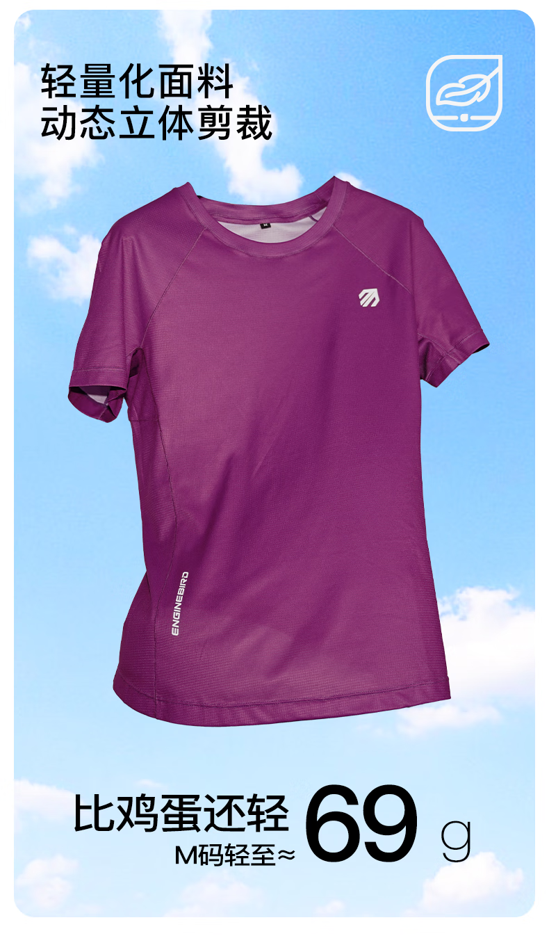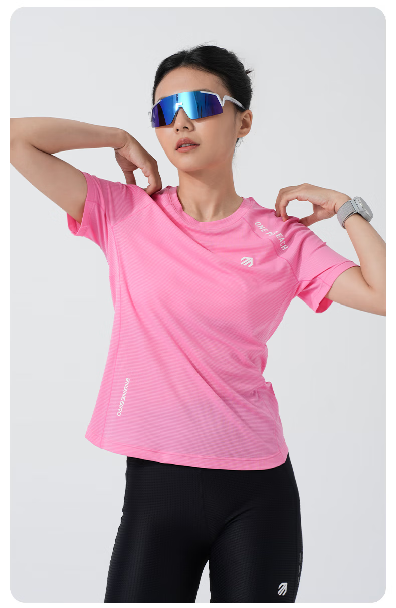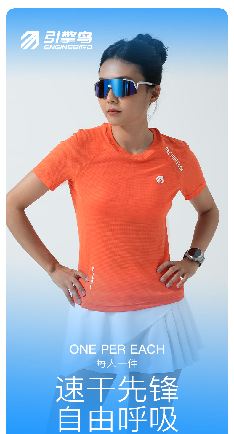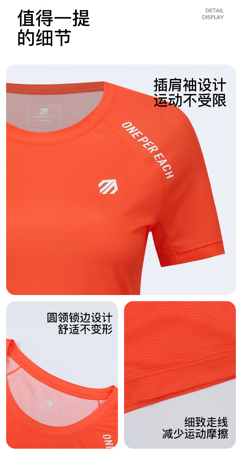 引擎鸟男女款运动短袖t恤春夏季户外速干衣马拉松跑步训练健身半袖上衣 浅芽绿(女款) M