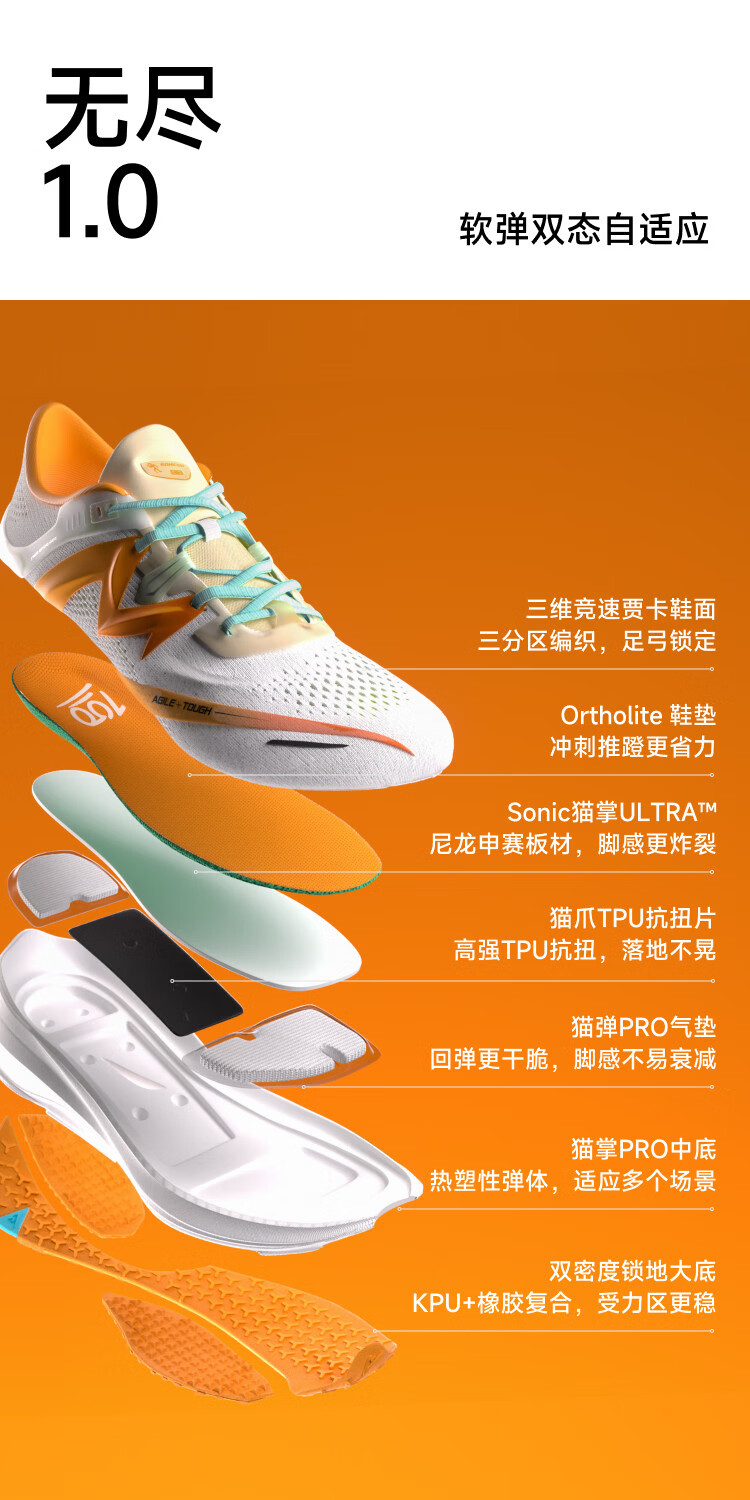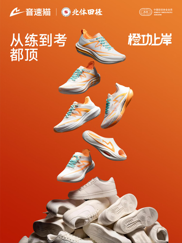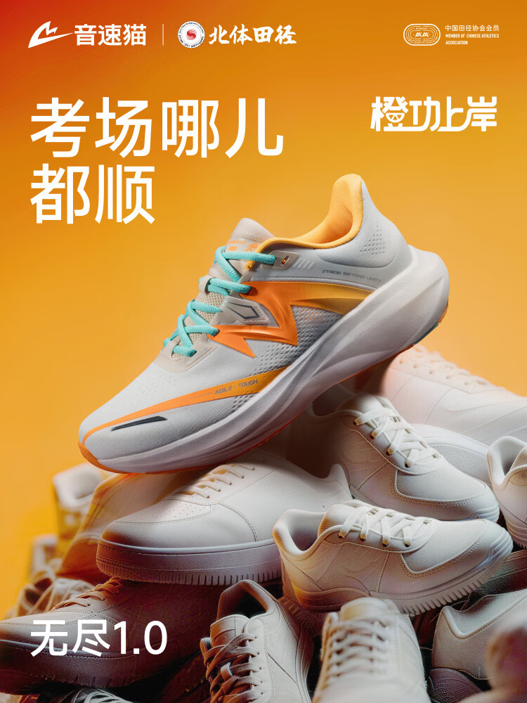 音速猫 x 北京体育大学丨无尽1.0跑鞋田径跑步鞋学生体考体测跑步鞋透气 橙功上岸 34 标准尺码