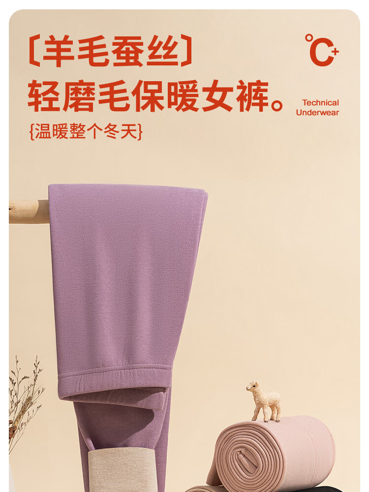 都市丽人秋裤女士保暖裤女保暖内衣女蚕丝羊毛裤女秋冬保暖内衣加绒加厚裤 抗菌羊毛蚕丝女士保暖裤-肤色 2XL (推荐120-140斤)