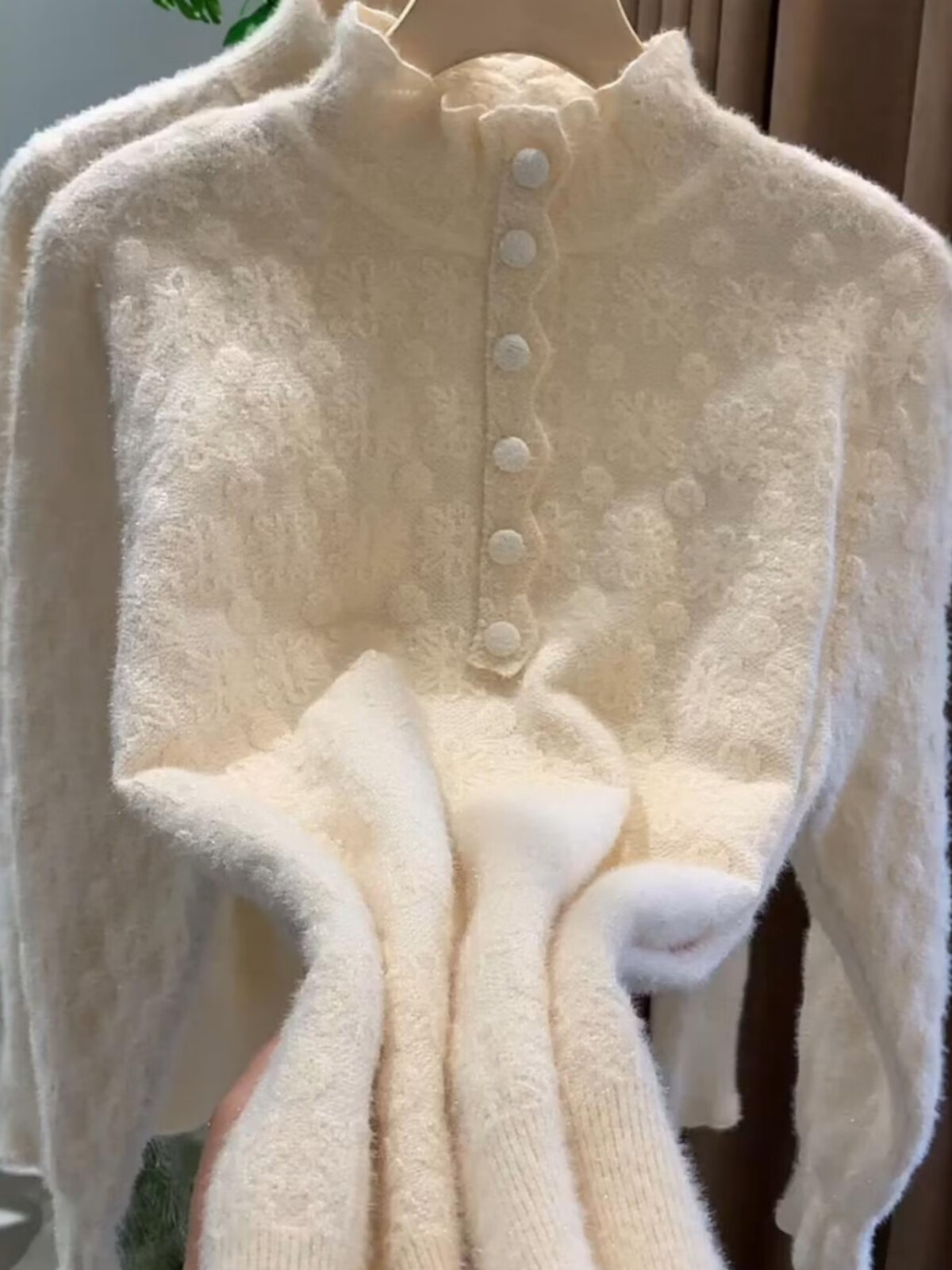 香影芬韩系半高领蕾丝磨毛打底针织衫毛衣女秋冬新款慵懒风软糯百搭上衣 米色 L (建议105-115斤)