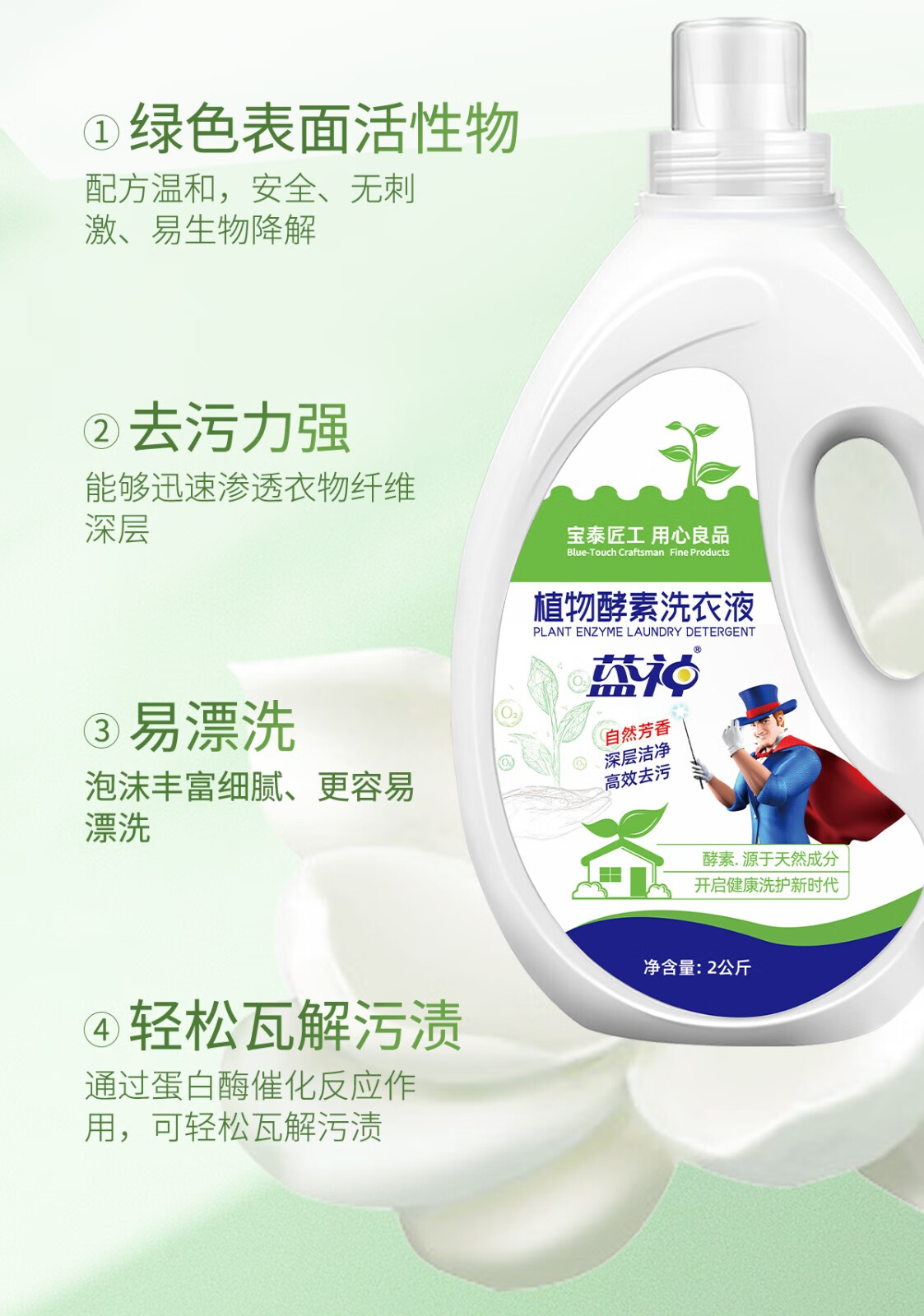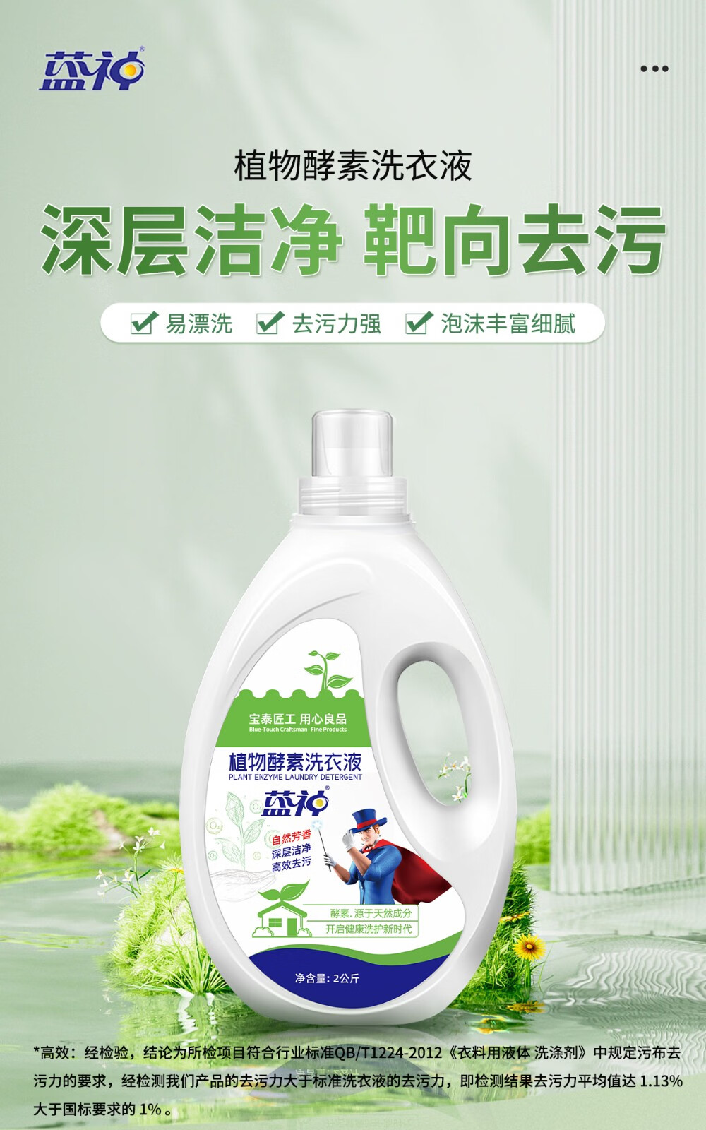 蓝神植物酵素洗衣液剂生物酵素酶益生菌深层洁净去污实惠 植物酵素洗衣液 2kg