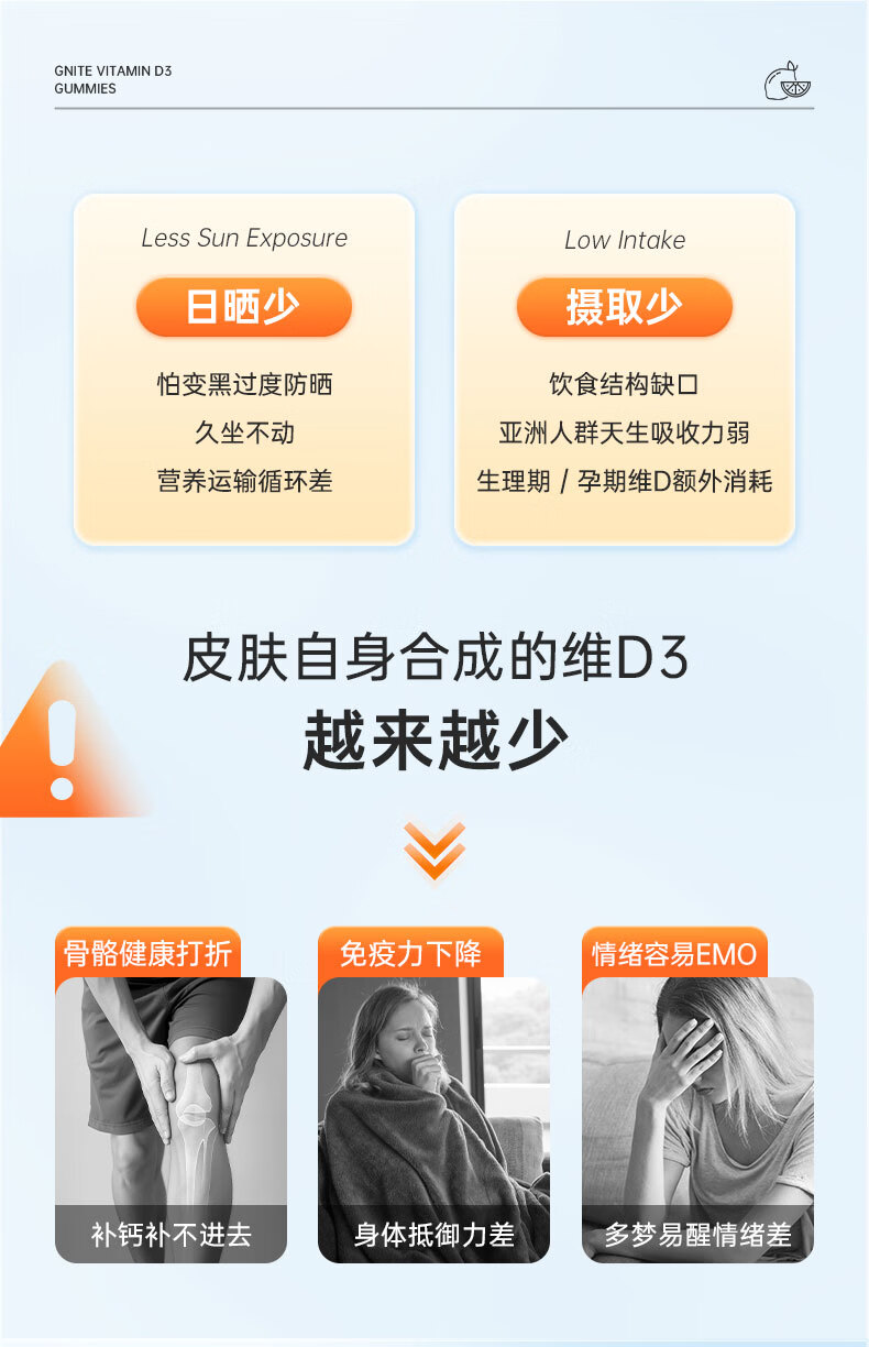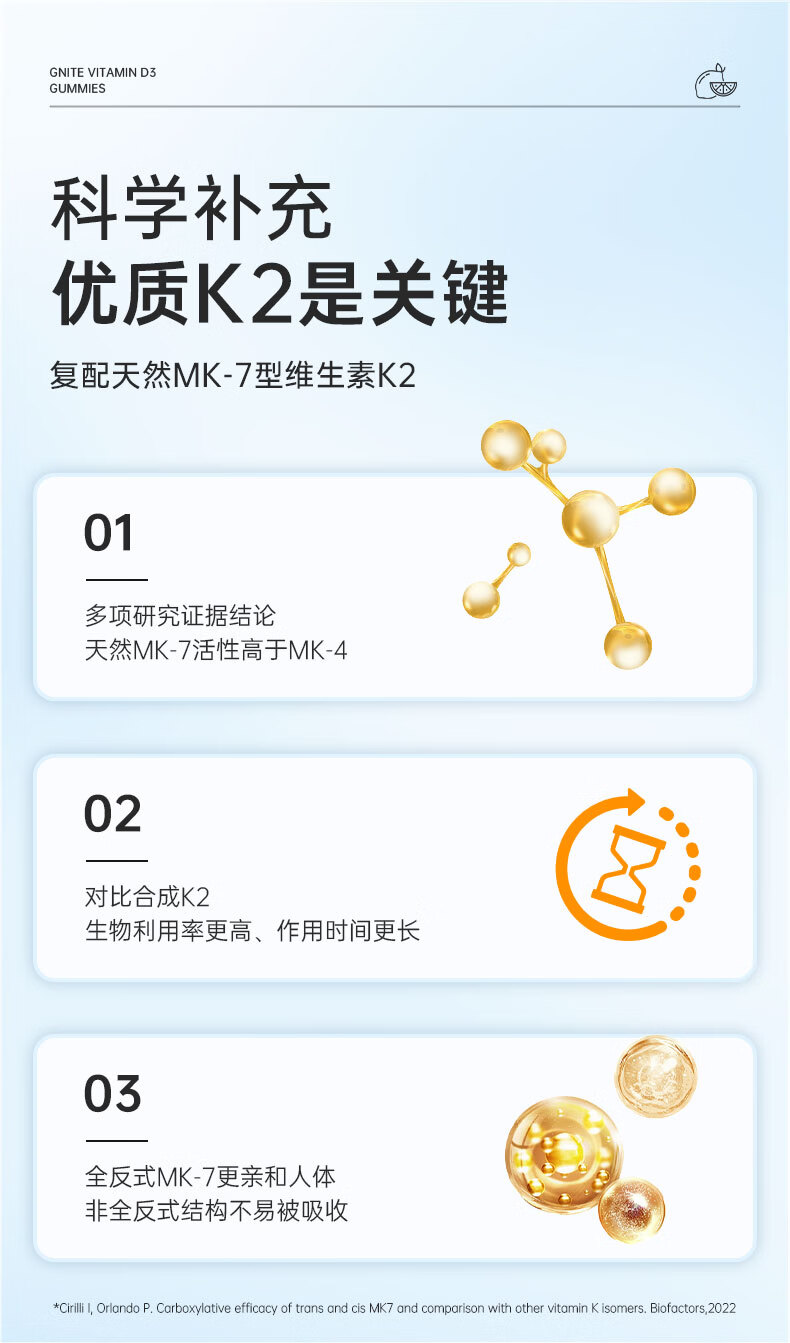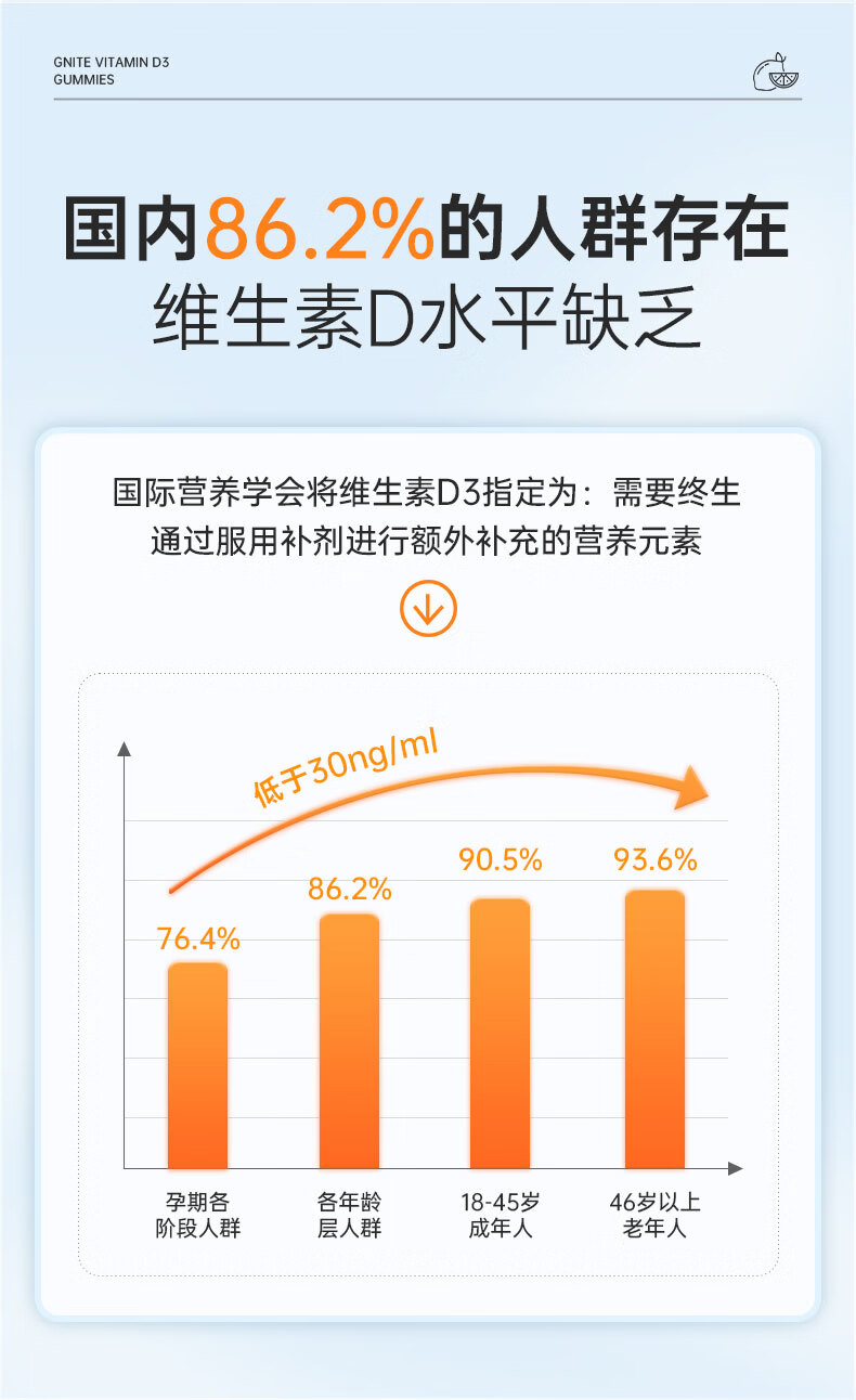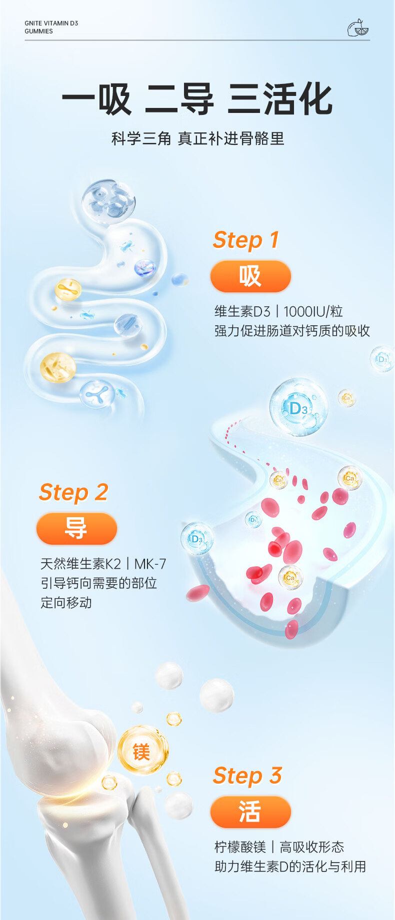 GNITE维生素D3+K2+镁三合一阳光瓶补钙成人儿童青少年软糖60粒 维D阳光瓶 60粒*1瓶