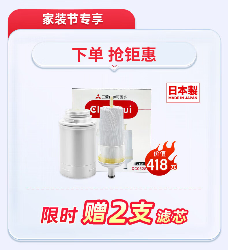 可菱水(日本制)台式净水机 直饮级厨房台上式净水器家用过滤器不插电0废水超滤净饮机Q602日本原装进口 【日本制】Q602典雅红(多赠1套滤芯)-4年免换芯