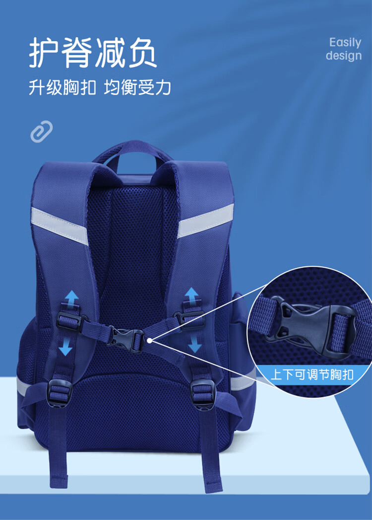 醇龙(CHUNLONG) 书包小学生男女生一二三四五六年级双肩包减负双肩格定制印logo 宝蓝小号6387(无礼品)