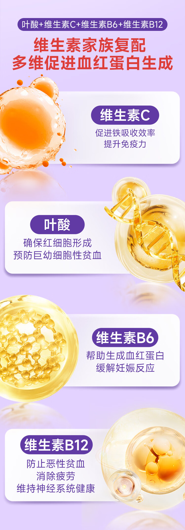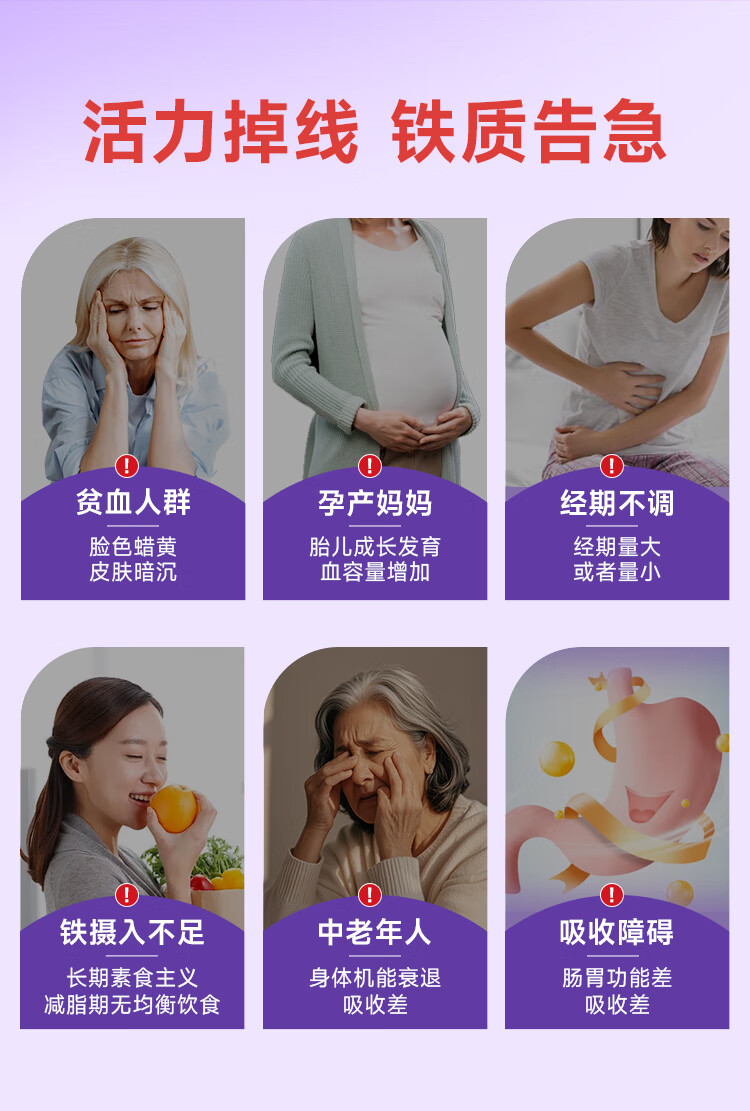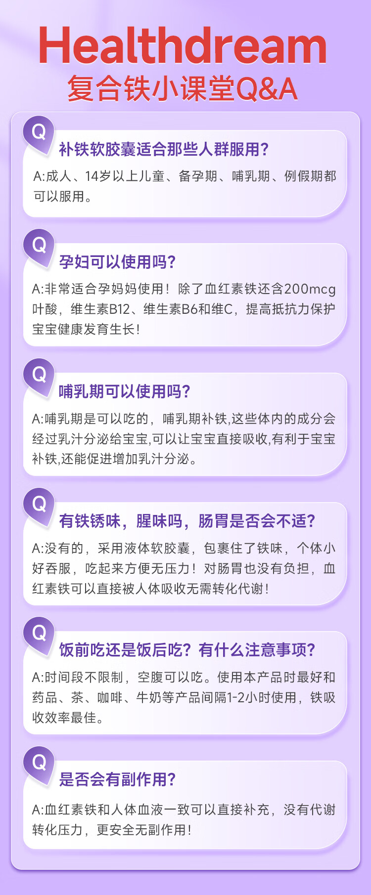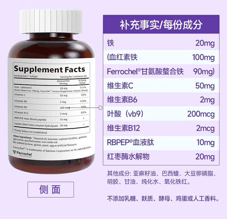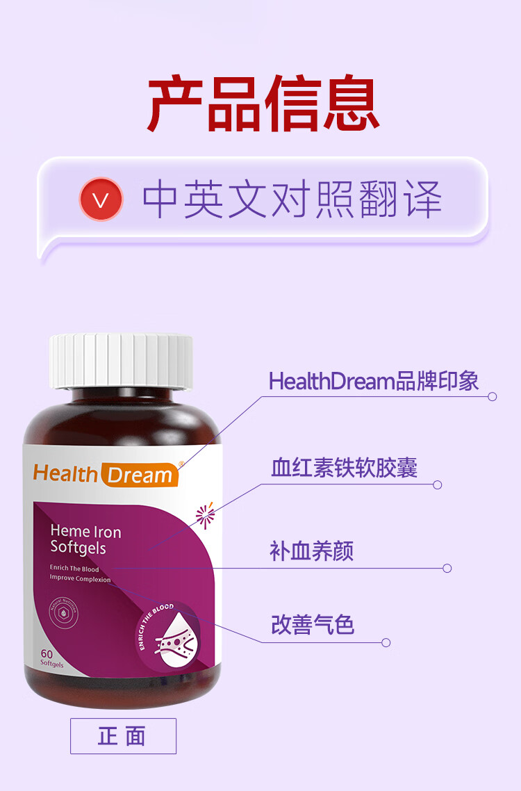 healthdream成人补铁补血补气血改善贫血铁剂铁片女孕妇哺乳期铁元素叶酸维c 2瓶装(60粒/瓶)