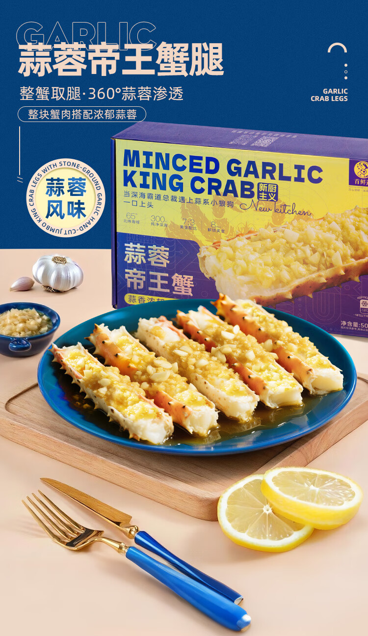 首鲜道帝王蟹蟹腿 鲜活熟冻帝王蟹腿 蟹类生鲜大螃蟹腿年货礼盒 【蟹虾礼盒】帝王蟹2.0-2.5斤/只+盐田虾*1盒 400g