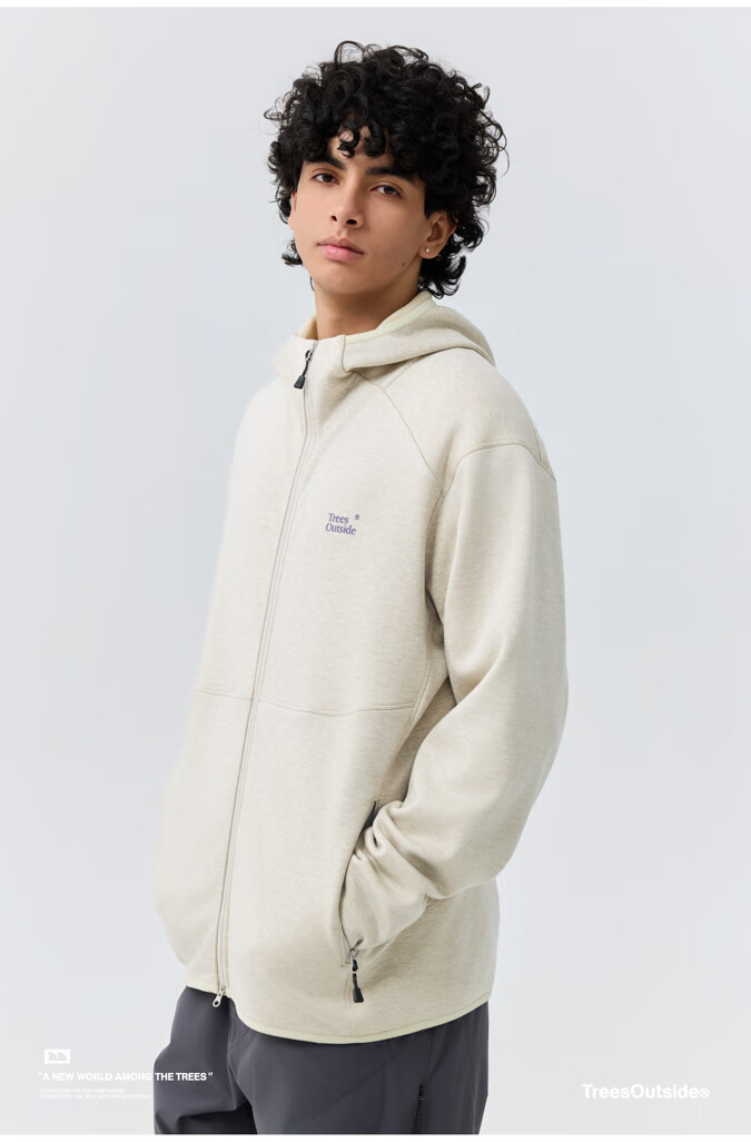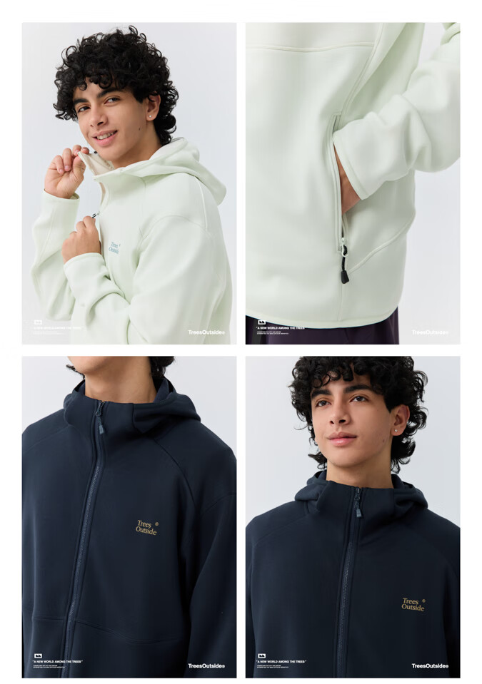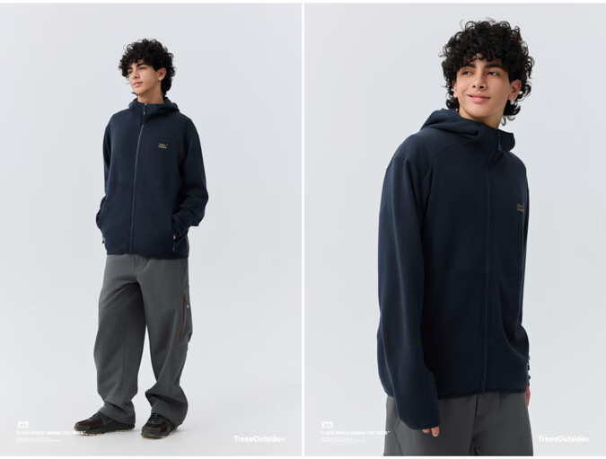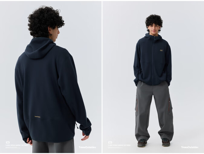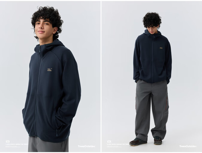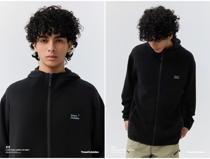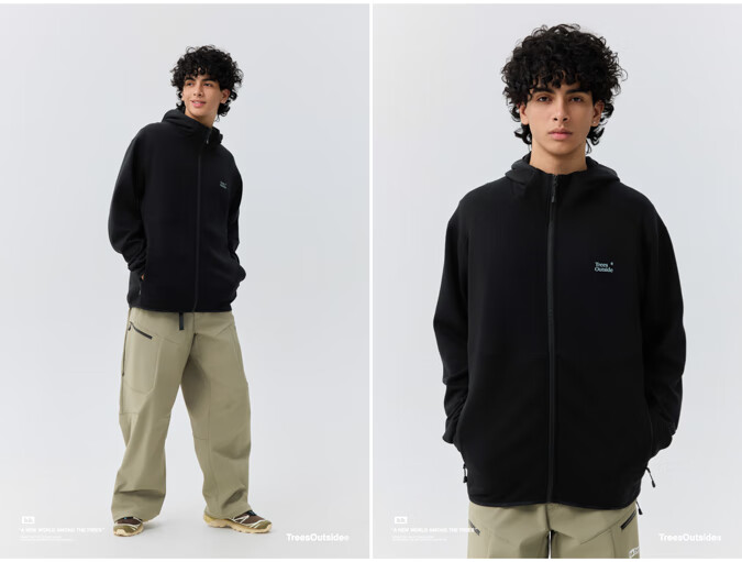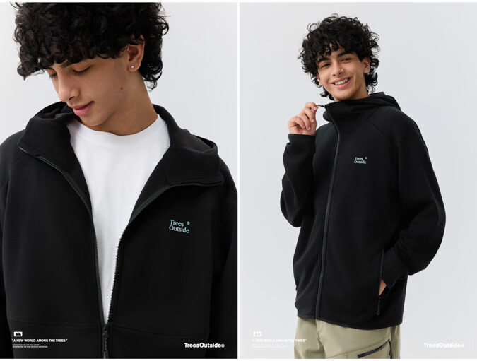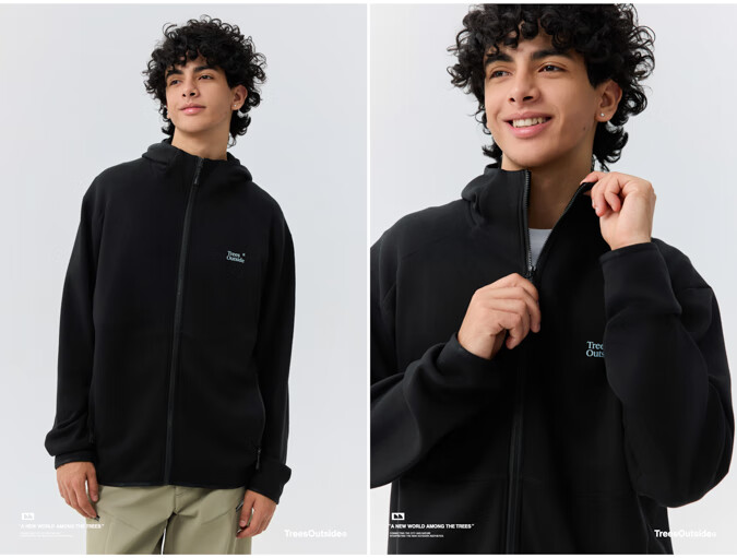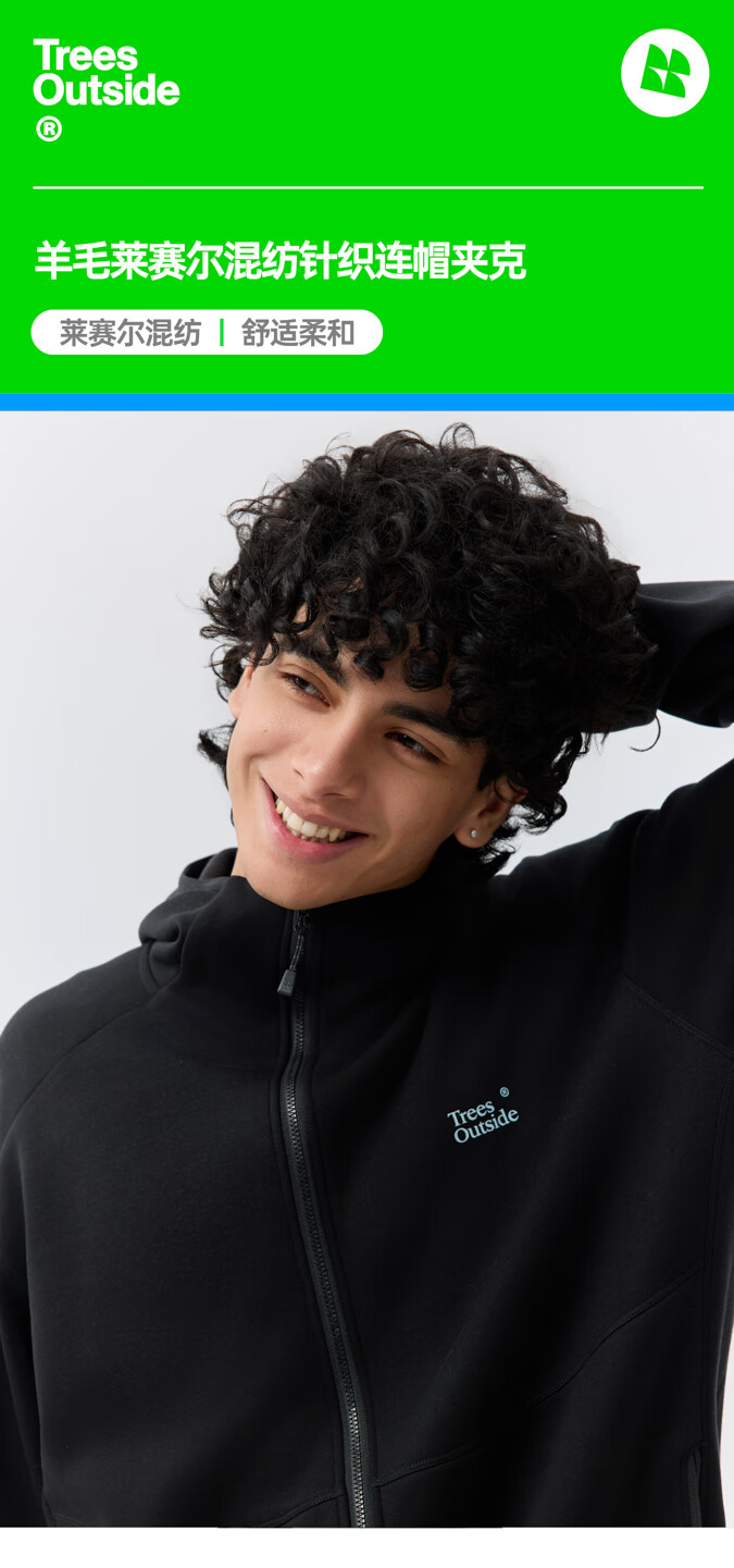 warmtreesTreesOutside羊毛莱赛尔混纺针织连帽夹克秋冬季时尚外套运动上衣 漫暮黑 L