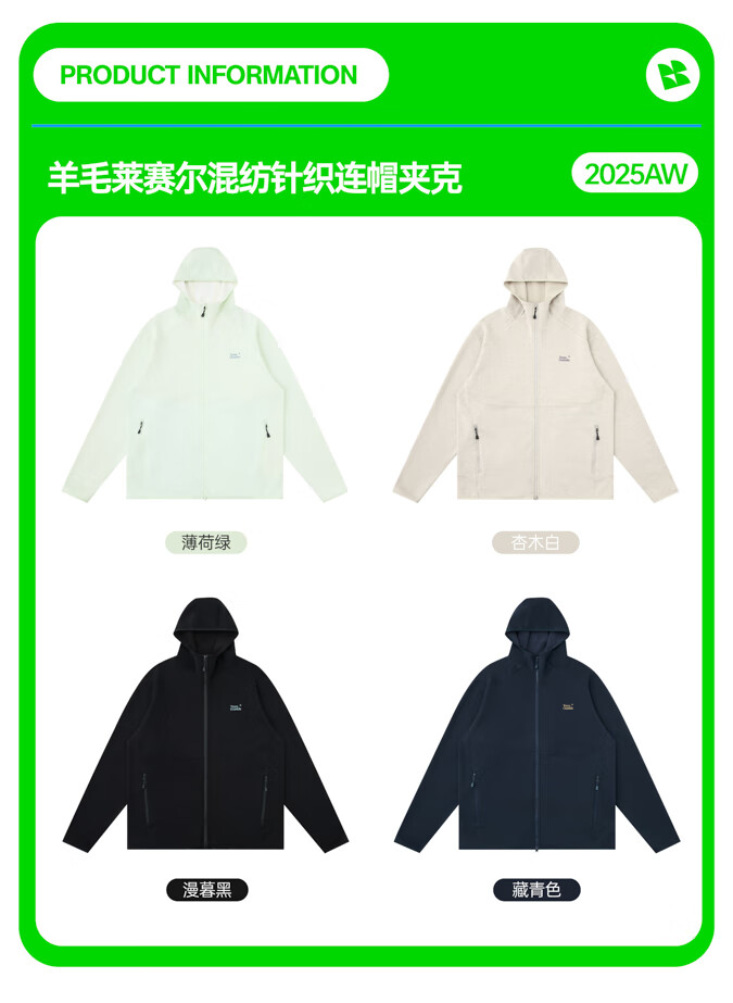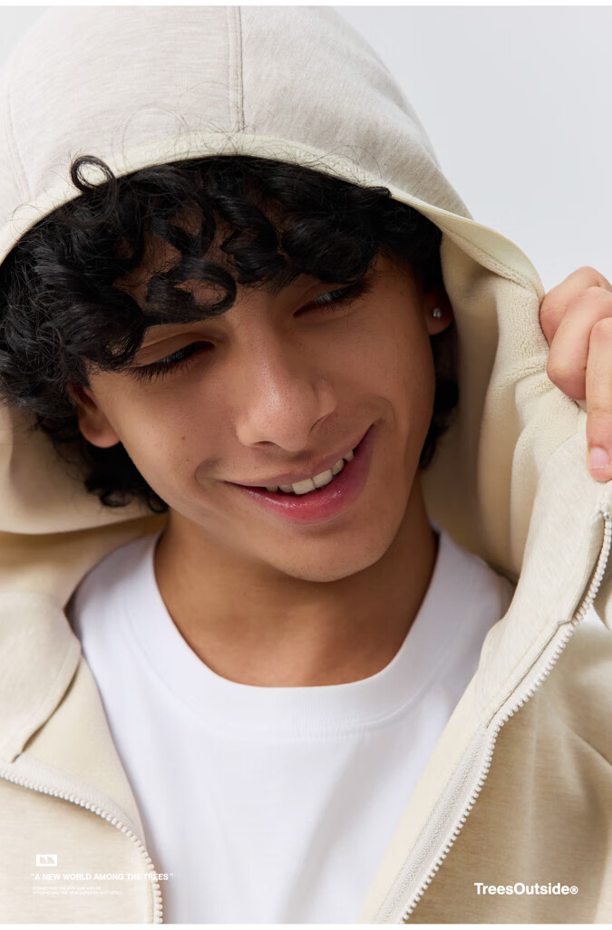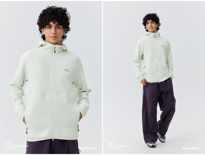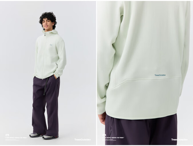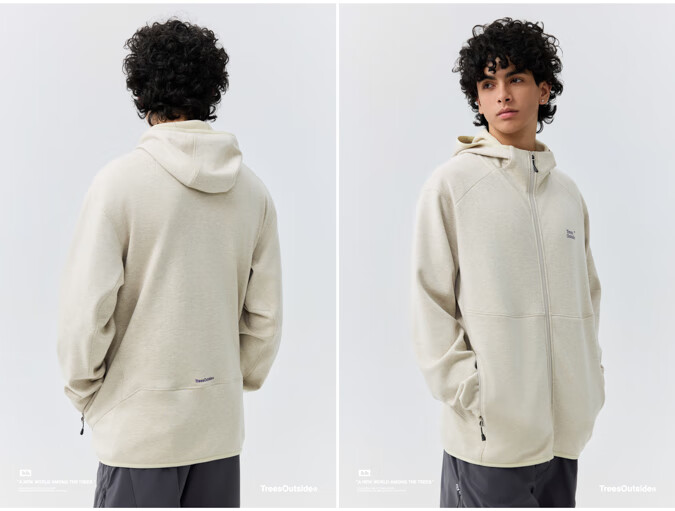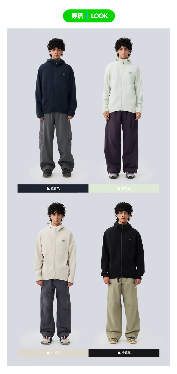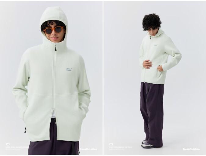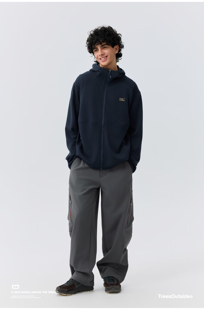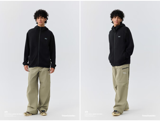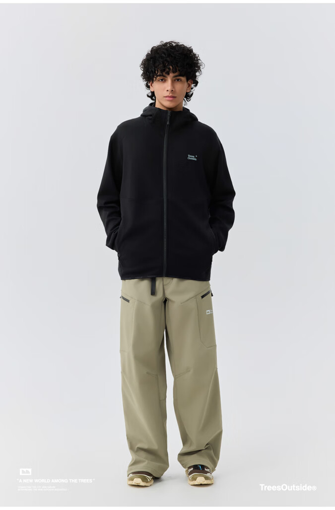 warmtreesTreesOutside羊毛莱赛尔混纺针织连帽夹克秋冬季时尚外套运动上衣 漫暮黑 L