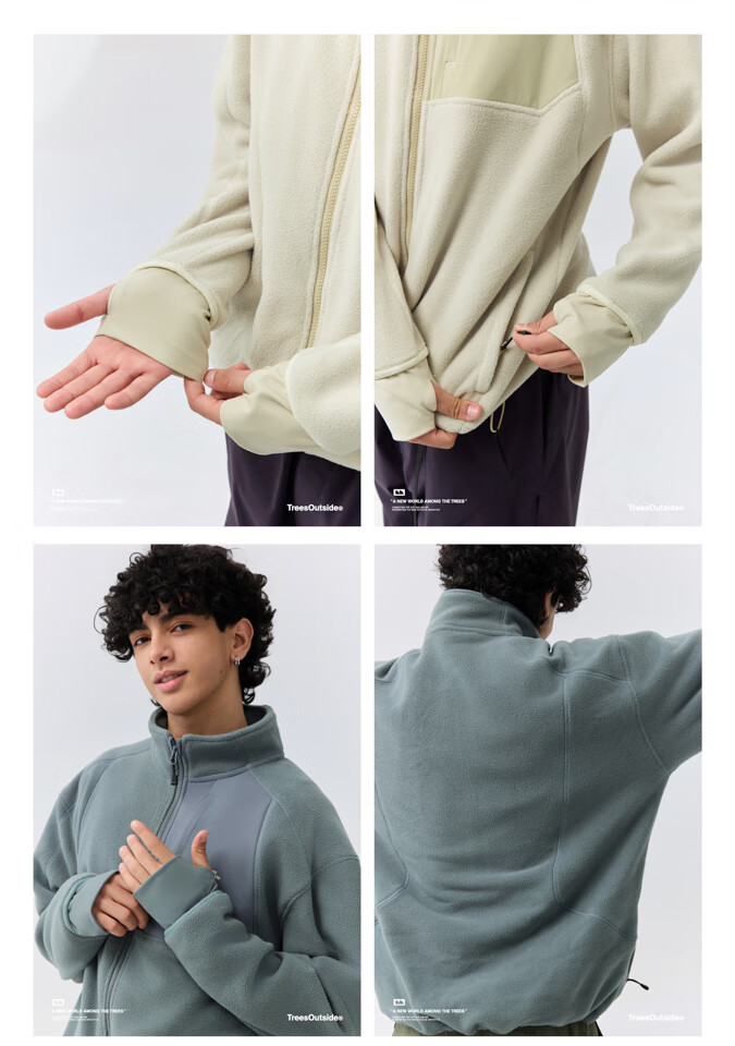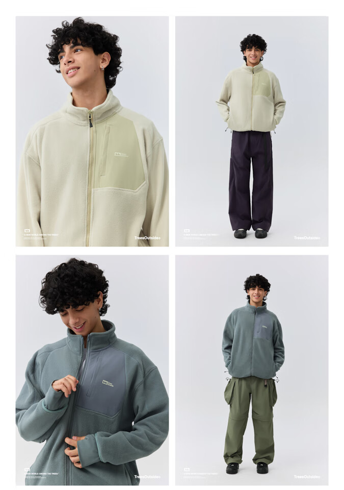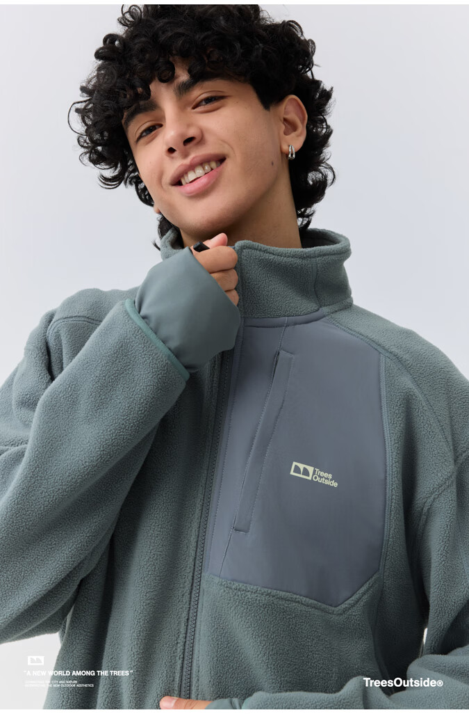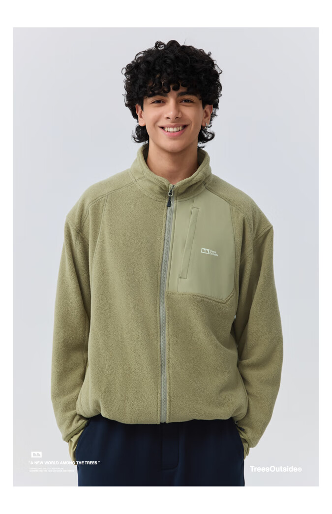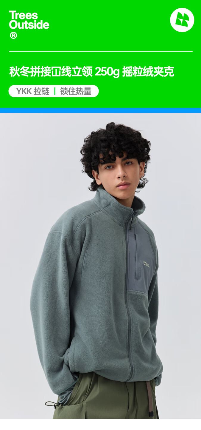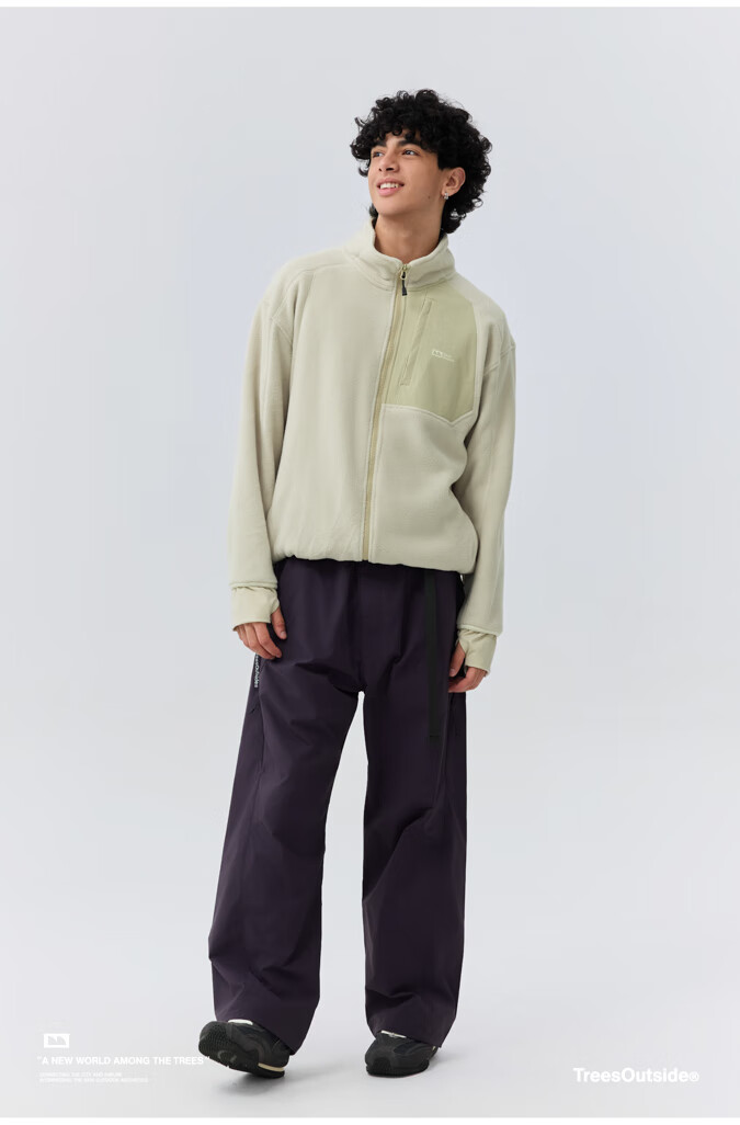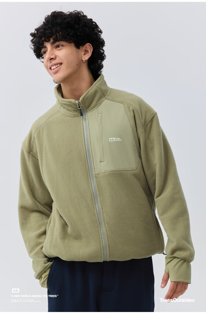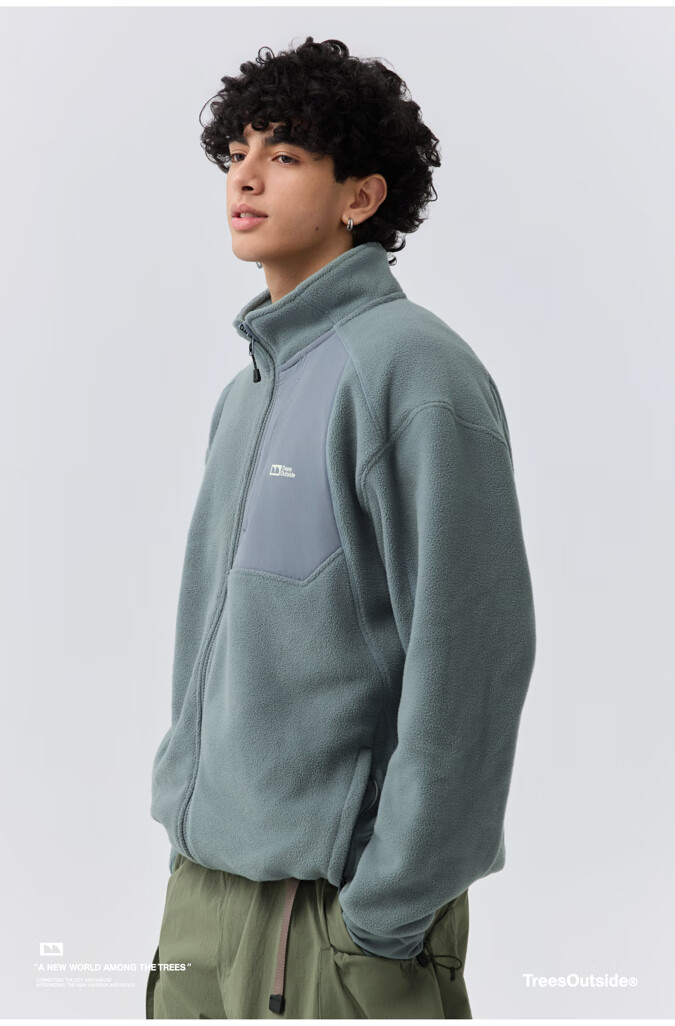 warmtreesTreesOutside秋冬拼接冚线立领250g摇粒绒夹克外套运动上衣服 卵石色+浅米白 S