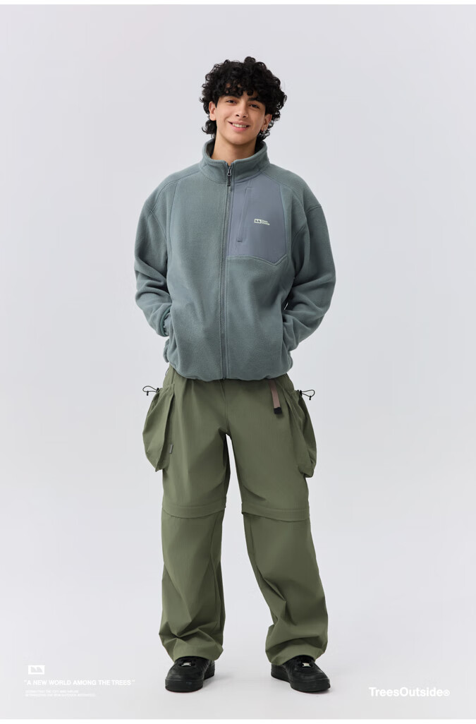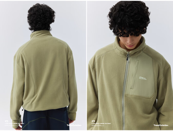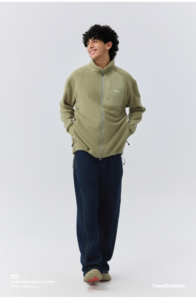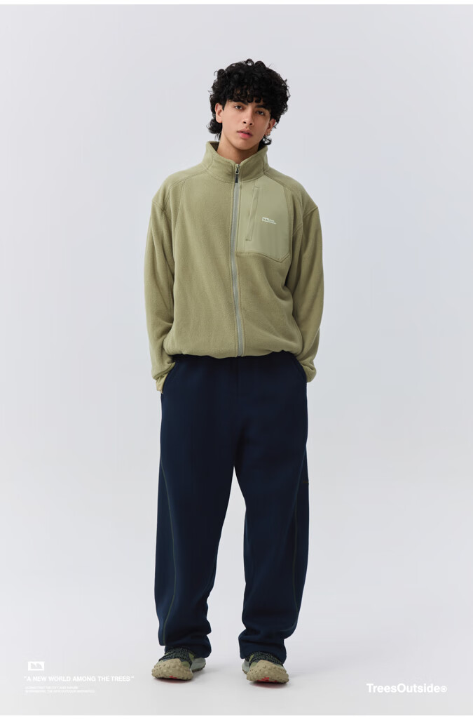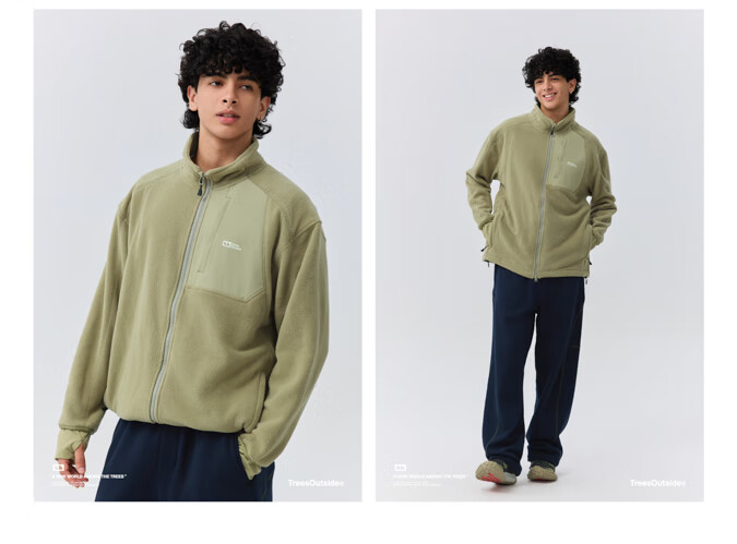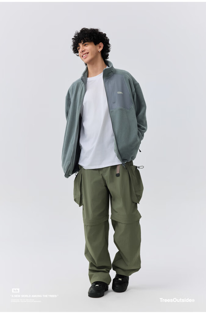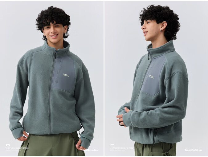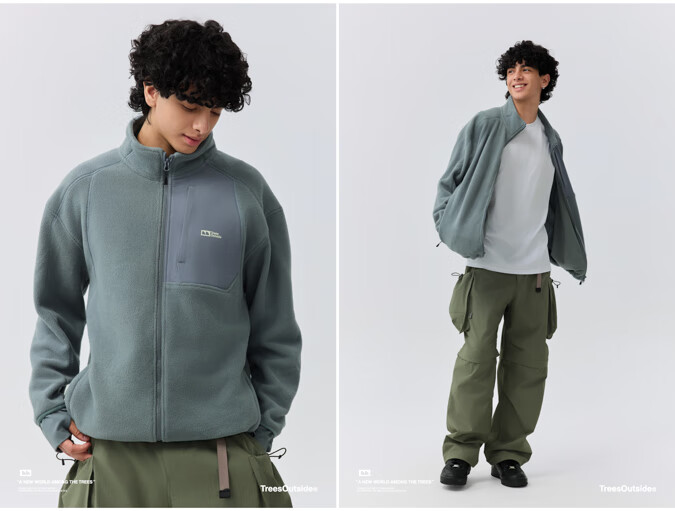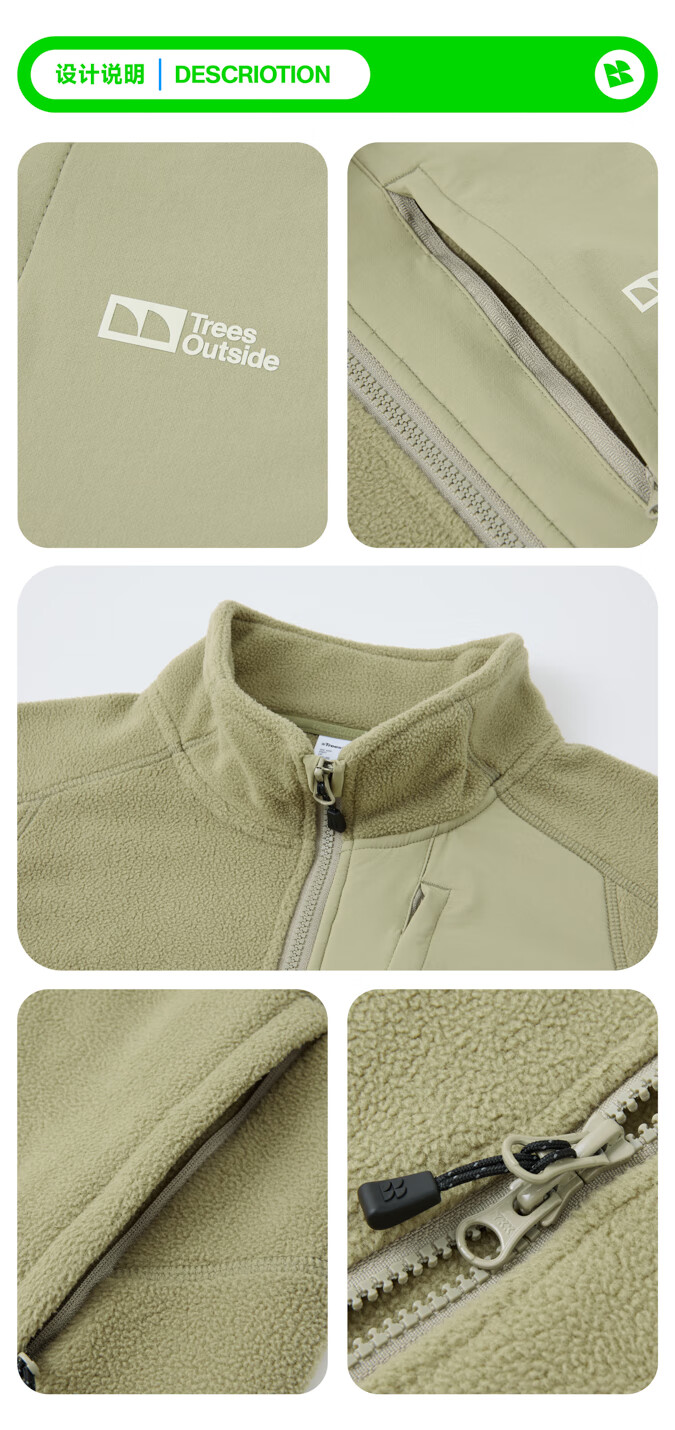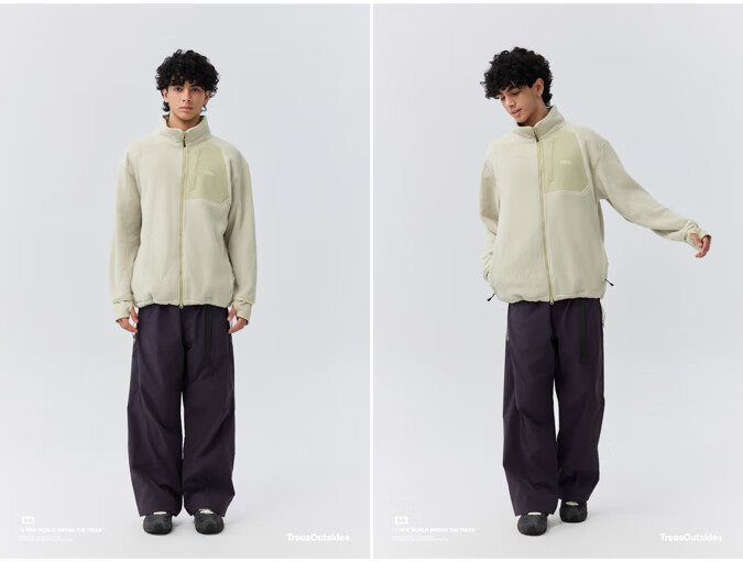 warmtreesTreesOutside秋冬拼接冚线立领250g摇粒绒夹克外套运动上衣服 卵石色+浅米白 S