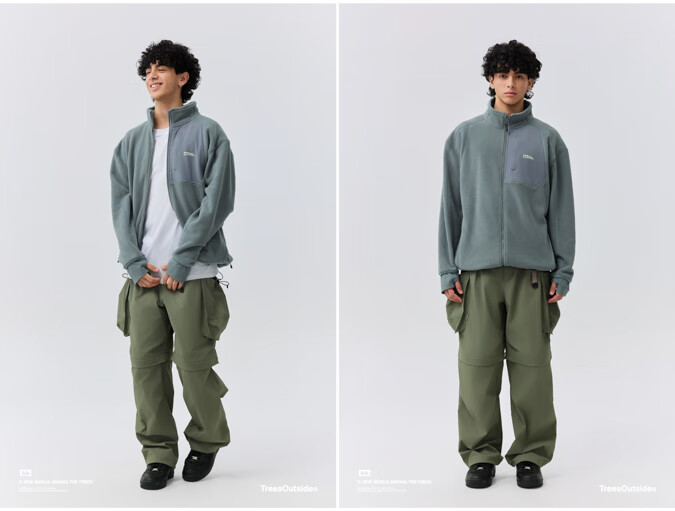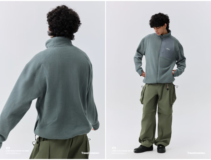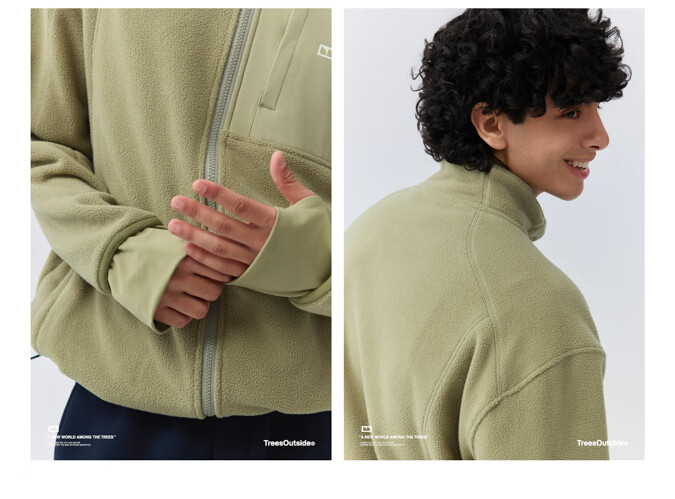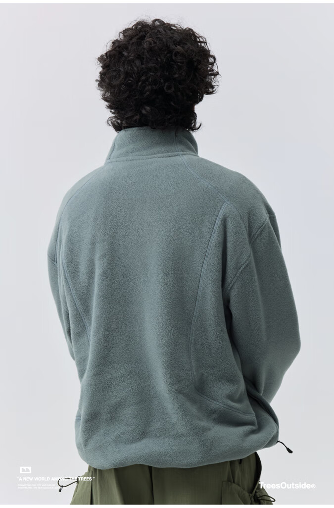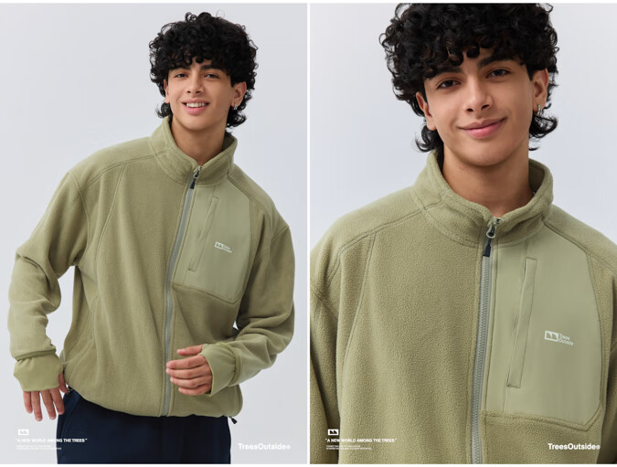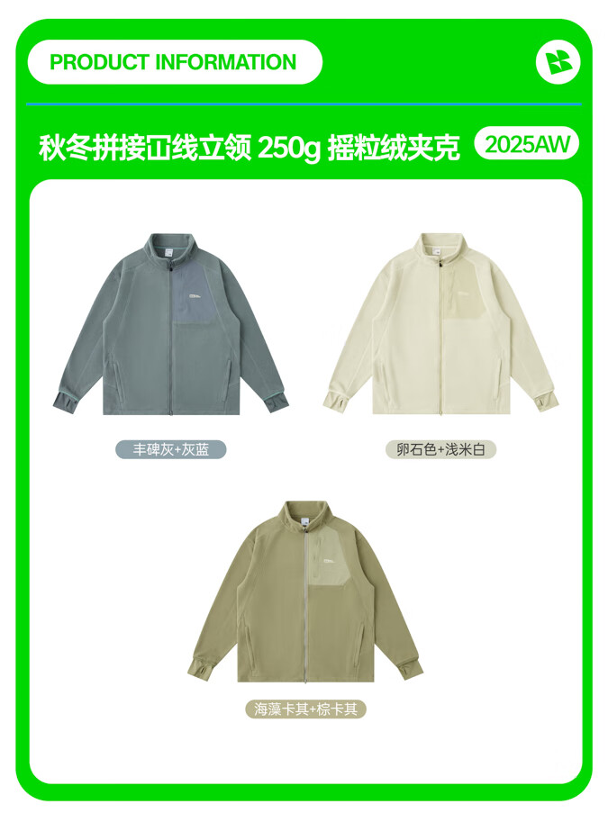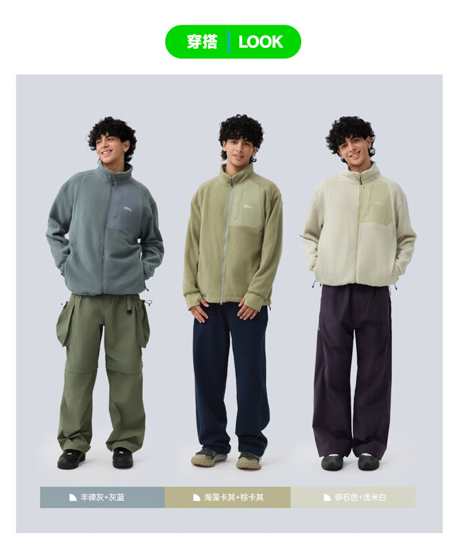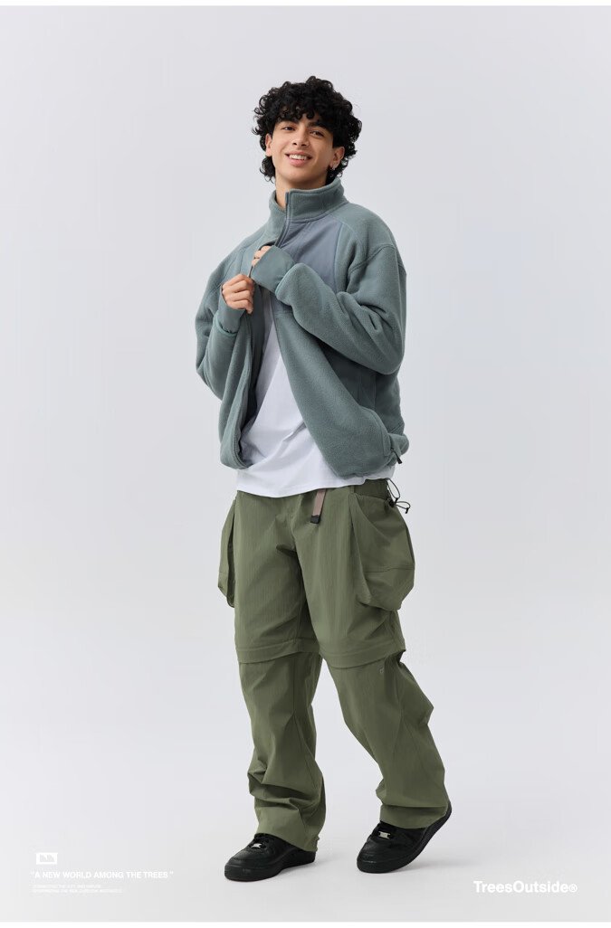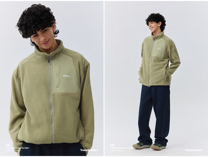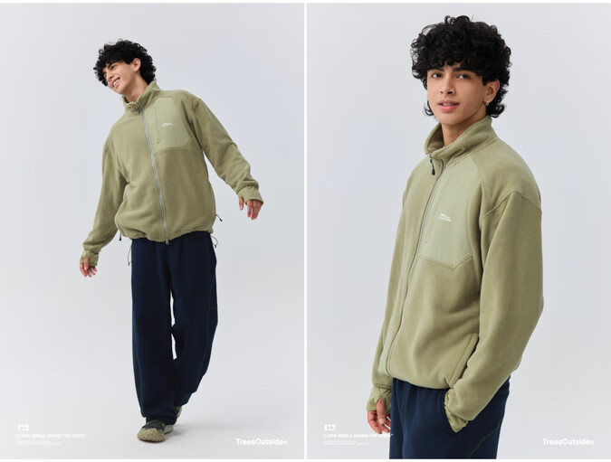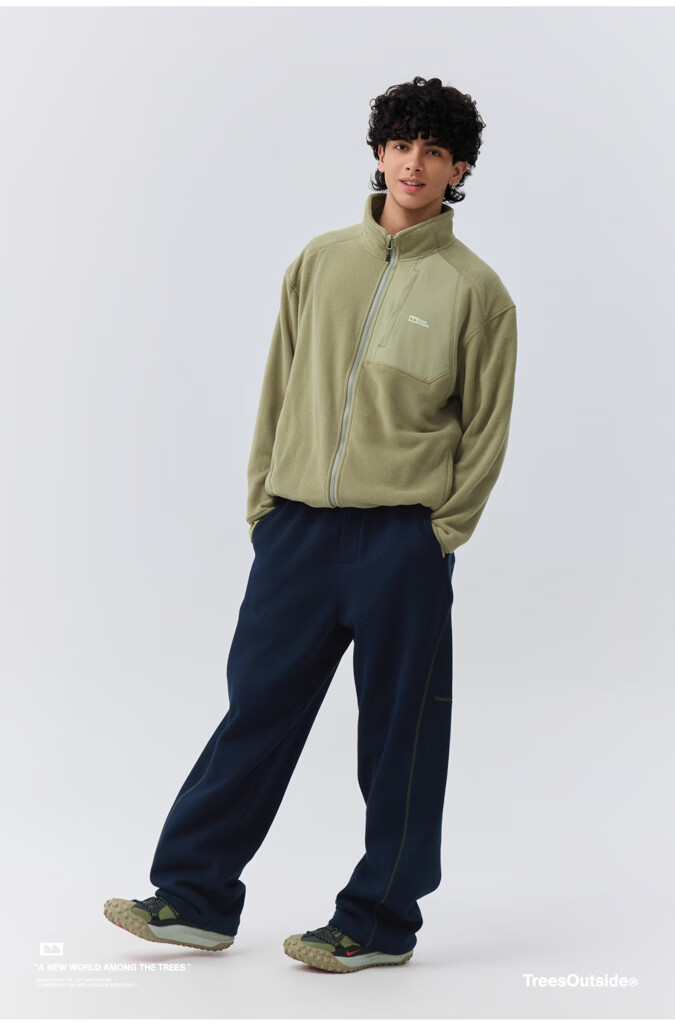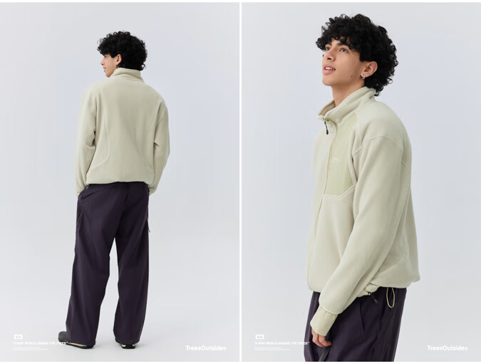 warmtreesTreesOutside秋冬拼接冚线立领250g摇粒绒夹克外套运动上衣服 卵石色+浅米白 S