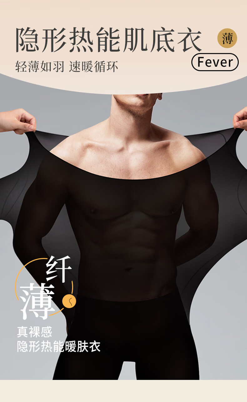 六月玫瑰 保暖内衣男秋冬新品面膜肌底衣轻薄暖肤基础打底衫内搭两件装 灰+黑 XL