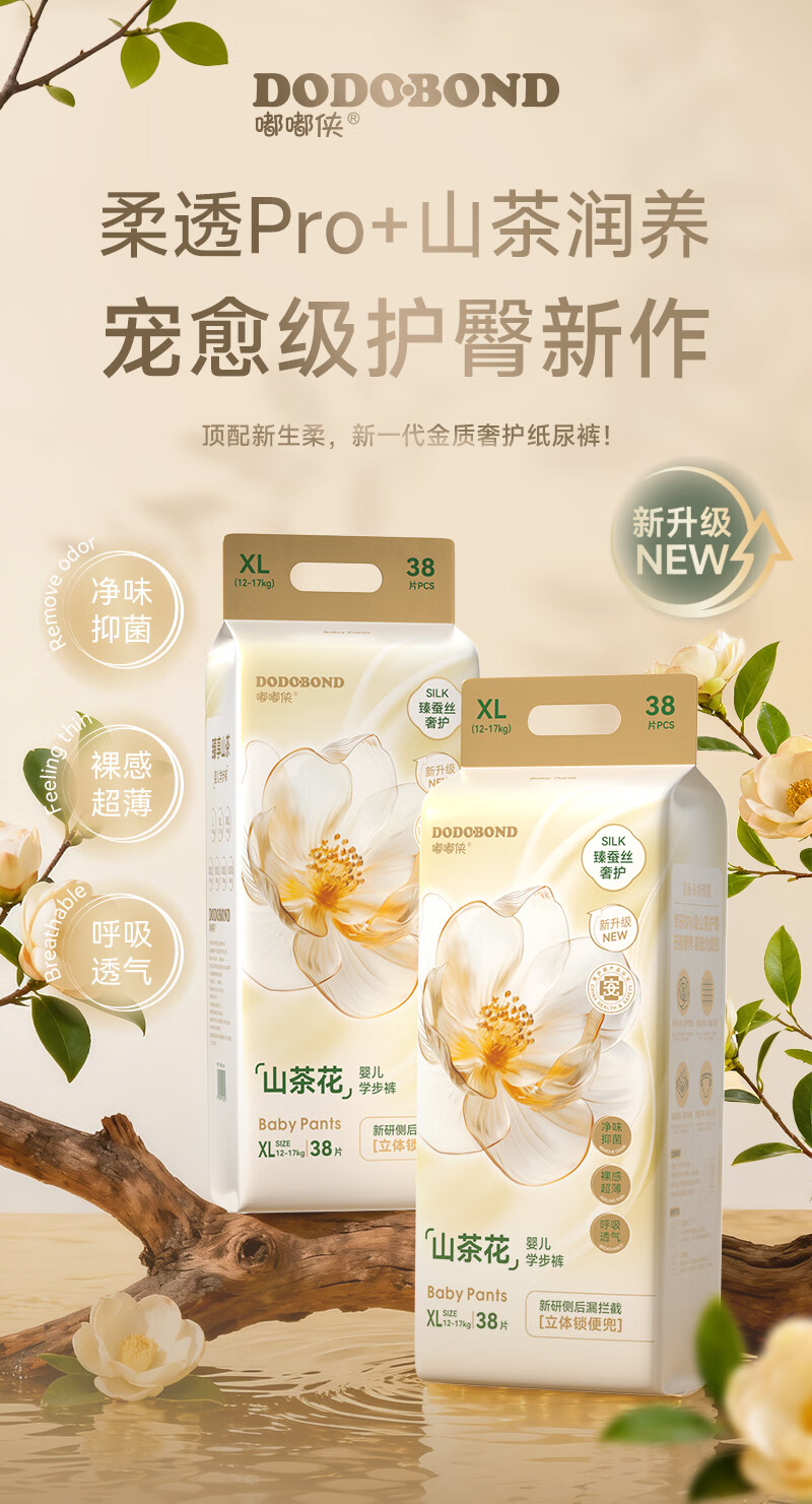 嘟嘟侠山茶花纸尿裤婴儿尿不湿宝宝拉拉裤xxxl码夜用尿片尿布nb码试用装 拉拉裤4XL码30片【建议40-50斤】 1包