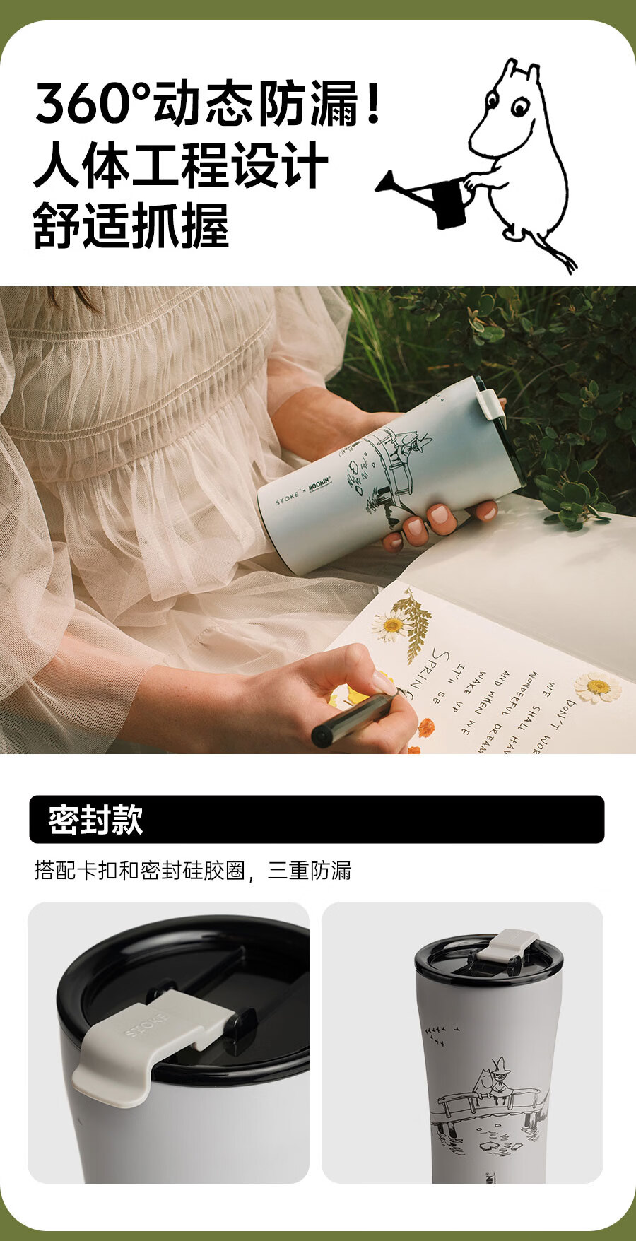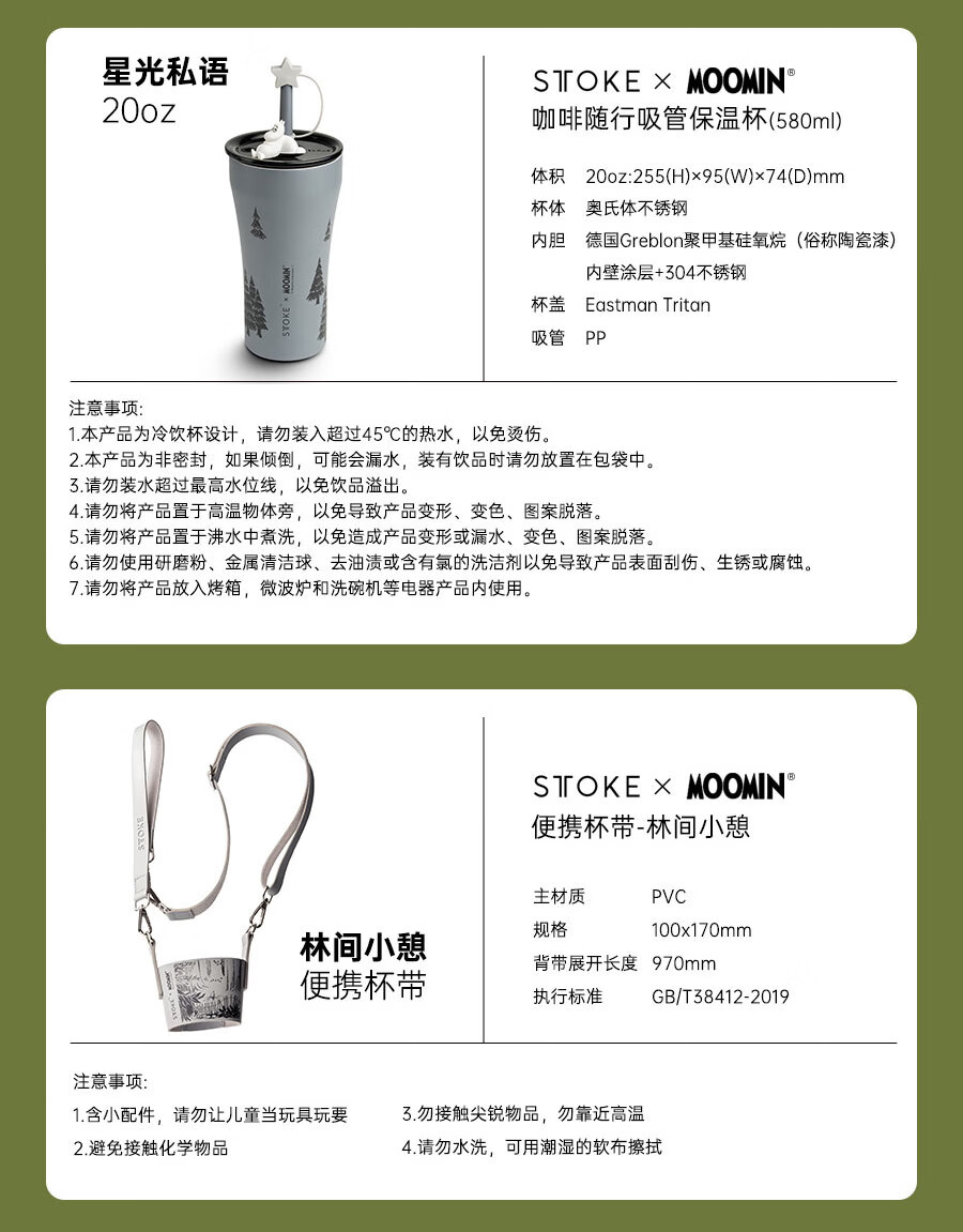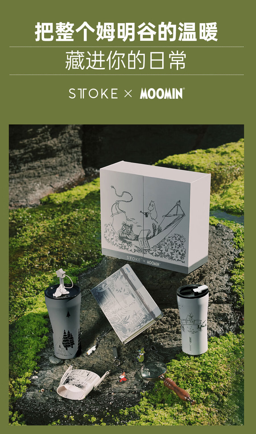 慕咖STTOKE联名MOOMIN姆明陶瓷内胆保温杯高颜值咖啡杯礼物过年礼盒 【姆明】林间小歇便携背带