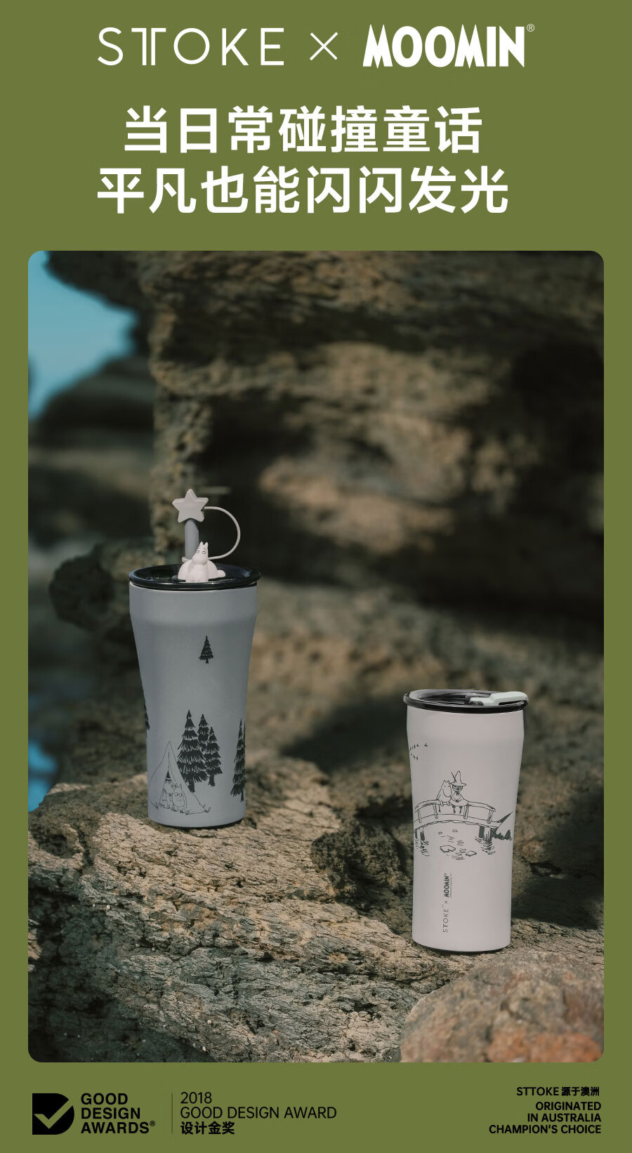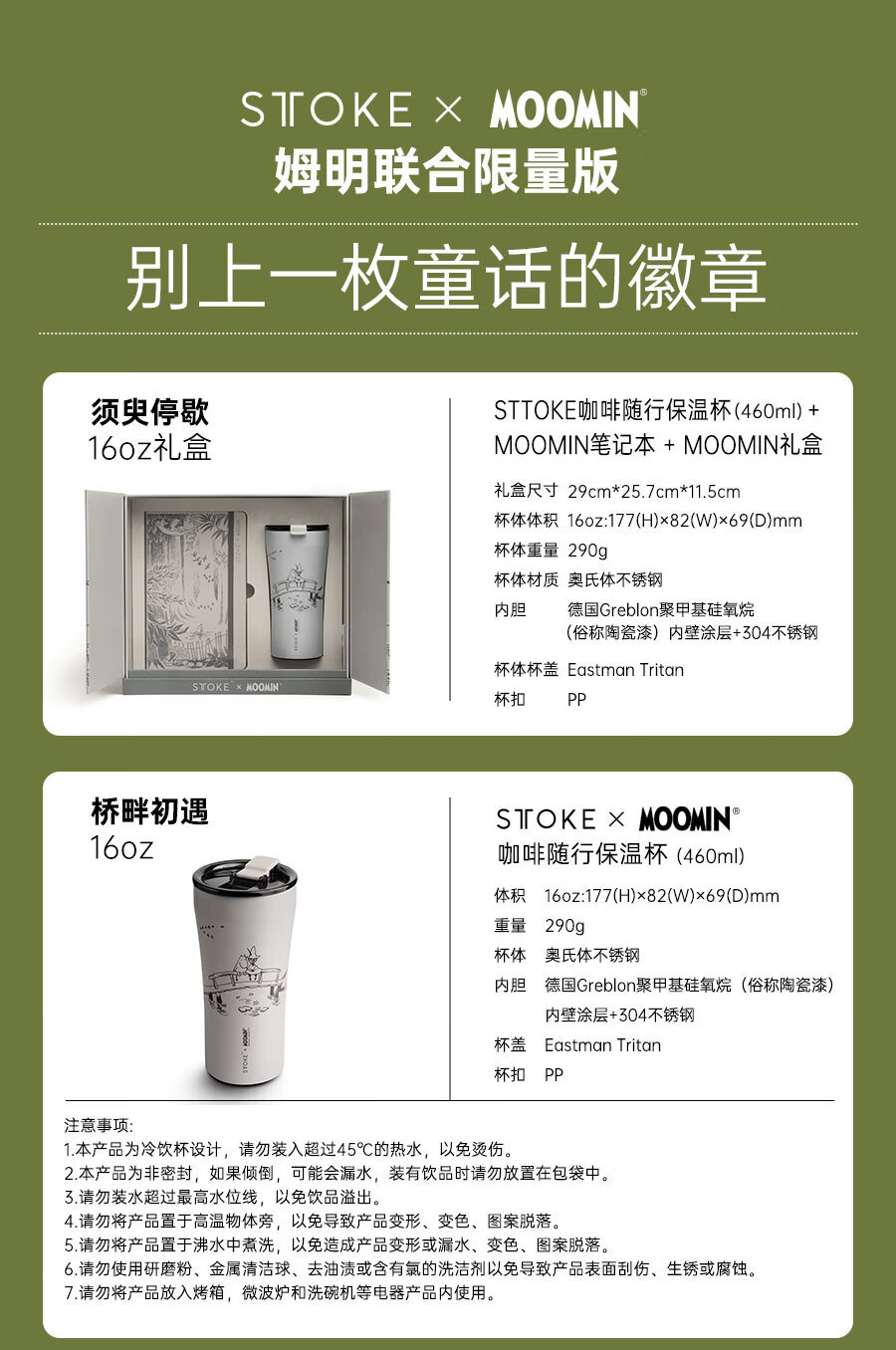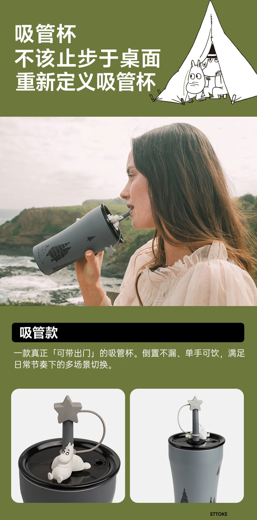 慕咖STTOKE联名MOOMIN姆明陶瓷内胆保温杯高颜值咖啡杯礼物过年礼盒 【姆明】林间小歇便携背带