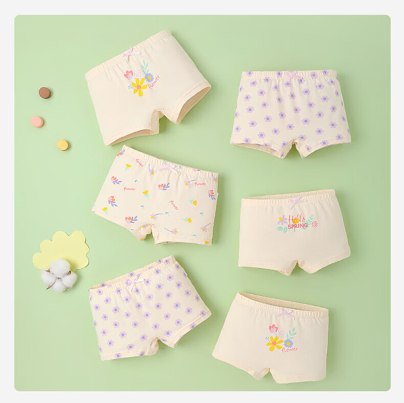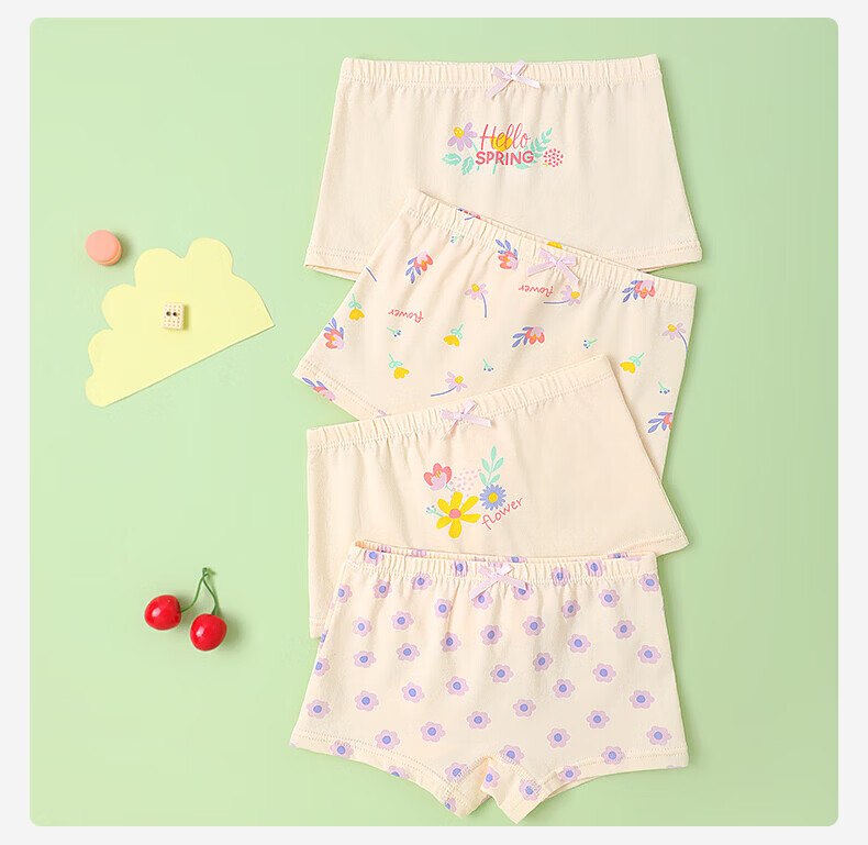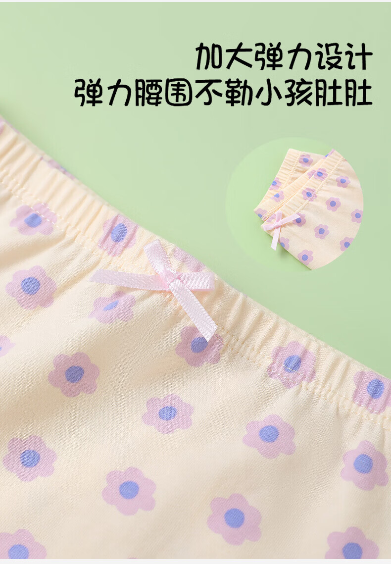 MQDMINI儿童内裤7A抗菌女童中大童小女孩柔软四角底平角短裤透气 阳光小花-4条装【7A抗菌纯棉】 均码 L码5-6岁35-45斤