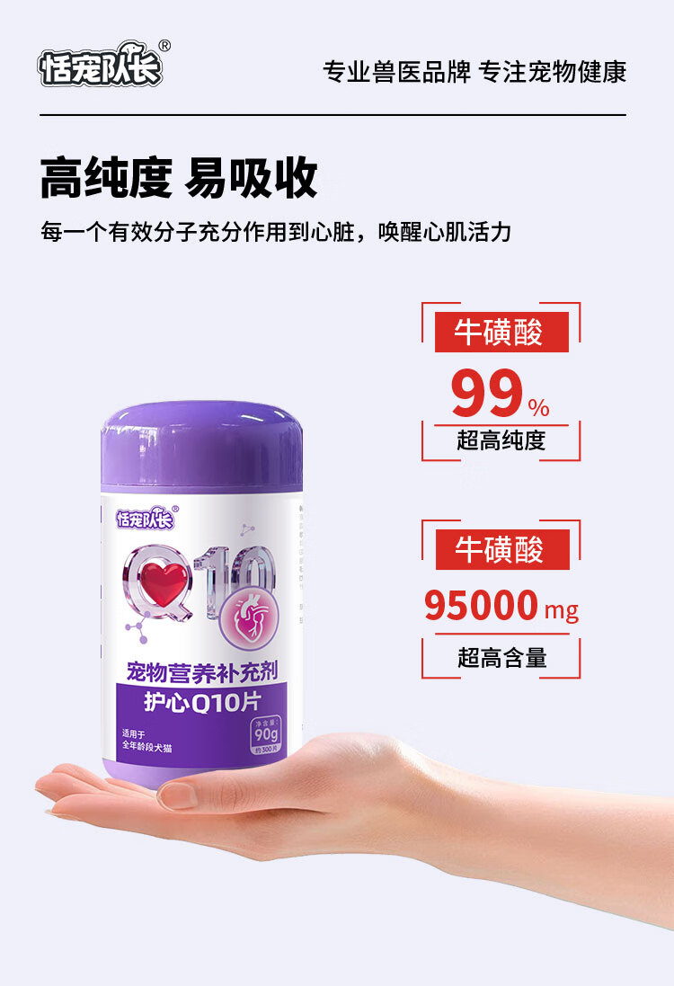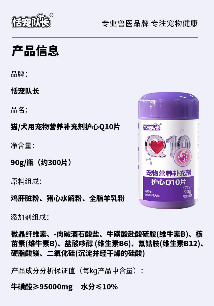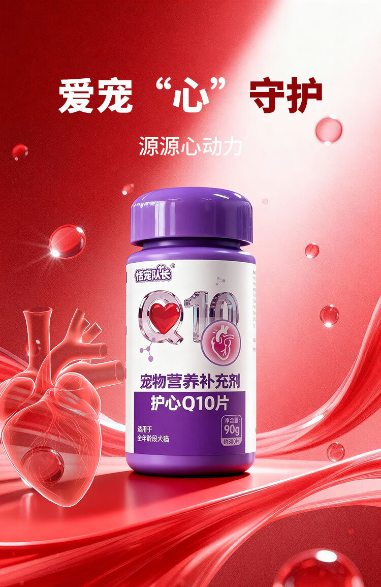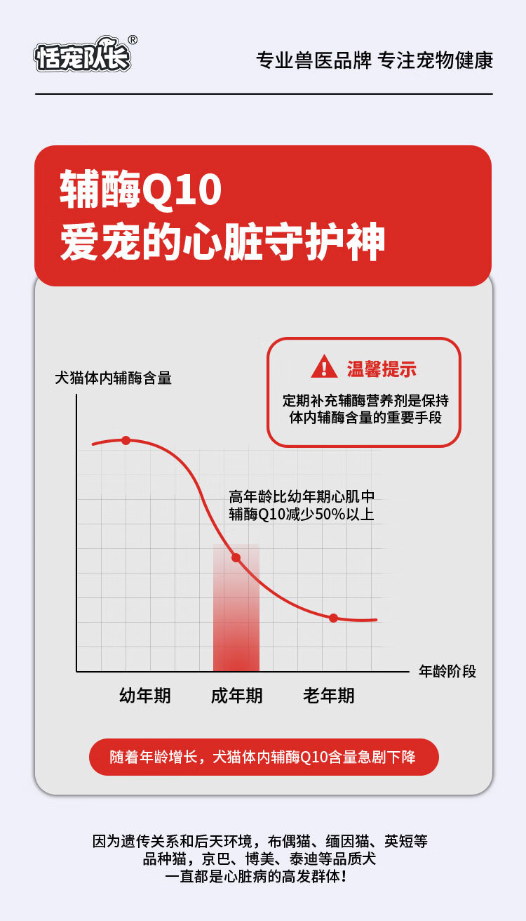 恬宠队长狗狗心脏保护辅酶Q10护心片宠物猫咪调理心脏老龄养护健康犬猫 2瓶【必备】辅酶Q10(心脏健康)