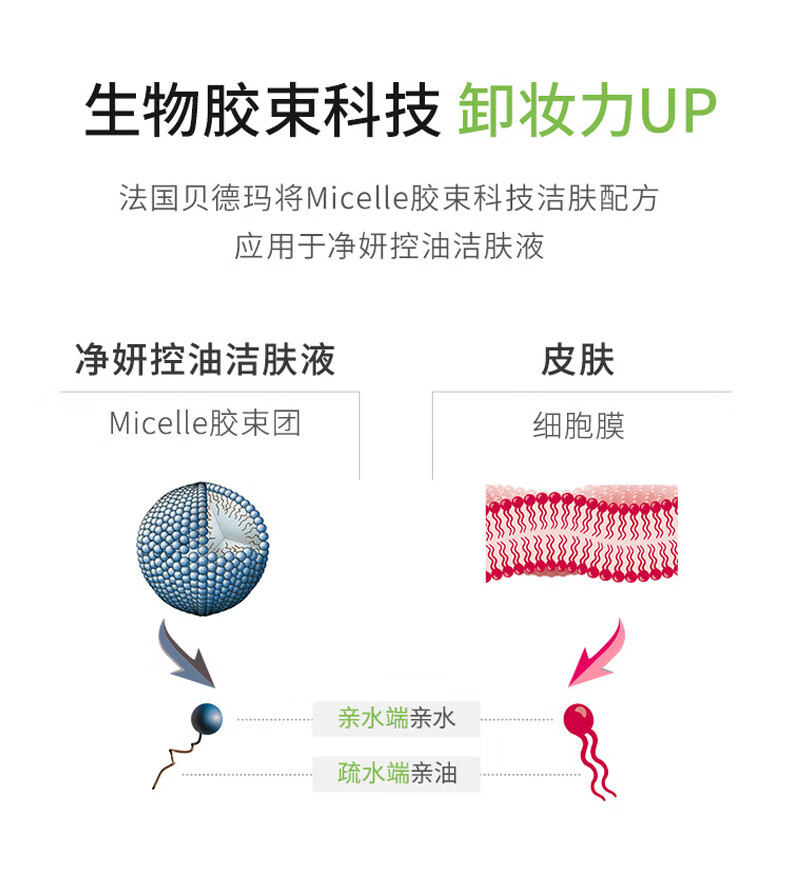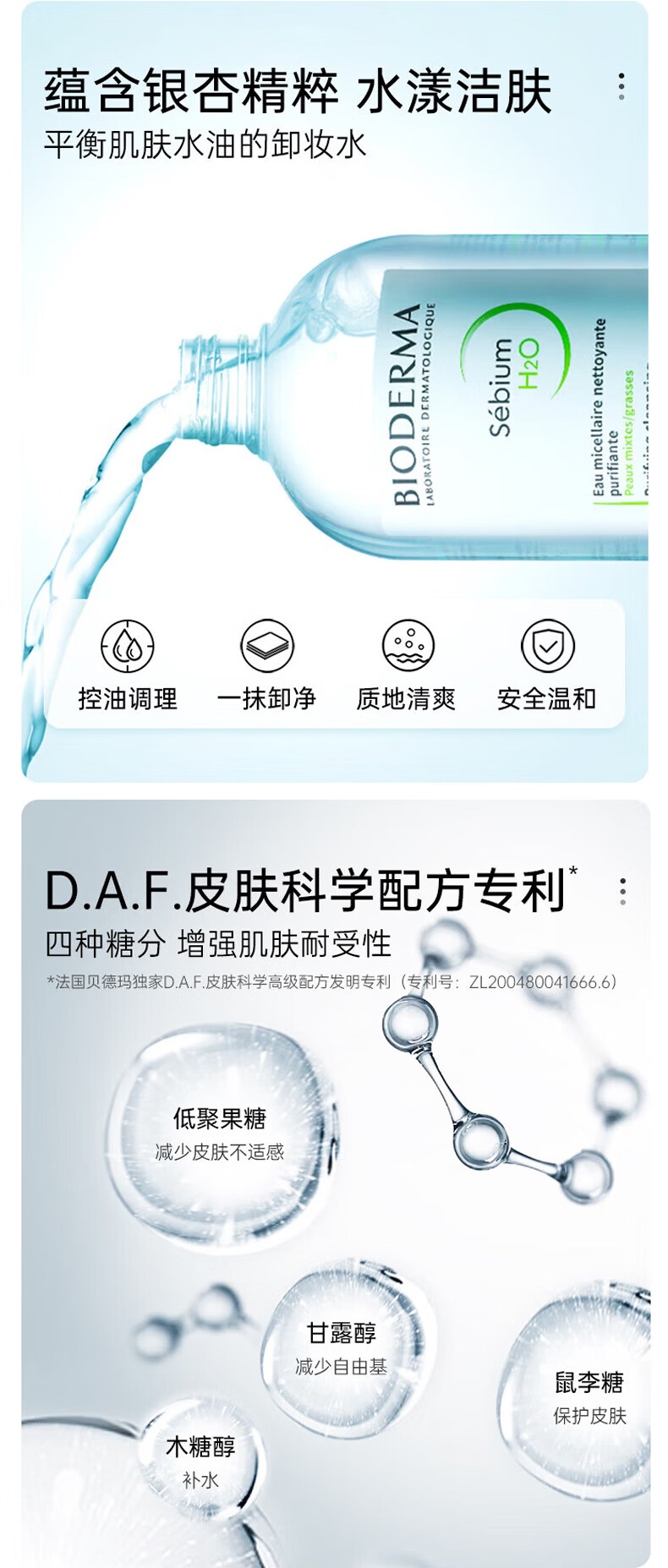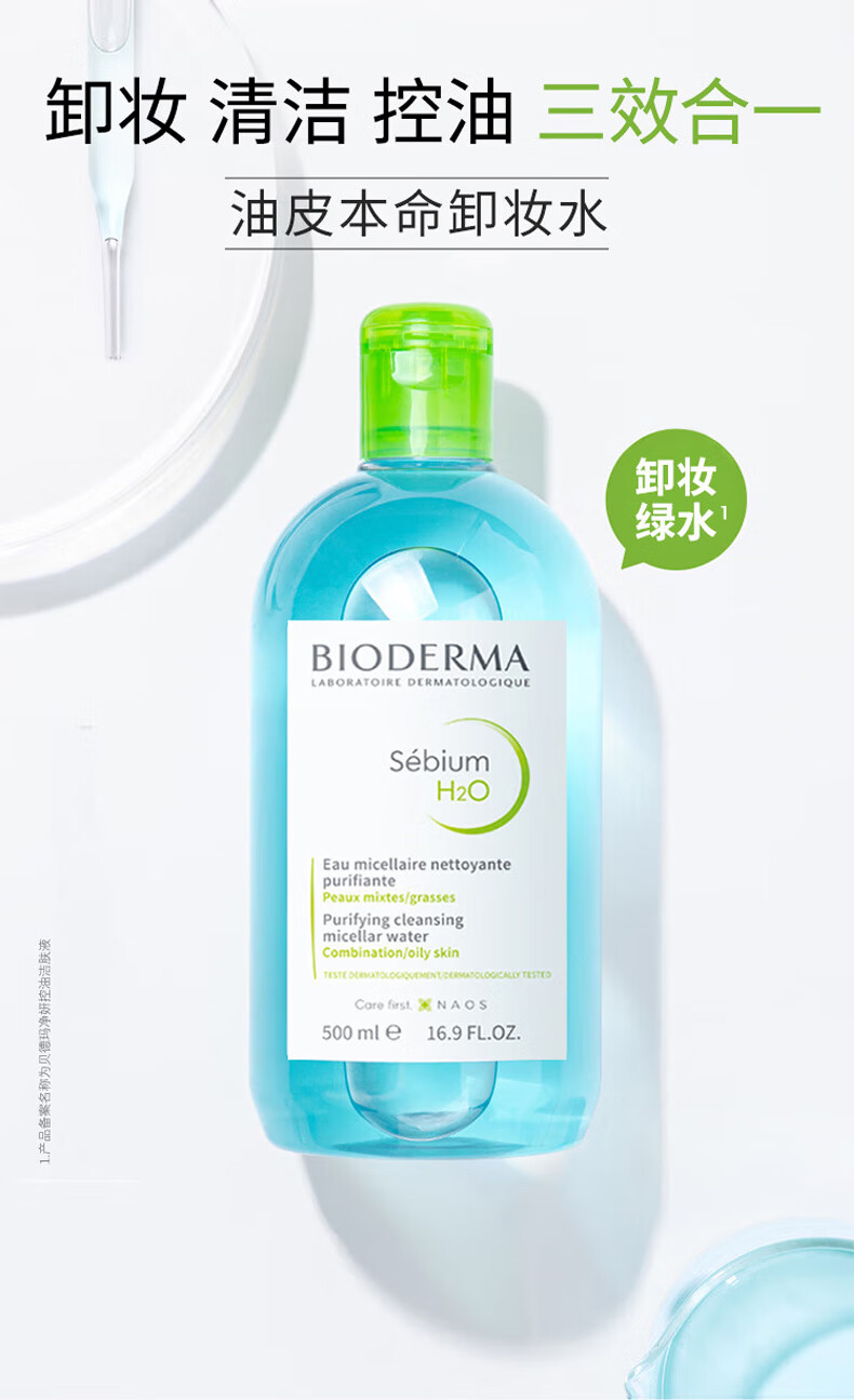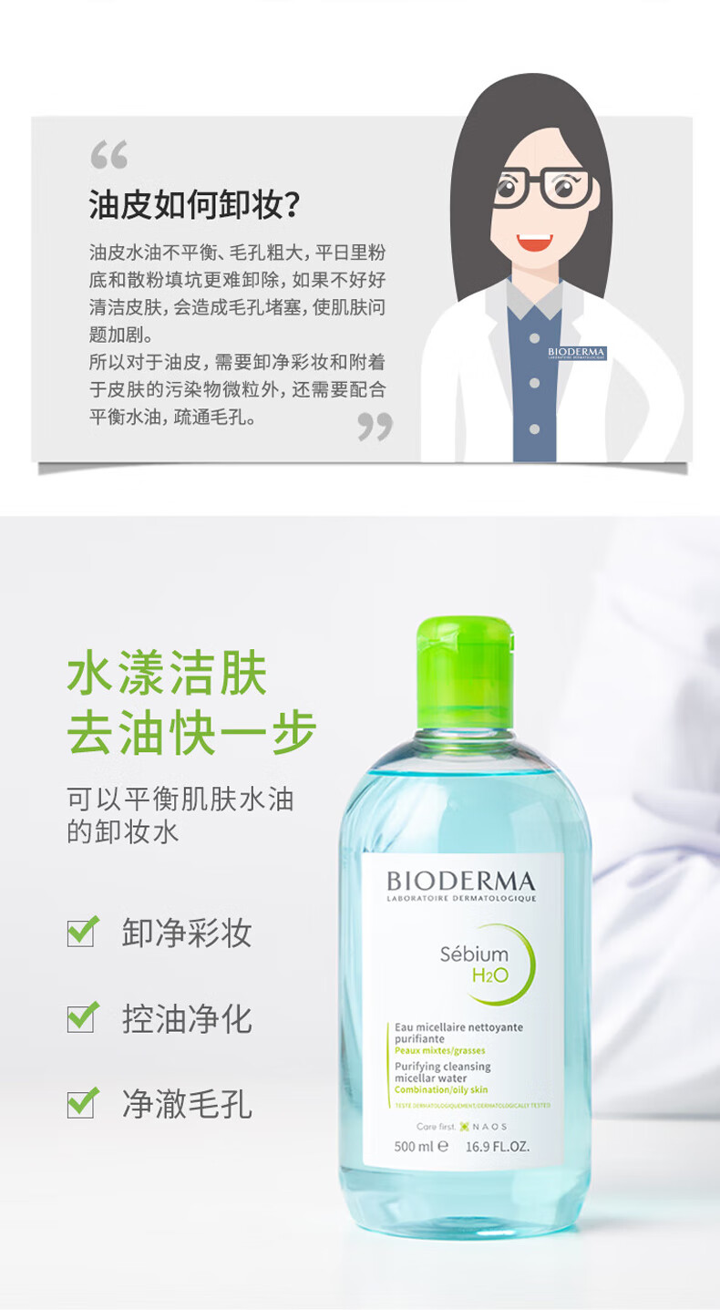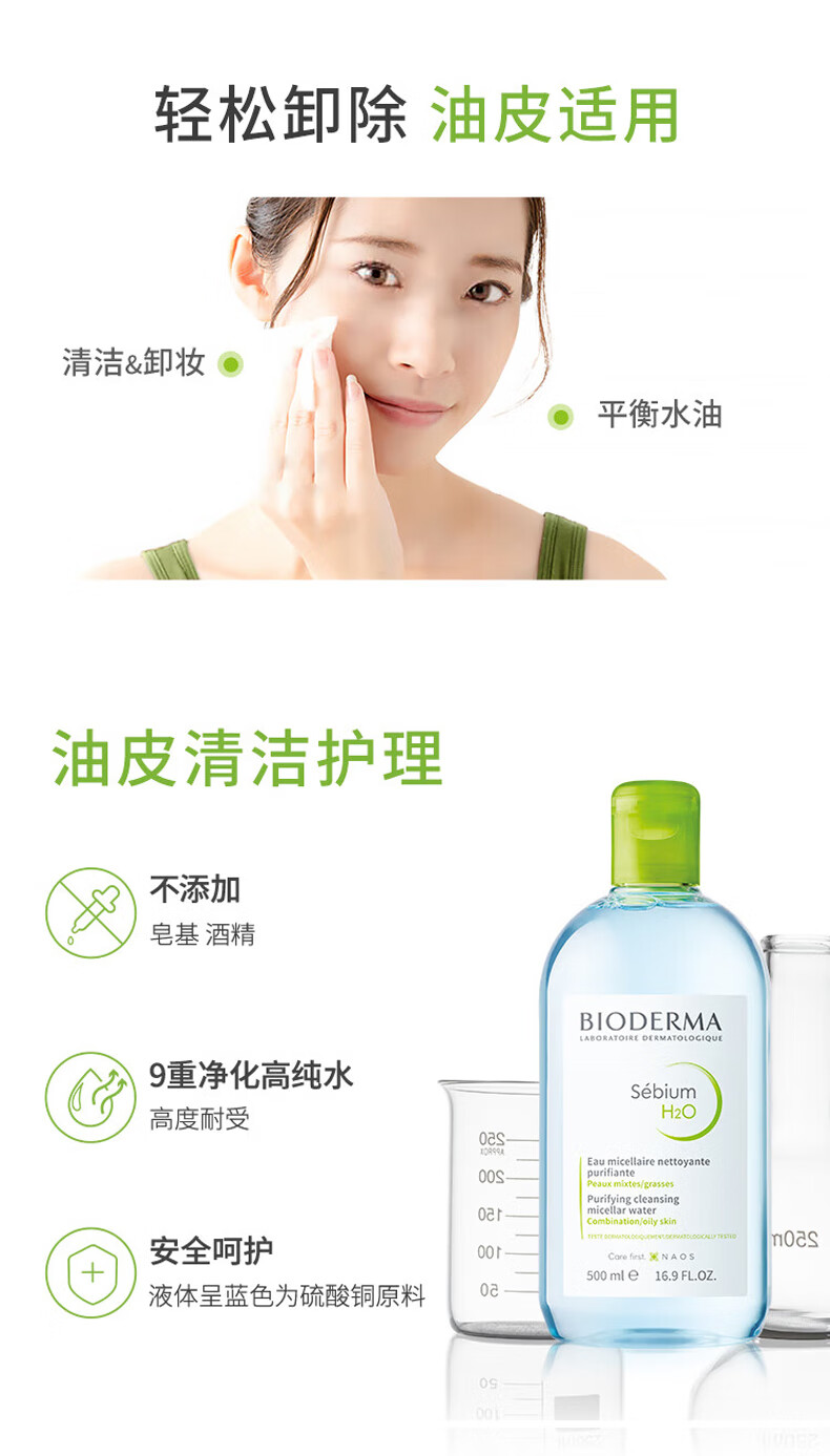 贝德玛(BIODERMA)卸妆水控油调理油痘肌绿水500ml 生日新年礼物女