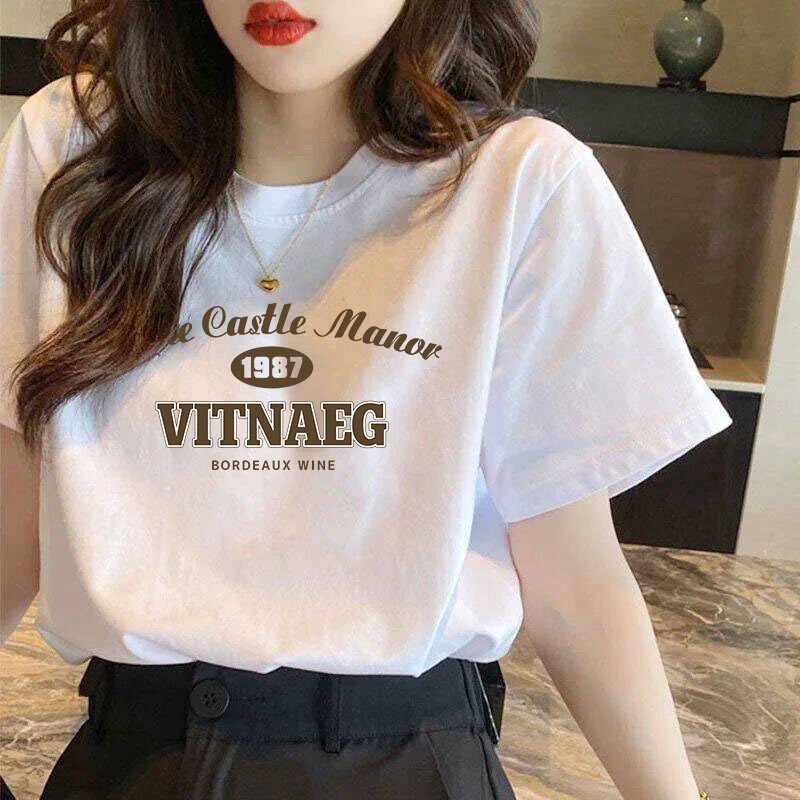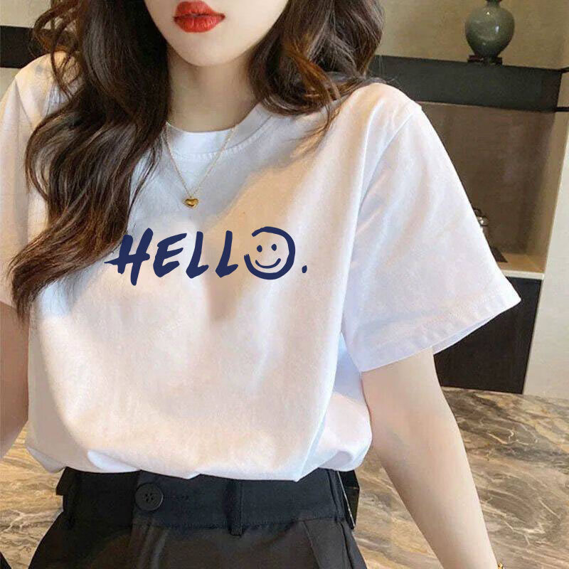 CronetKcnsy纯棉短袖t恤女大码2026夏款女装宽松显瘦白色体恤上衣打底衫ins潮 纯棉短袖-HELL笑脸 3XL 建议160-180斤