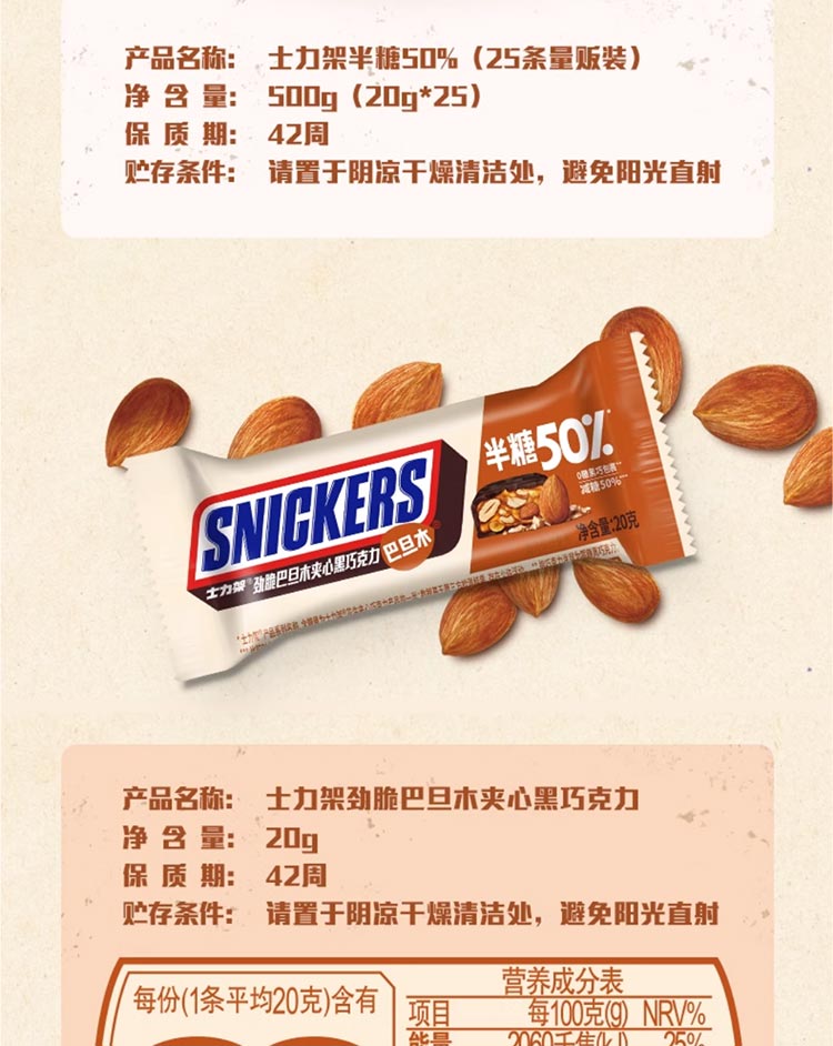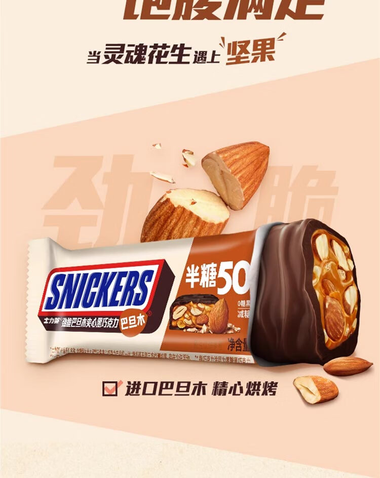 士力架花生夹心巧克力休闲食品充饥解馋零食糖果儿童生日礼物婚庆喜糖 士力架能量金砖500g