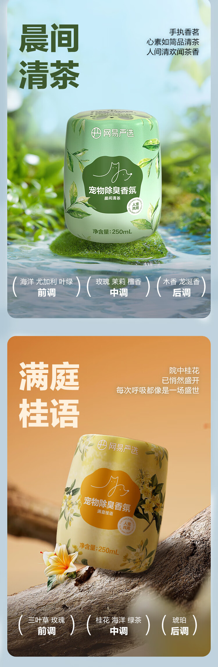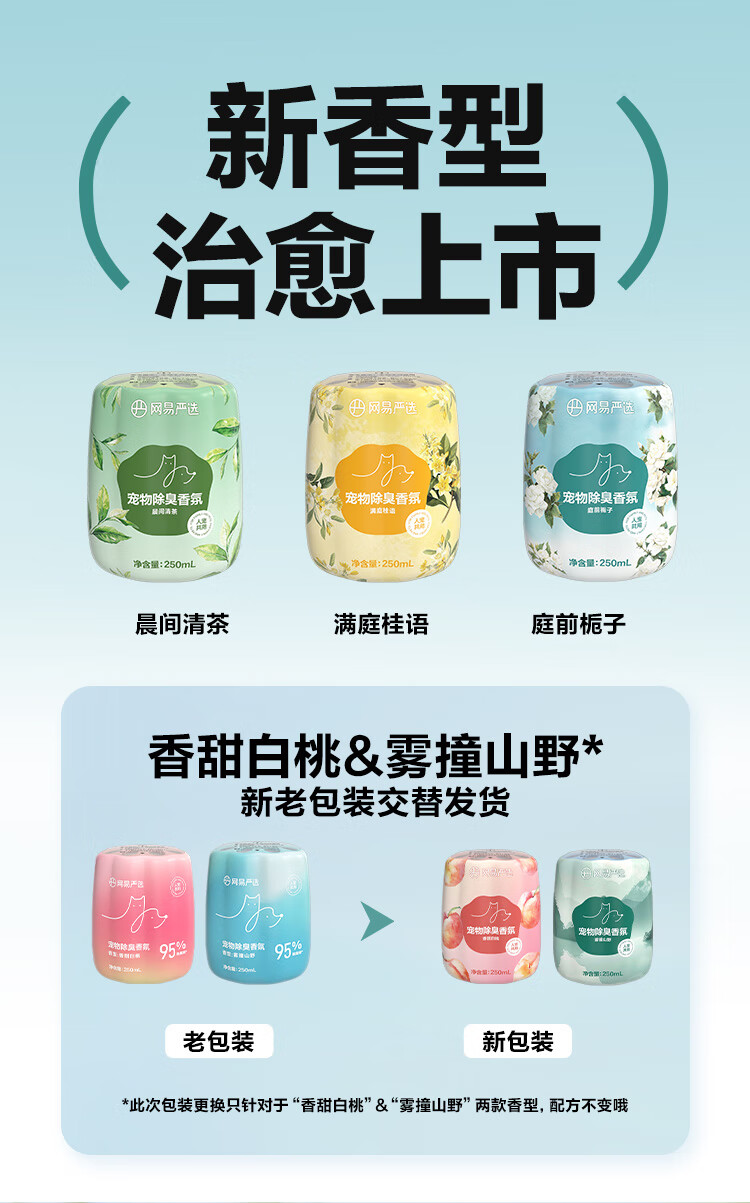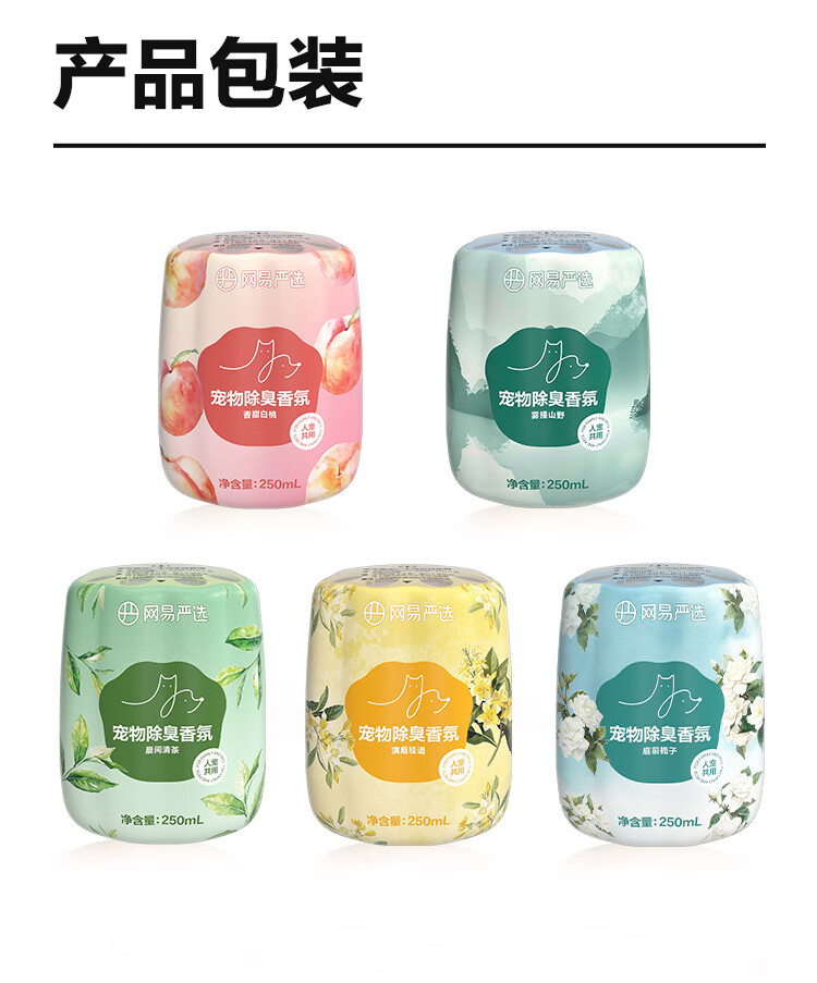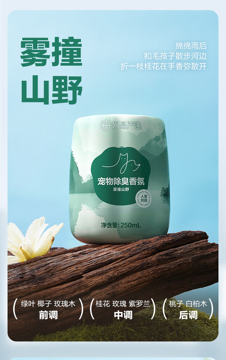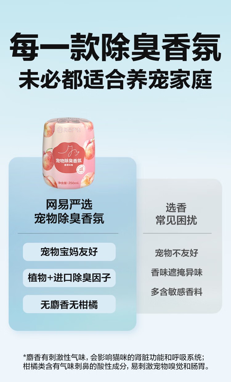 网易严选宠物除臭香氛香薰猫咪狗狗空气清新剂除臭神器 250ml*2瓶(香甜白桃+雾撞山野)
