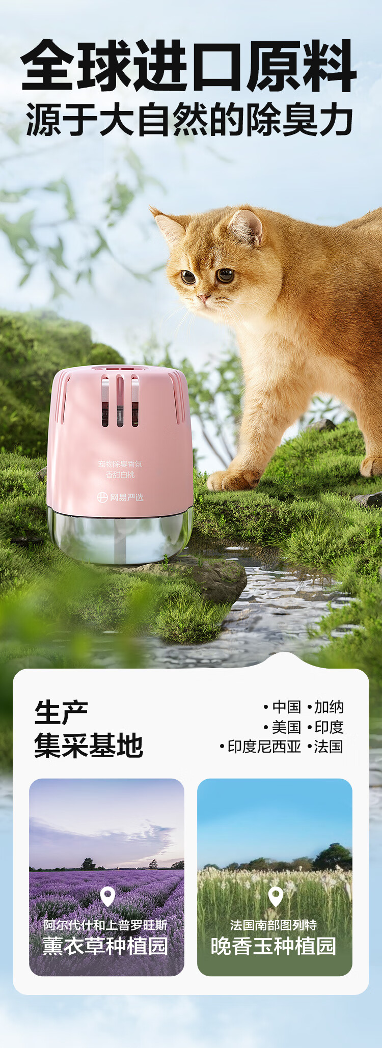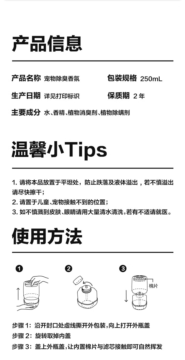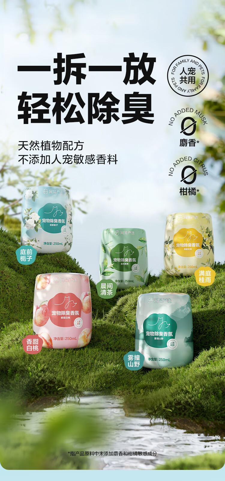 网易严选宠物除臭香氛香薰猫咪狗狗空气清新剂除臭神器 250ml*2瓶(香甜白桃+雾撞山野)