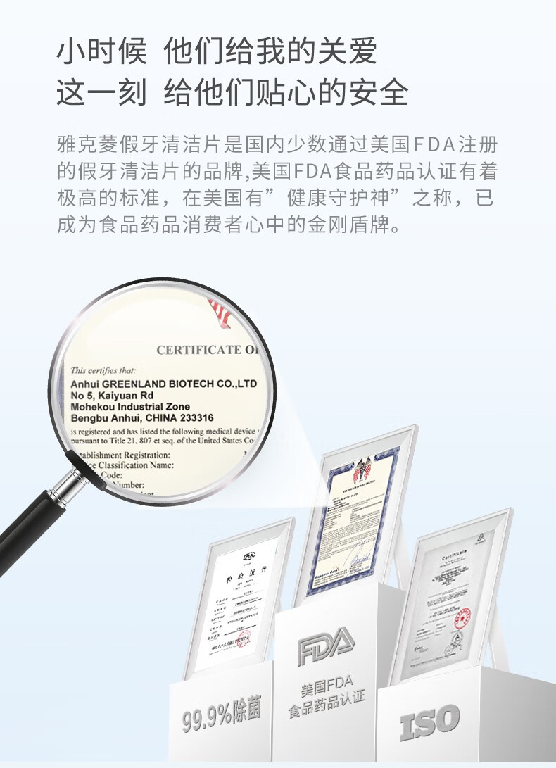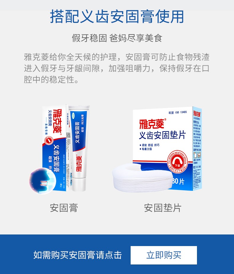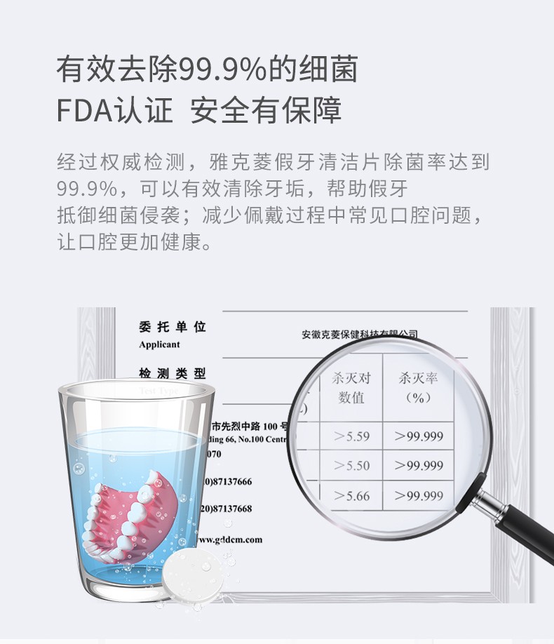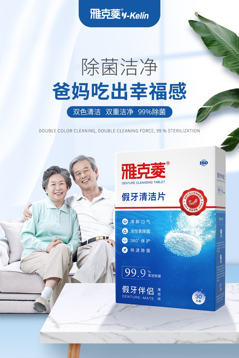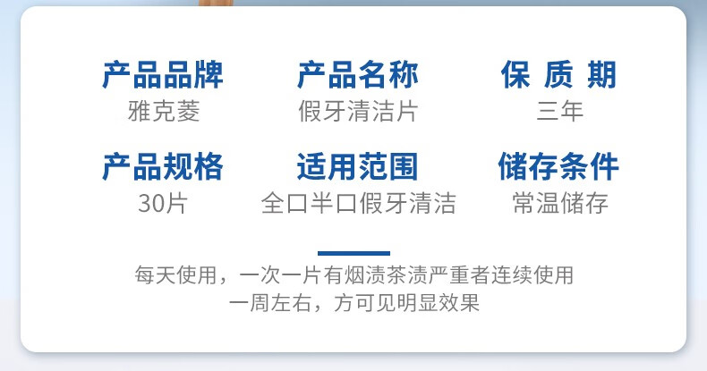 雅克菱假牙清洁片120片泡腾片清洗水全口半口义齿假牙活性氧除菌清洁剂