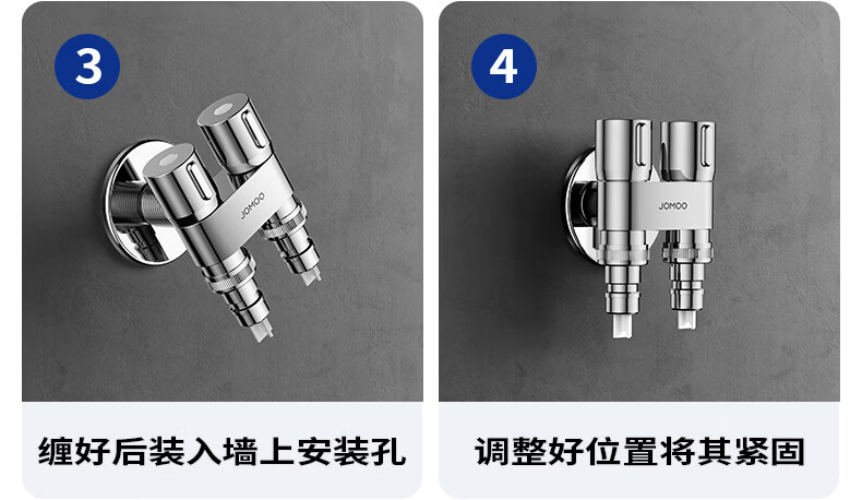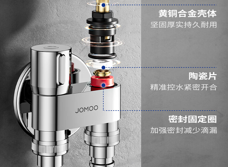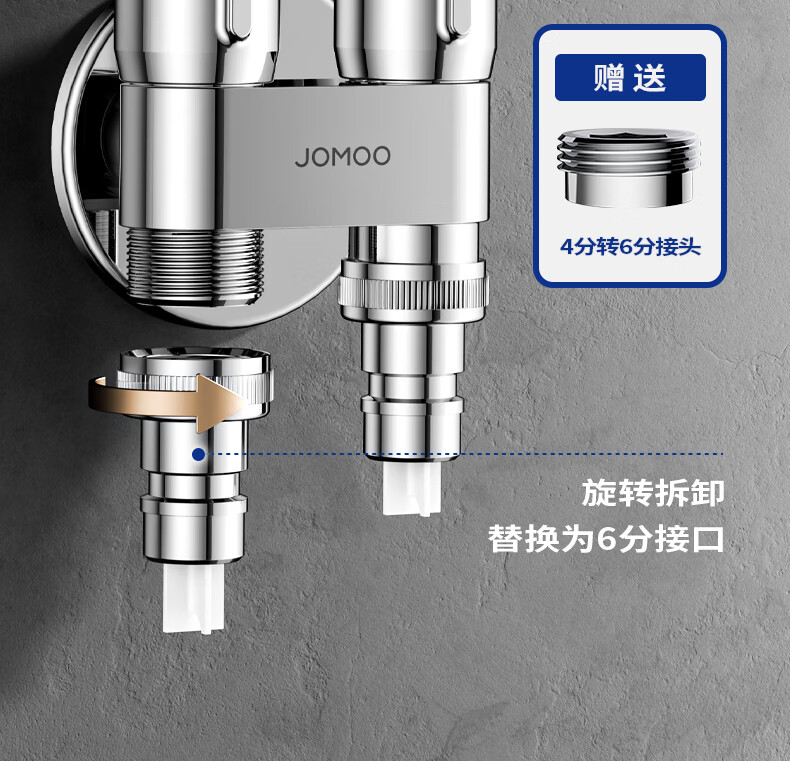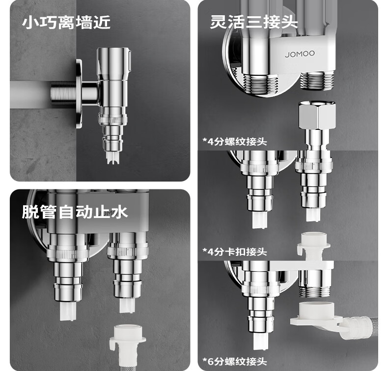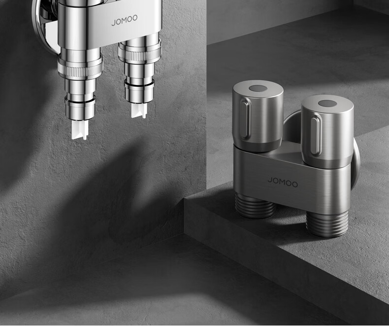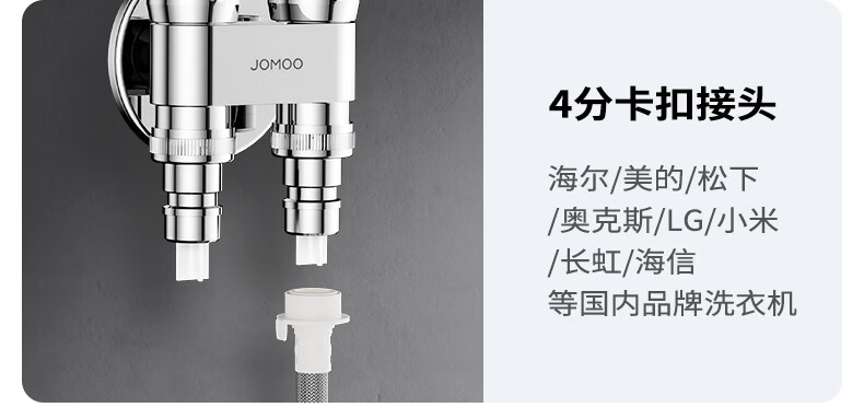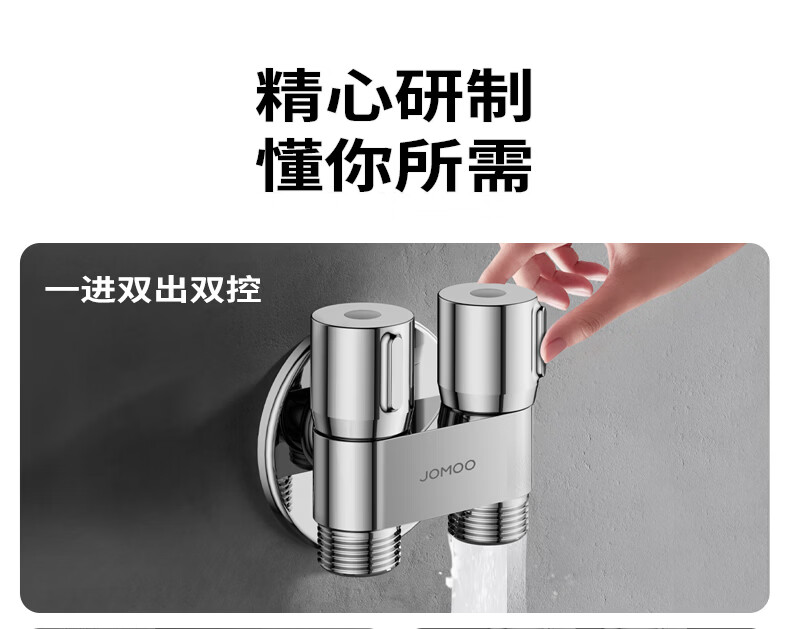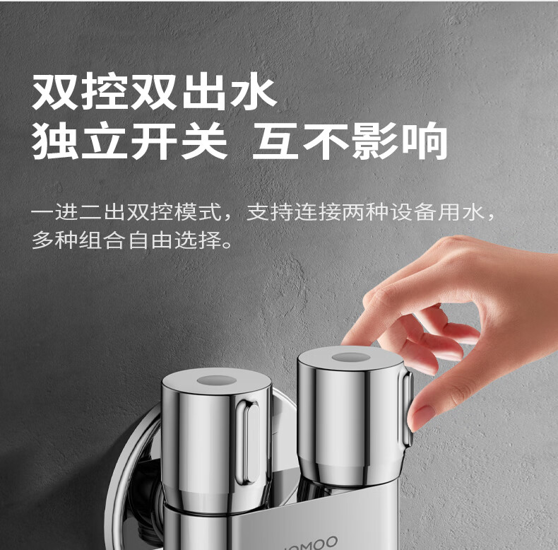 九牧(JOMOO)多功能角阀洗衣机角阀止水阀双控双出马桶伴侣喷枪套装 一进二出大流量球阀74117亮银