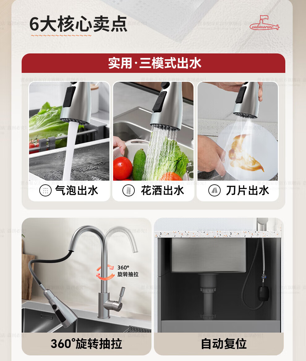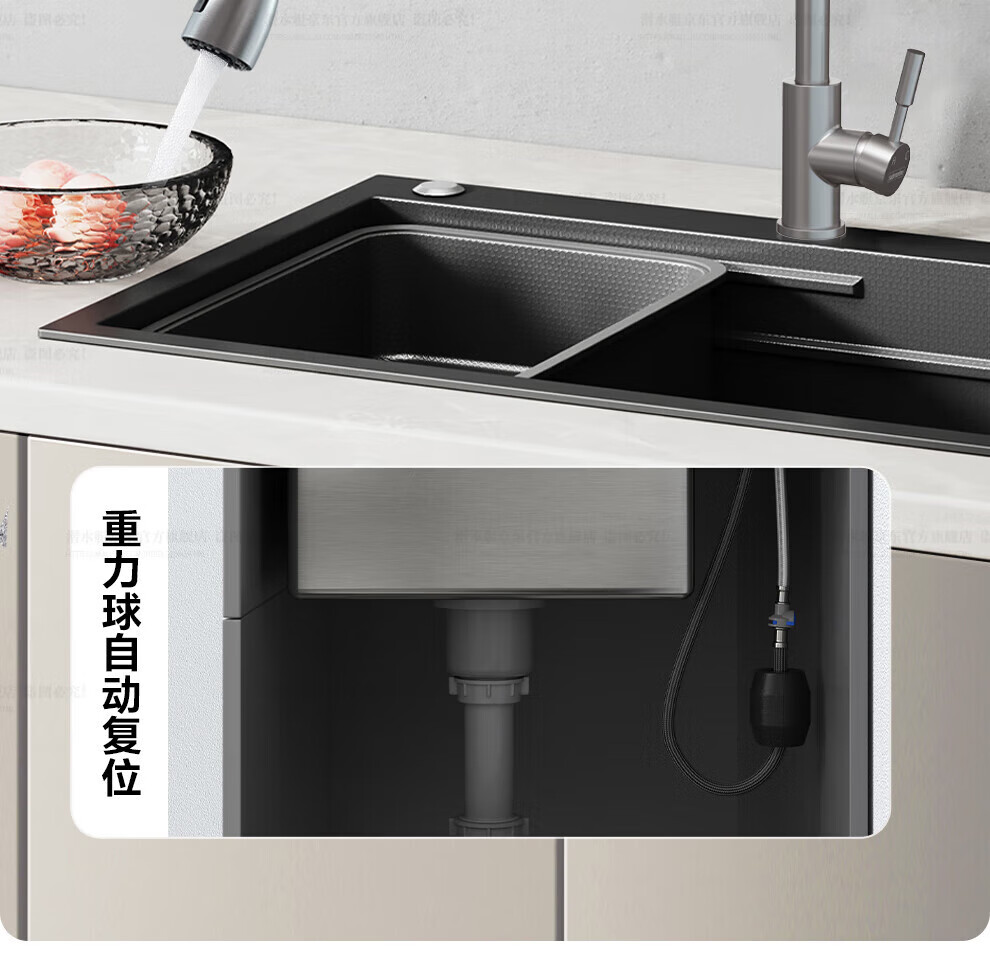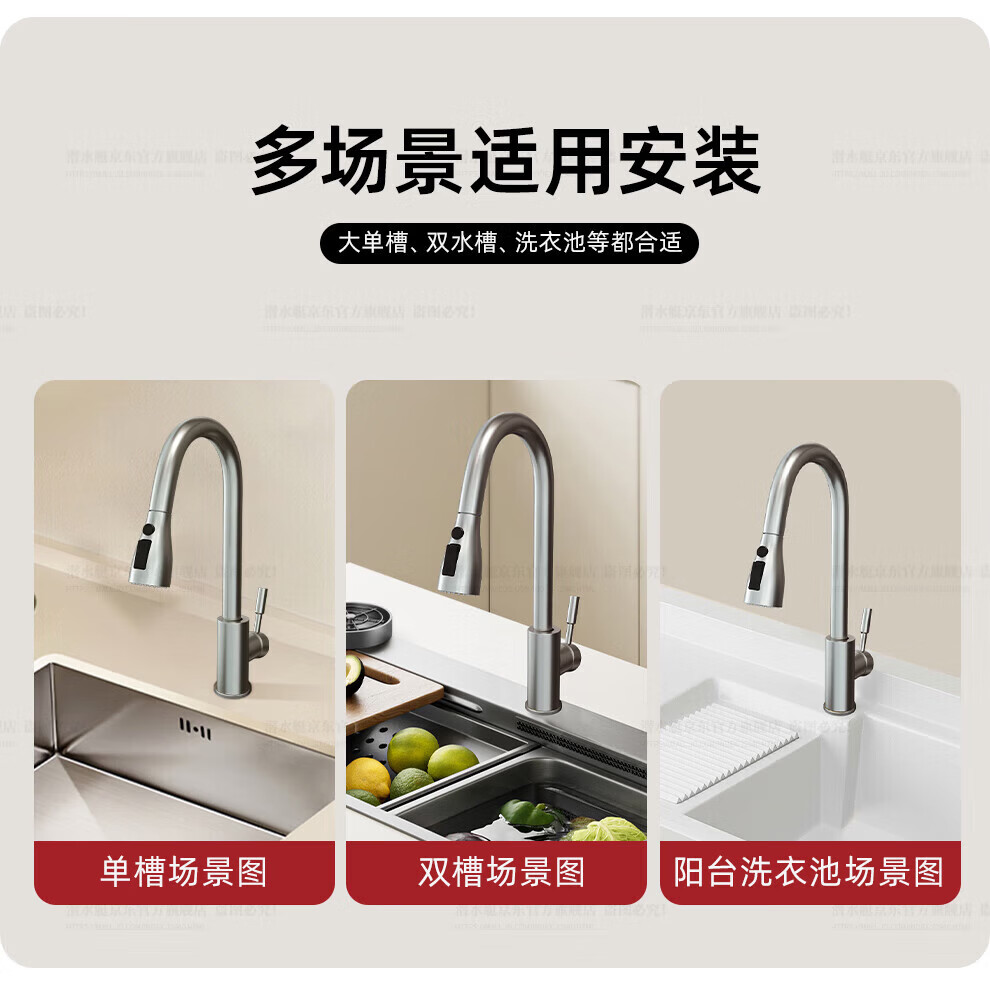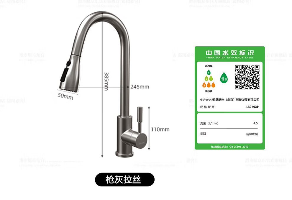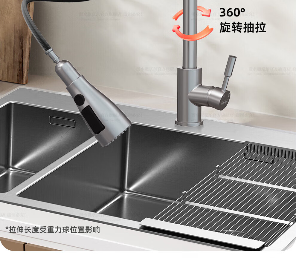 潜水艇厨房抽拉水龙头旋转水槽洗菜盆冷热水二合一俩用不锈钢上装式 L3049XH【枪灰色+创新上装】