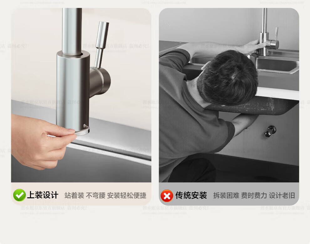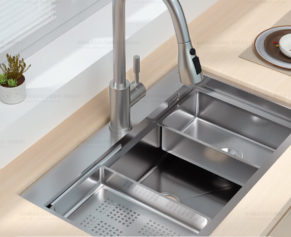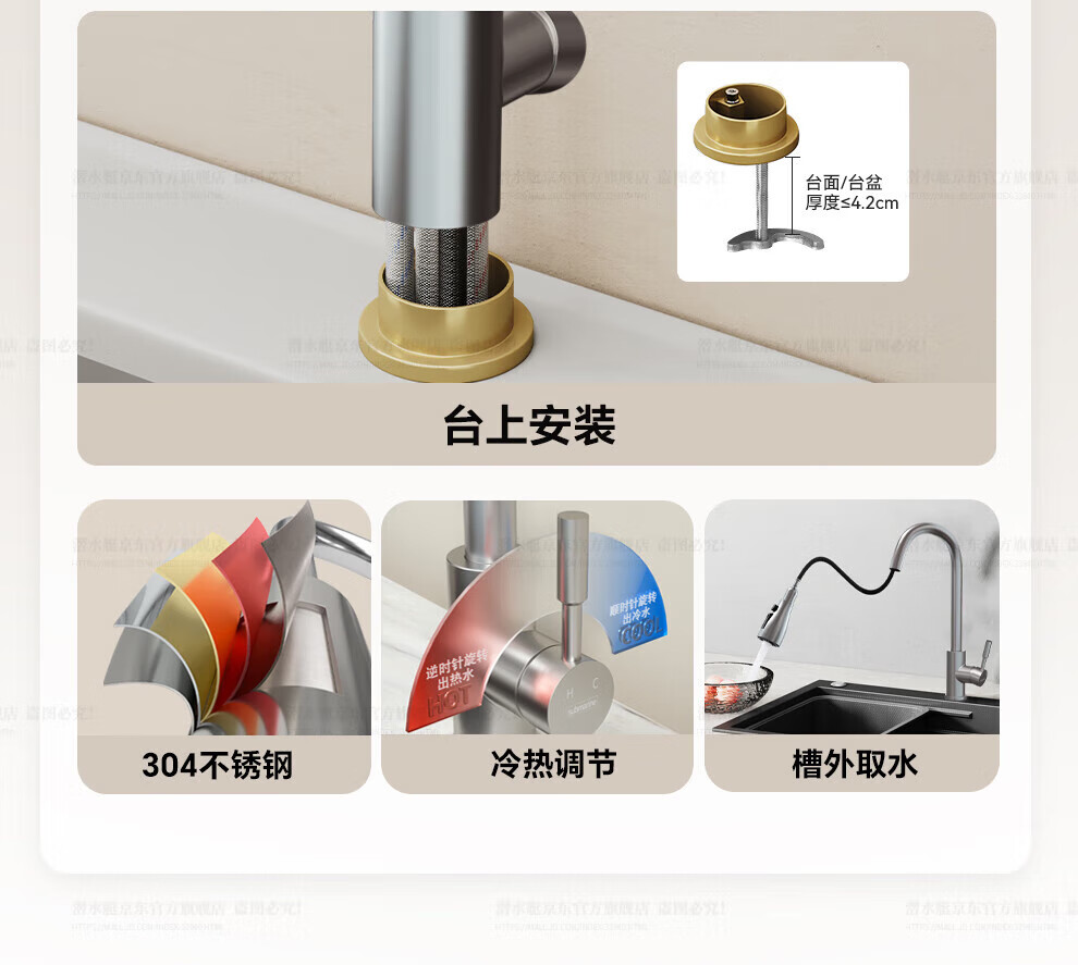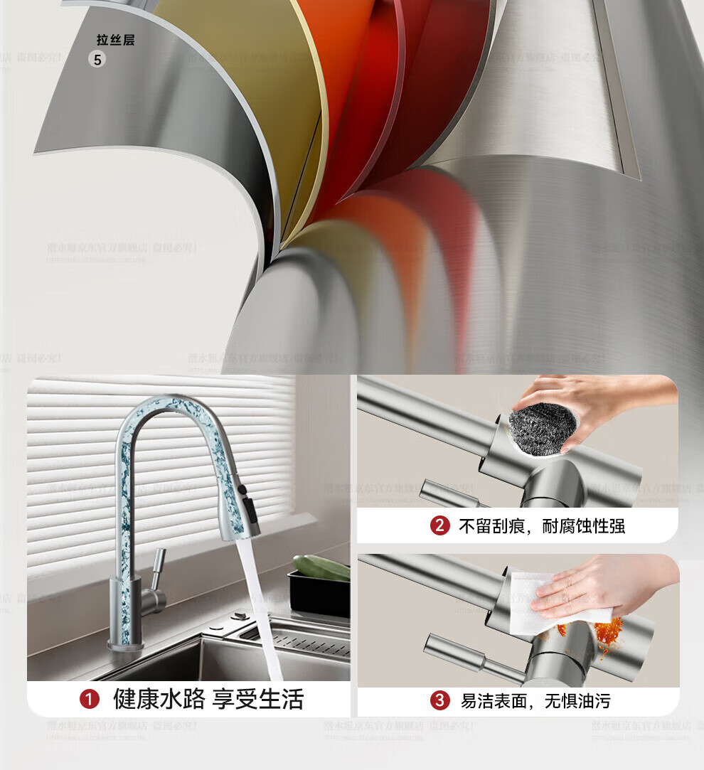 潜水艇厨房抽拉水龙头旋转水槽洗菜盆冷热水二合一俩用不锈钢上装式 L3049XH【枪灰色+创新上装】