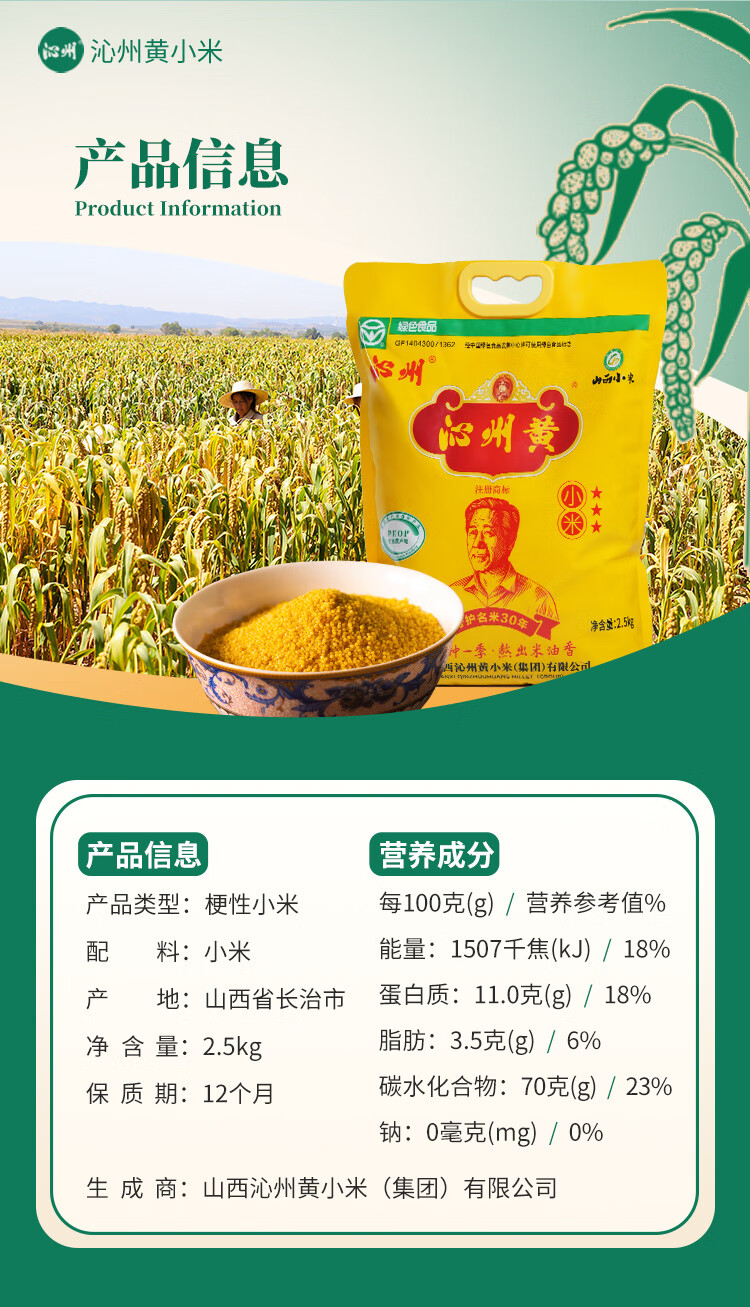沁州黄小米5斤家庭装 月子小米粥 粗粮营养早餐 五谷杂粮新米年货礼品