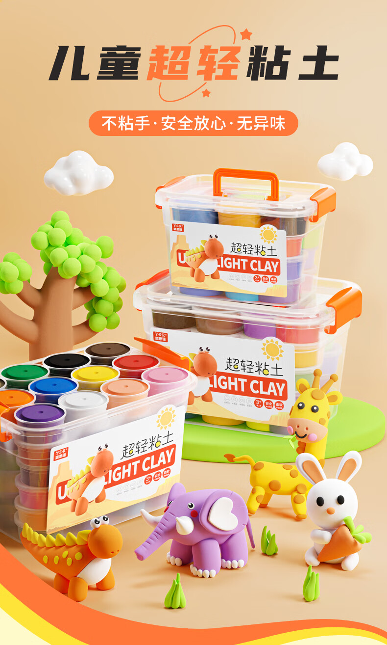 奕思瑞超轻粘土24色玩具女孩便携彩泥无毒橡皮泥手工黏土幼儿园儿童礼物