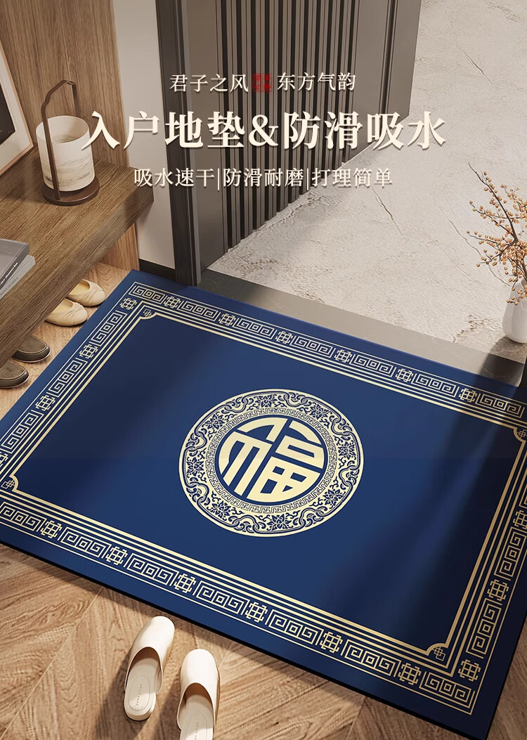 KAYE入户门地垫硅藻泥卫生间门口地毯浴室吸水防滑垫子进门垫厕所脚垫 GZN-K灵素-福绕蓝茵 40X60cm