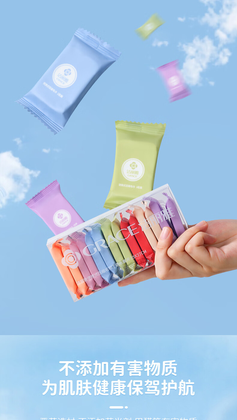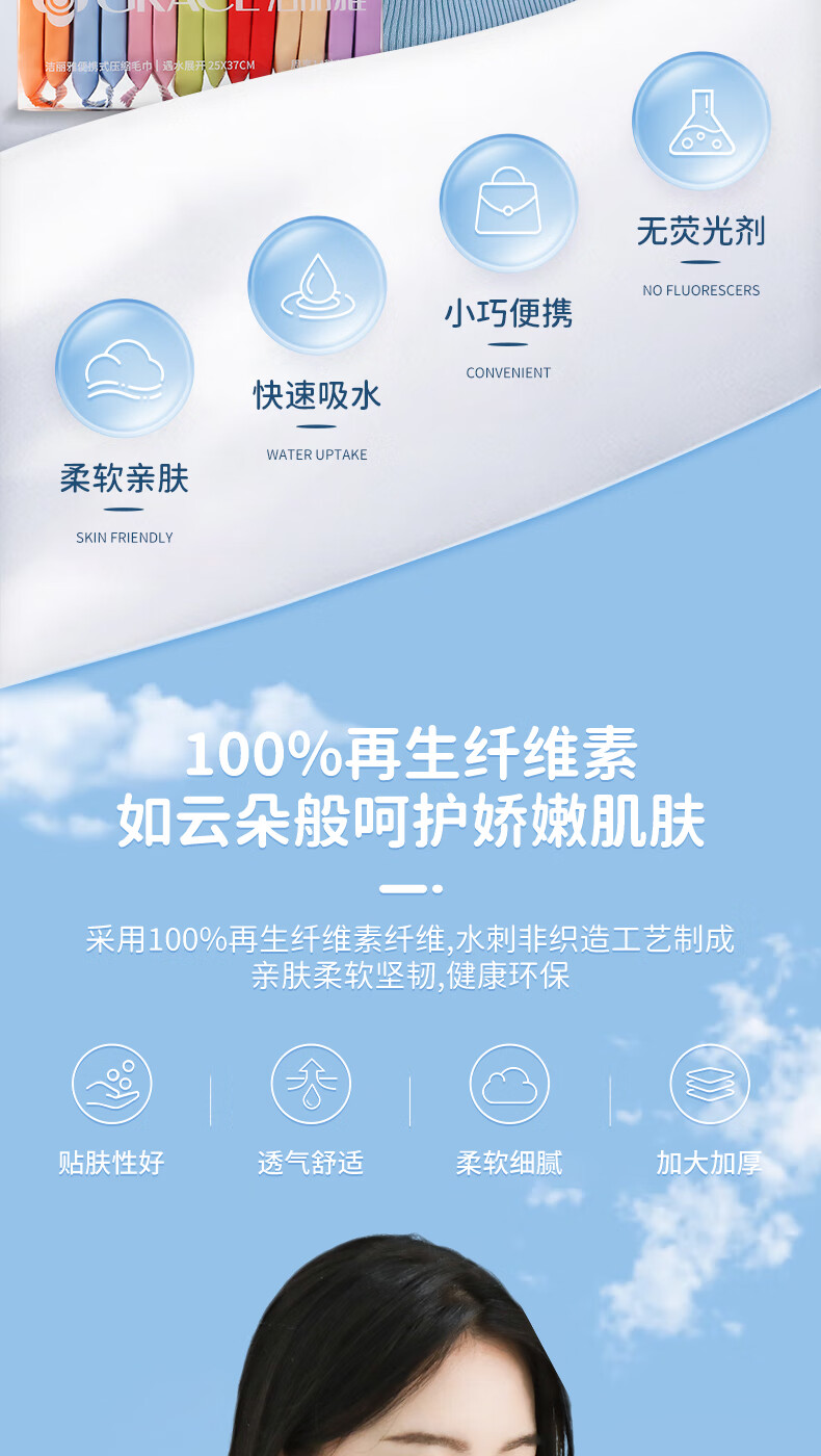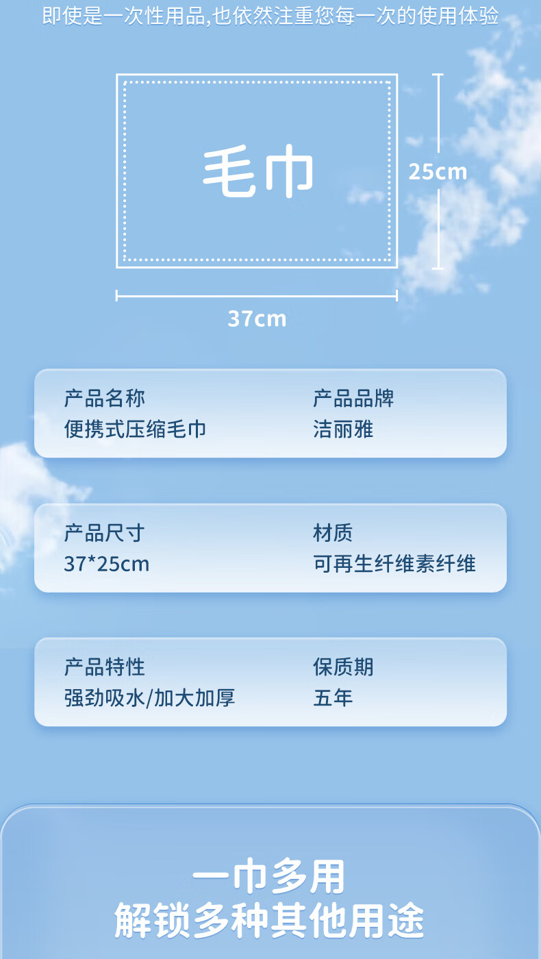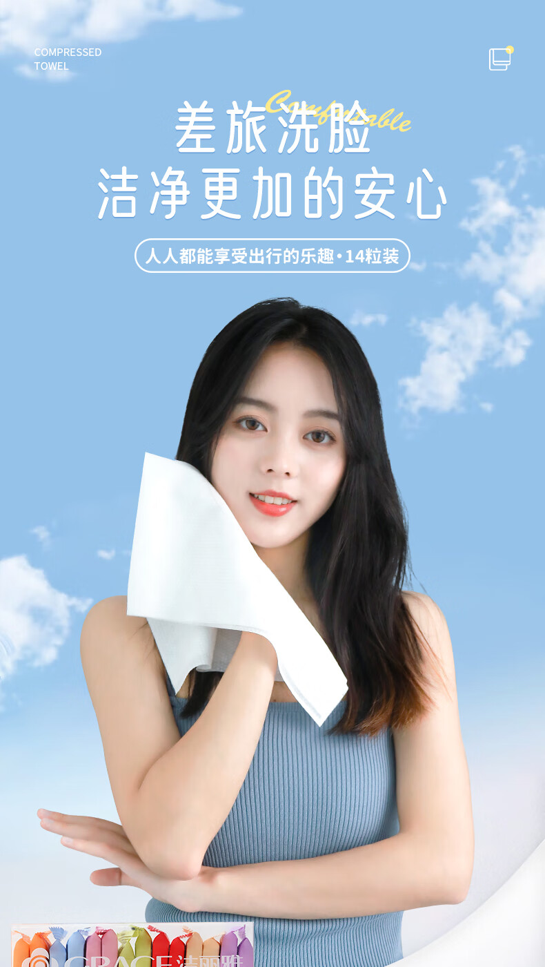 洁丽雅旅行压缩毛巾一次性洗脸巾旅行出差加大便携式面巾37*25cm14粒装