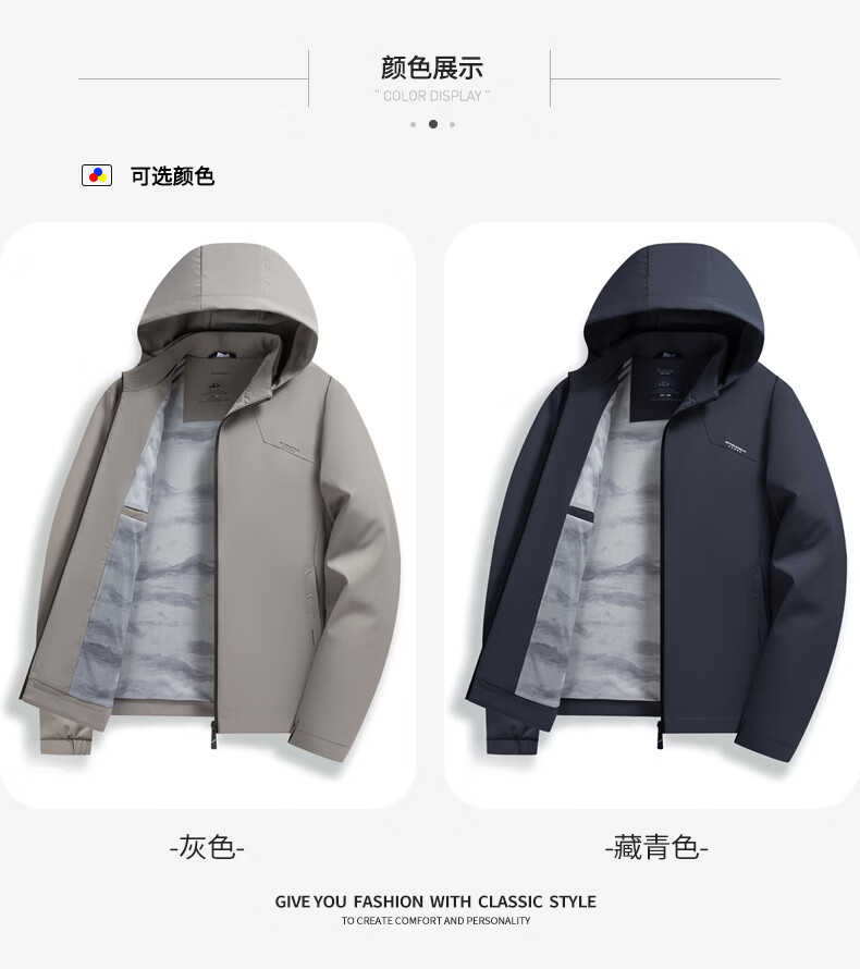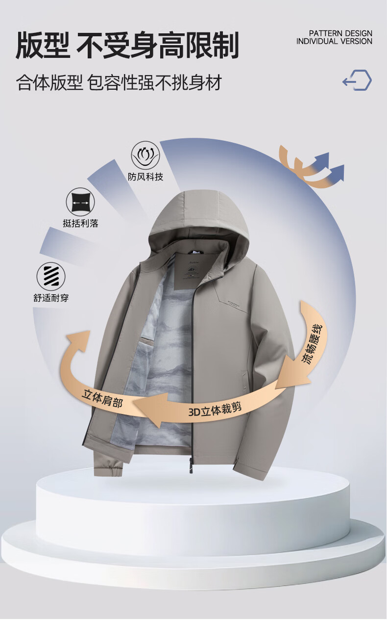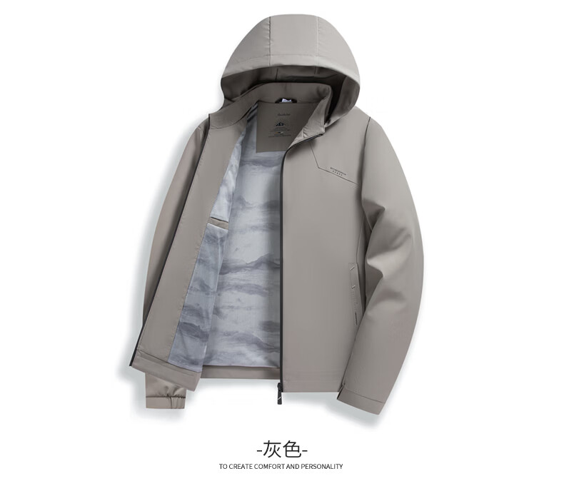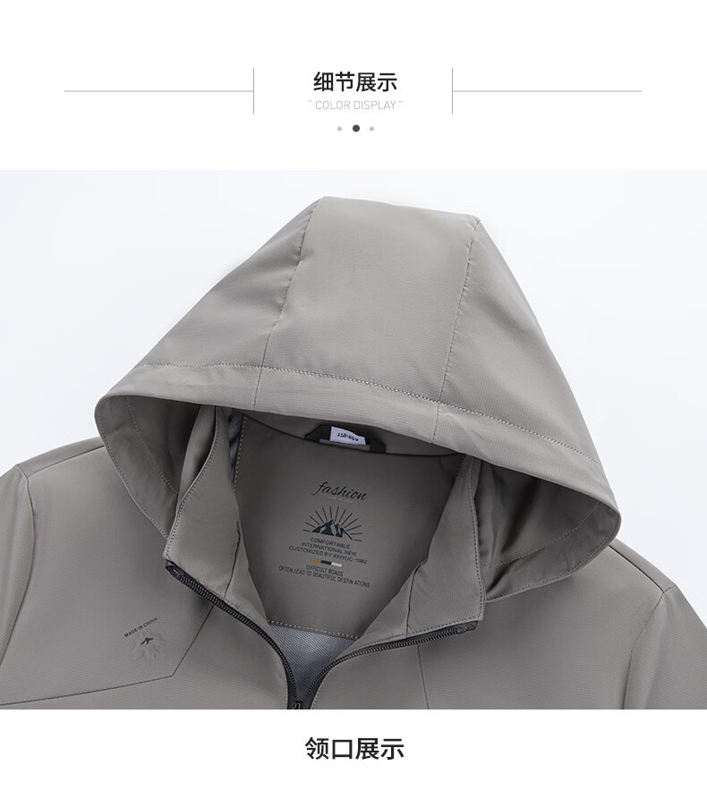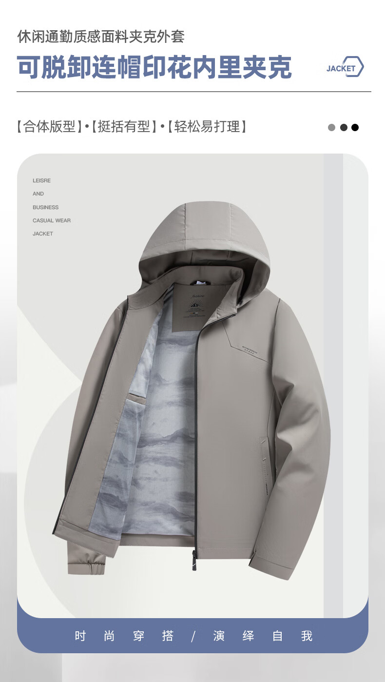 SHANSHAN杉杉男士夹克可脱卸帽上衣2026年春季新款百搭时尚外套男简约衣服 灰色 3XL /190