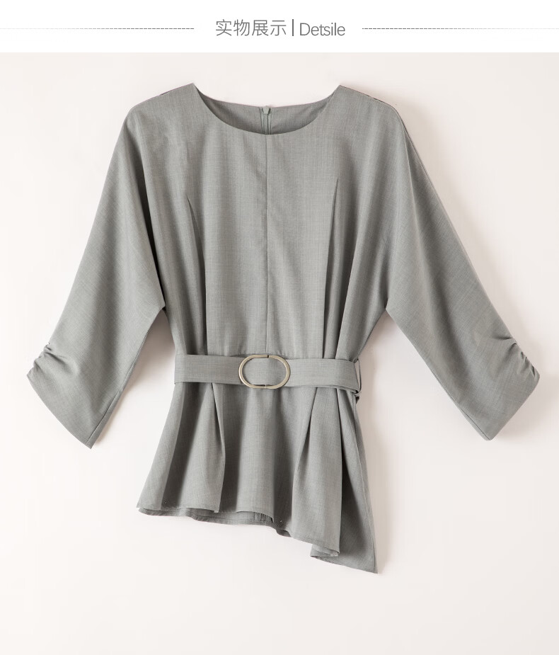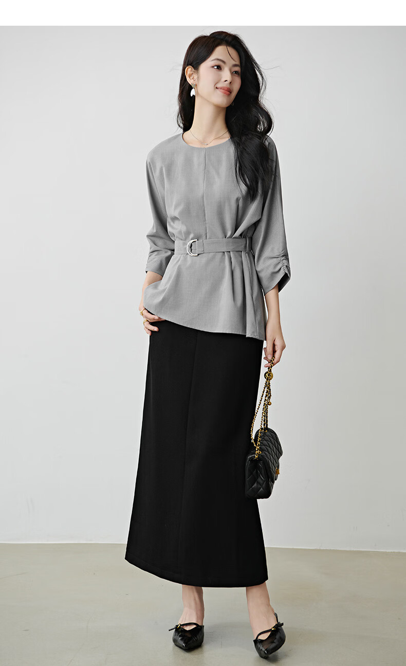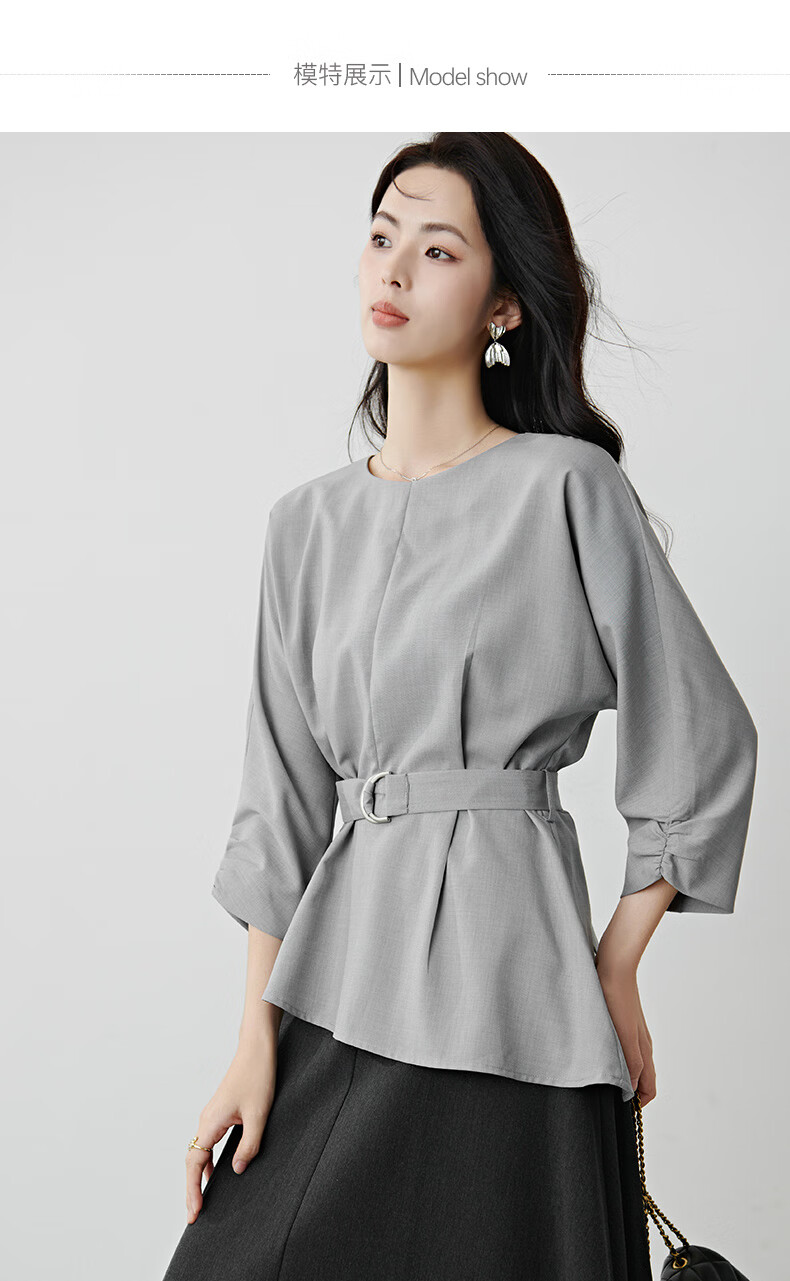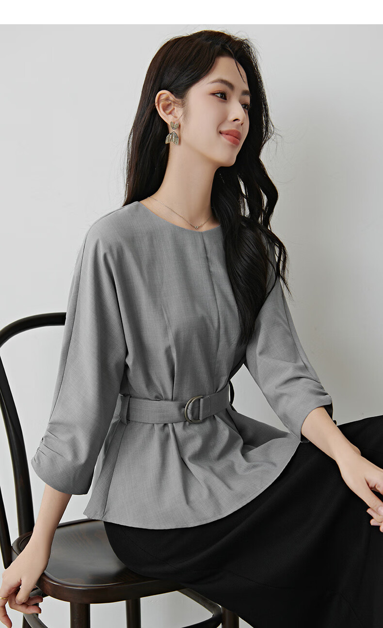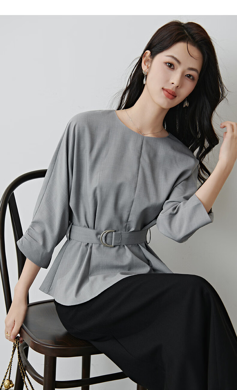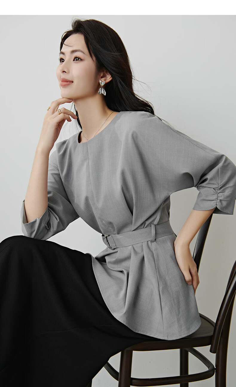 晚白【新品】2026年春款格雷系气质通勤设计感上衣系带收腰小廓形衬衫 浅灰色 M